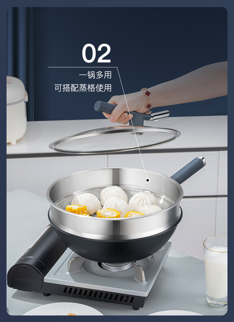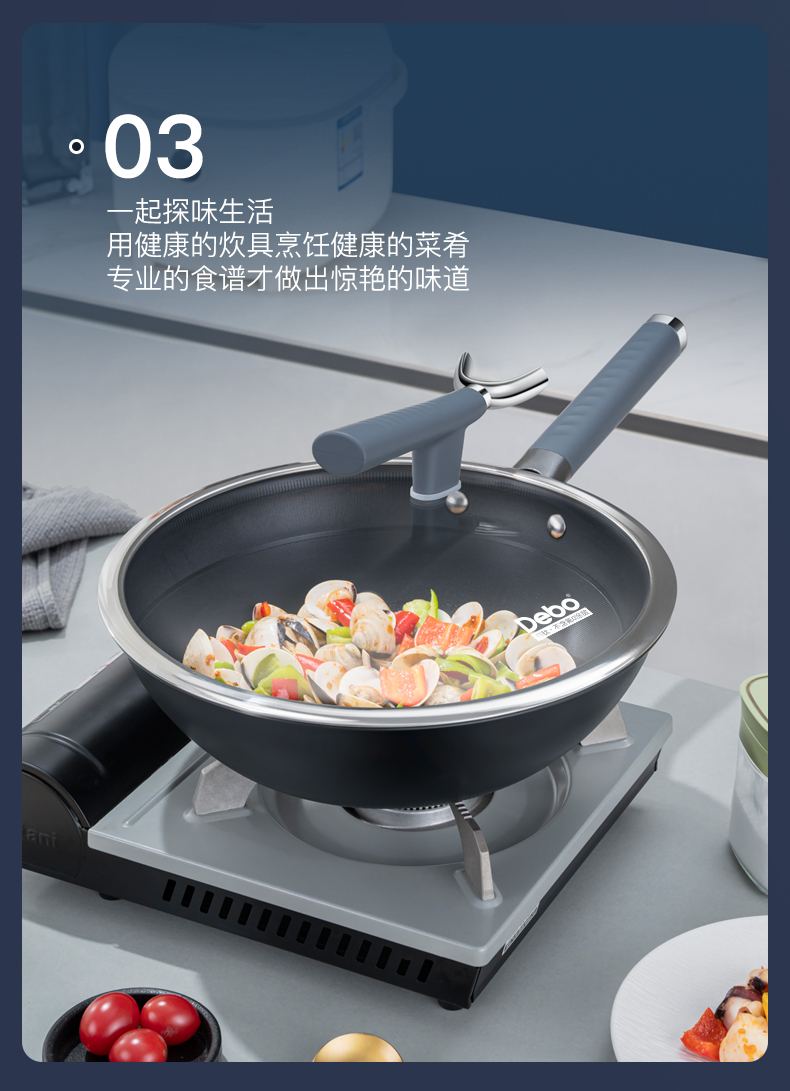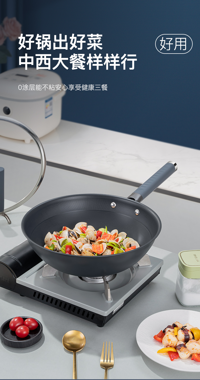 德铂无涂层不粘炒锅不锈钢炒菜锅无油烟含钛锅具家用不挑炉灶
