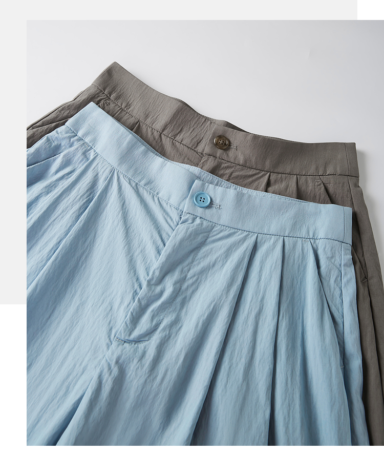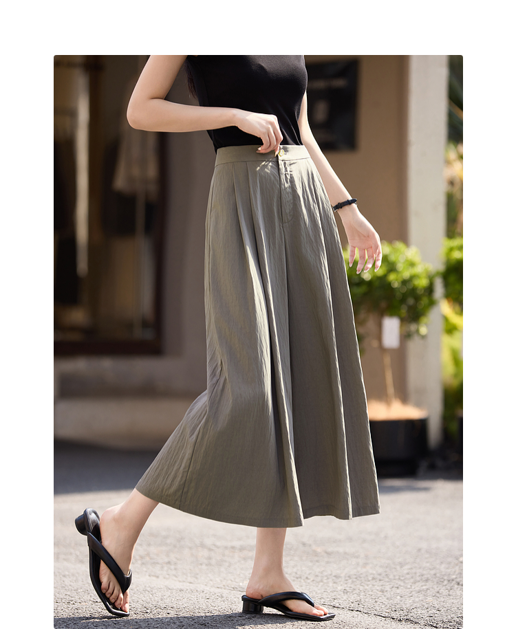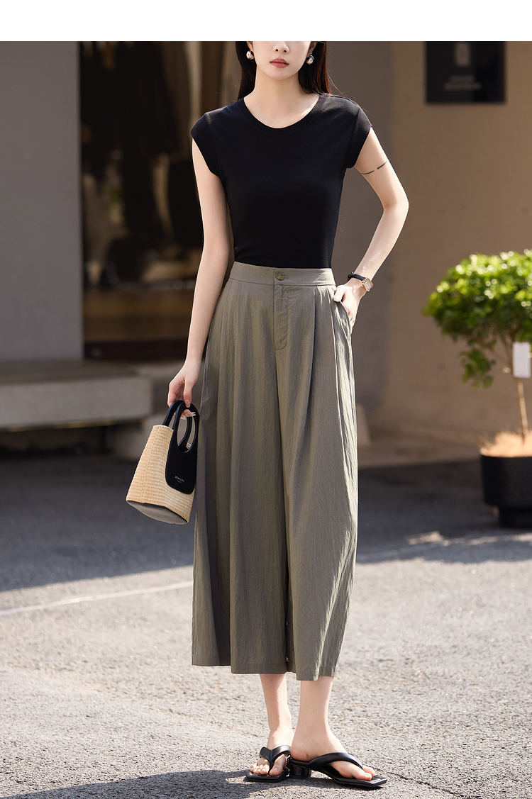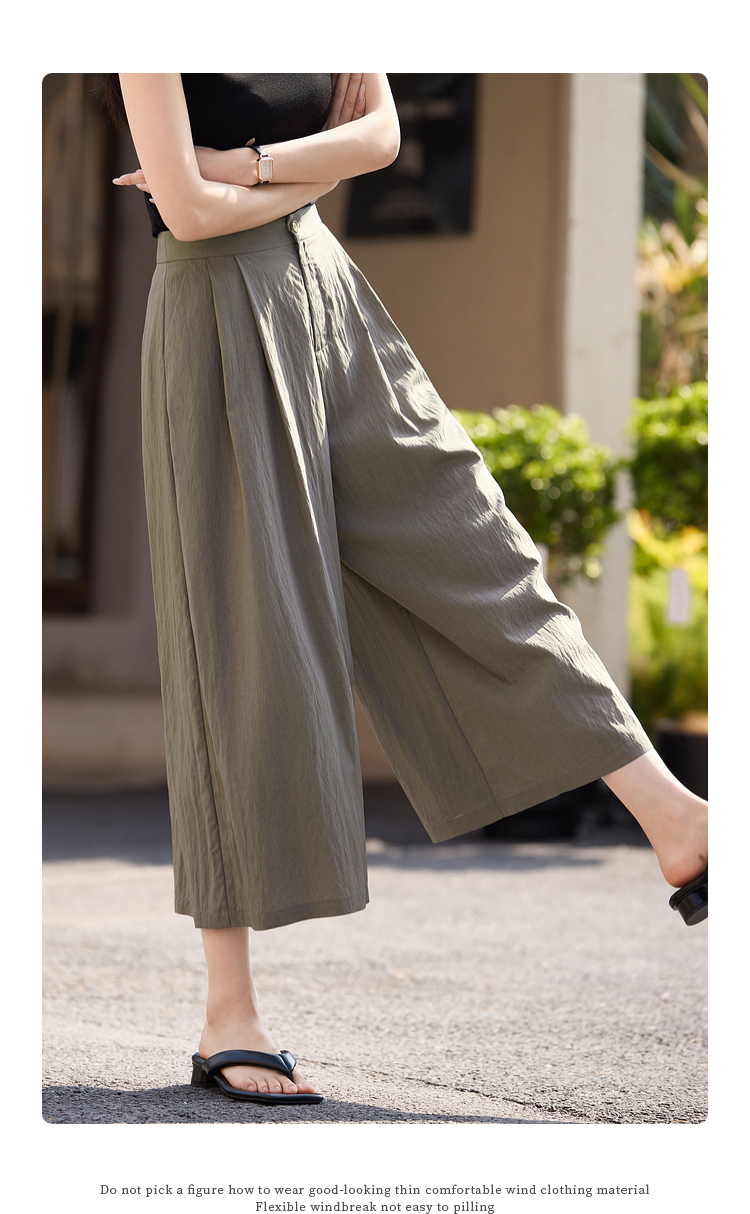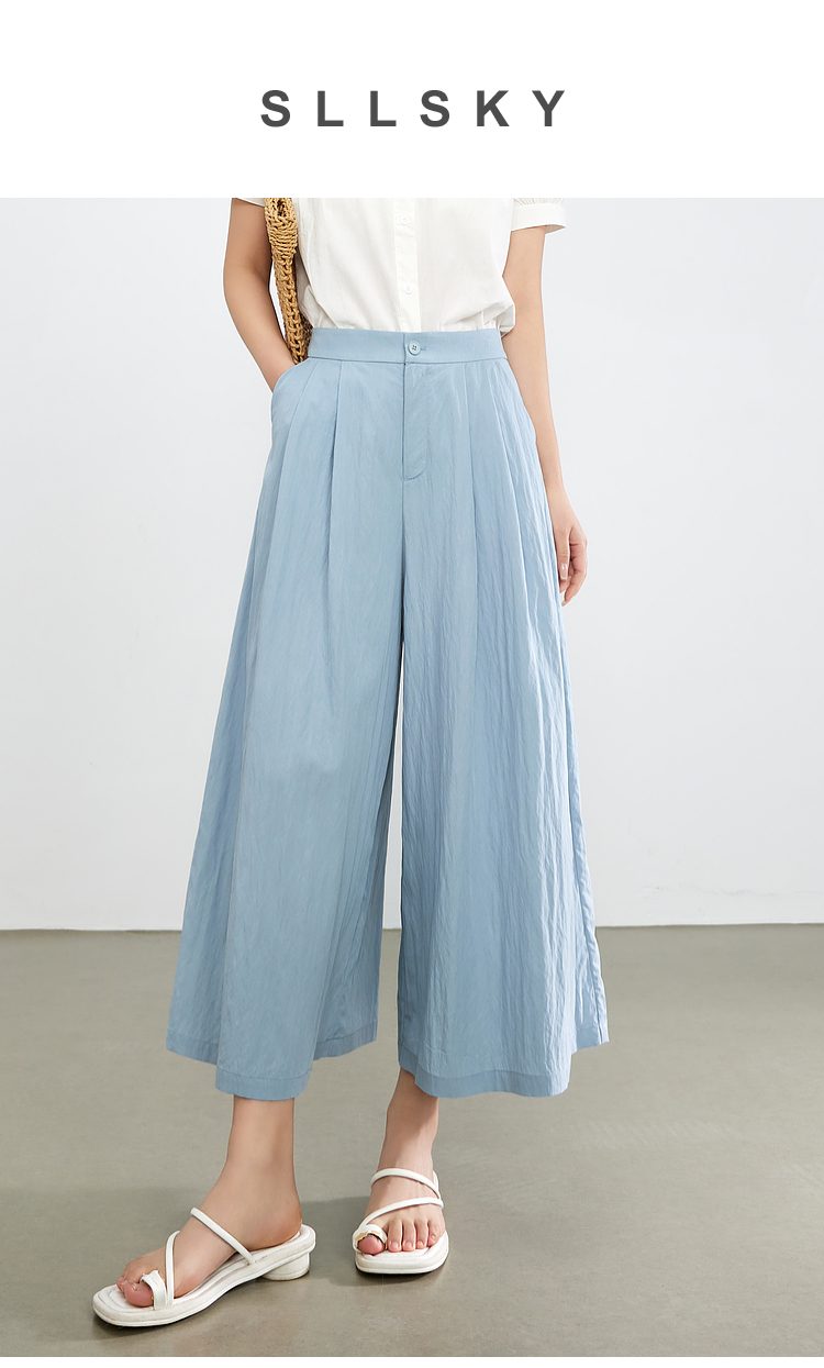 【专属特价】熙世界蓝色八分宽松阔腿裤女2025年新款夏季高腰显瘦休闲垂感裙裤