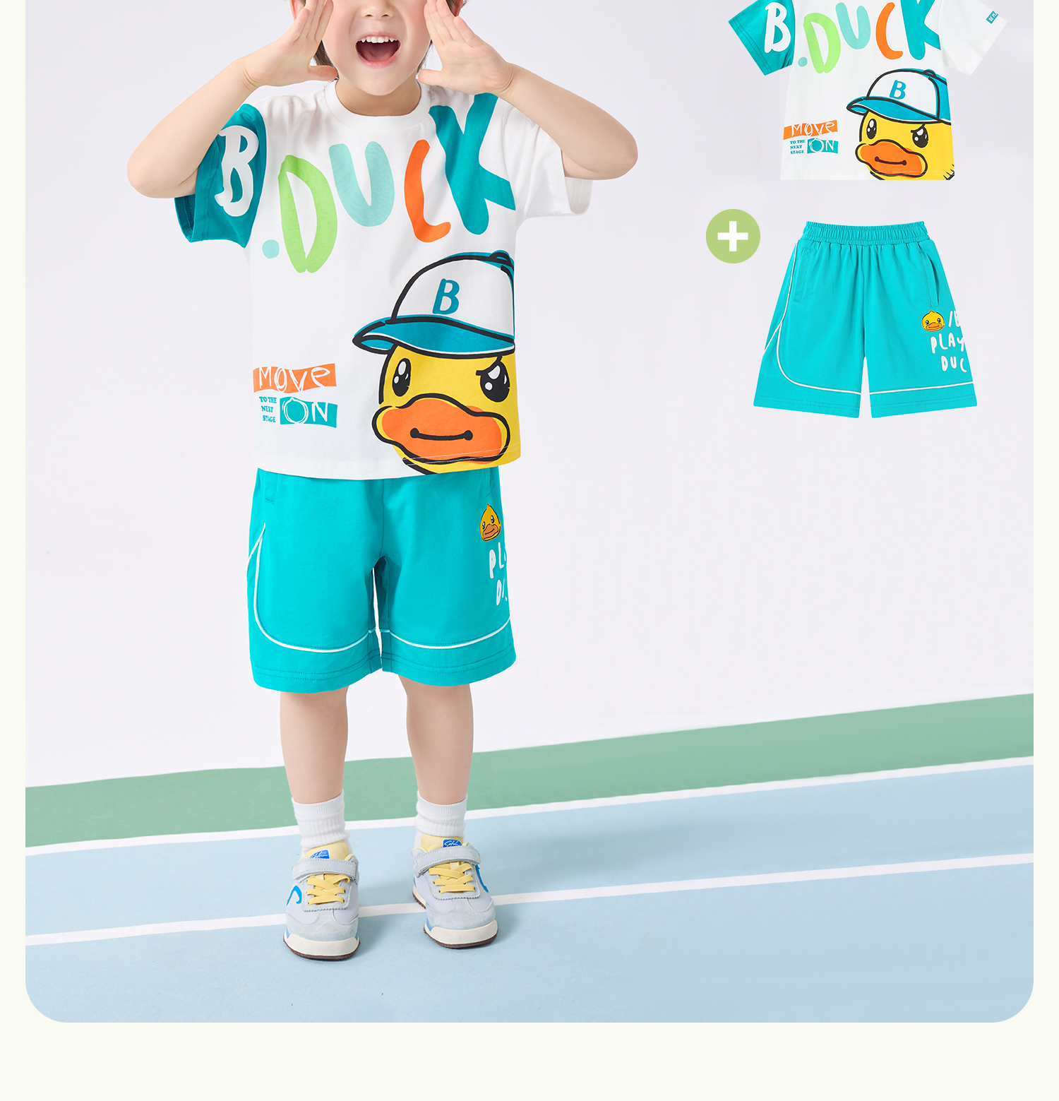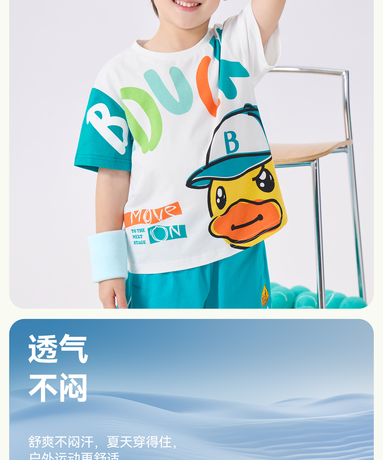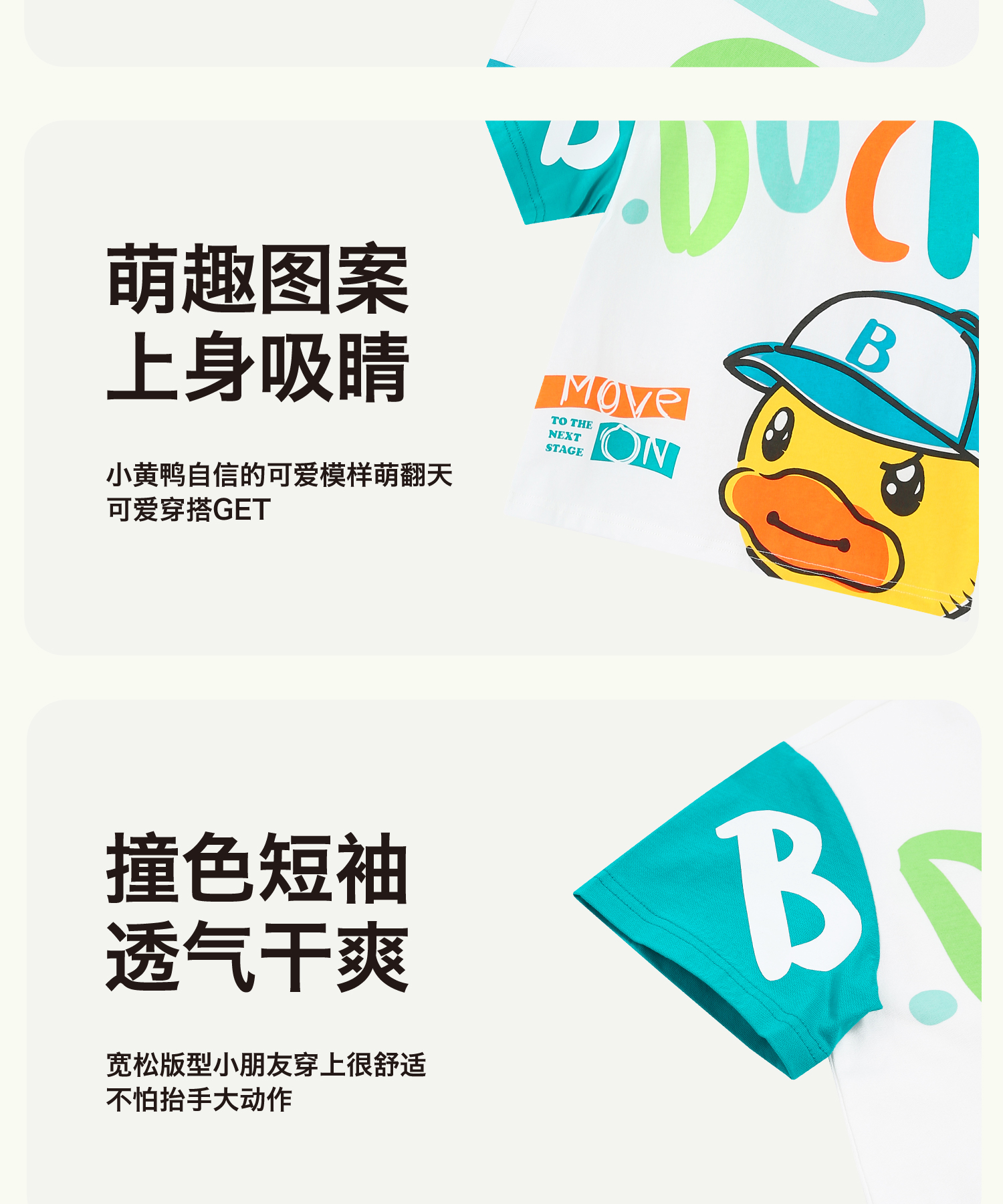bduck小黄鸭童装夏季男童T恤短袖夏装儿童纯棉半袖中小童上衣105-150 BF2601055