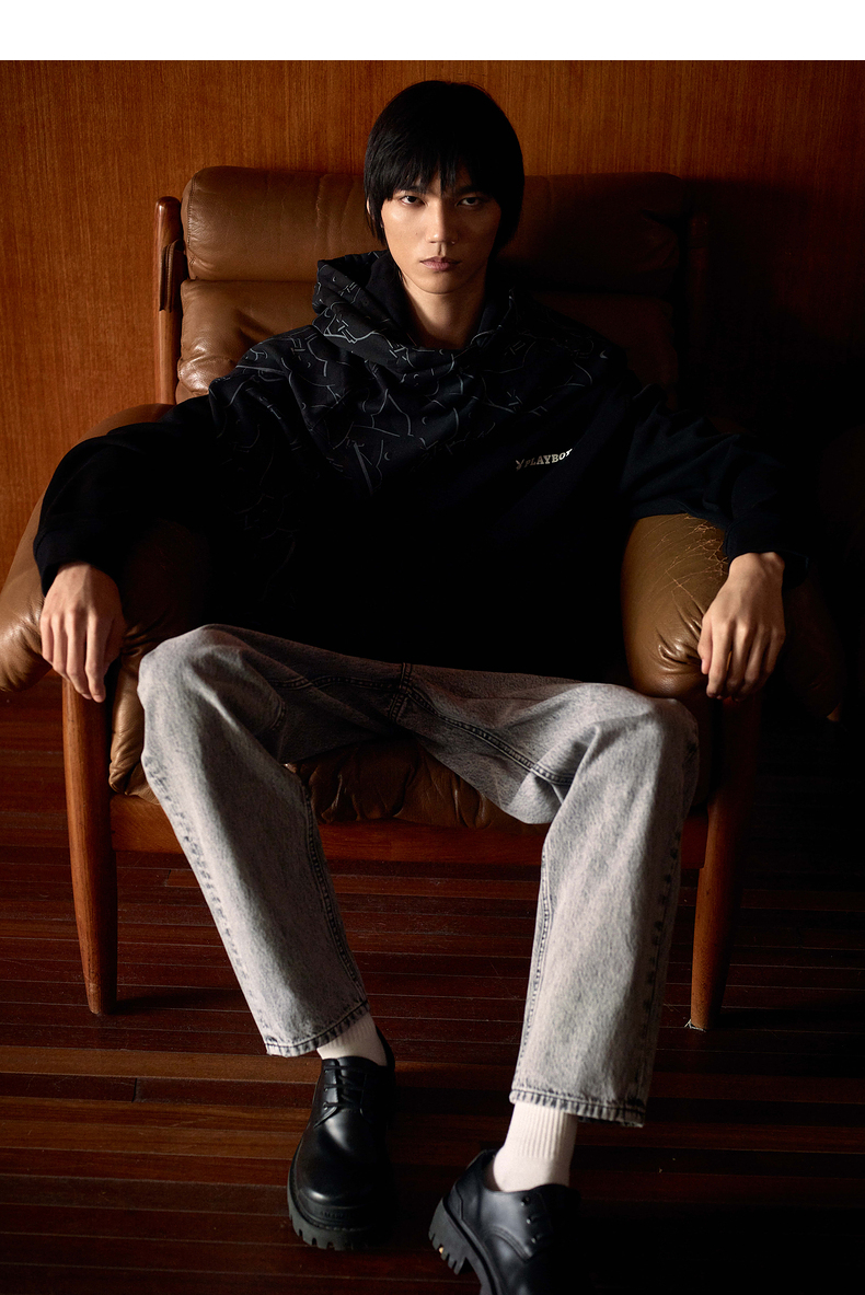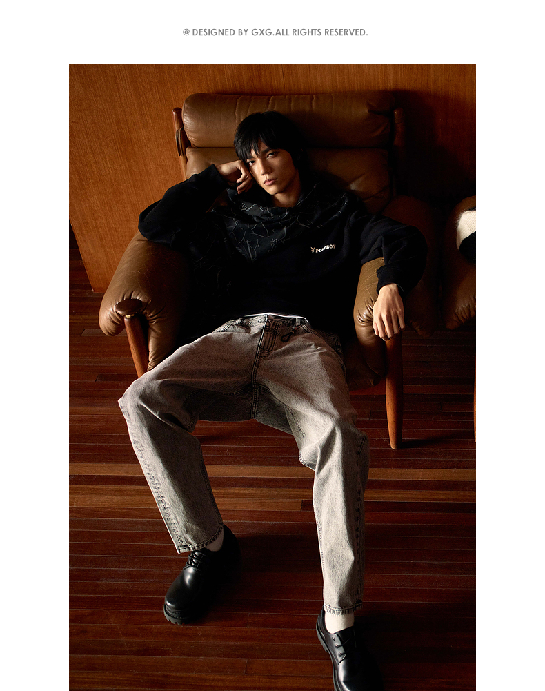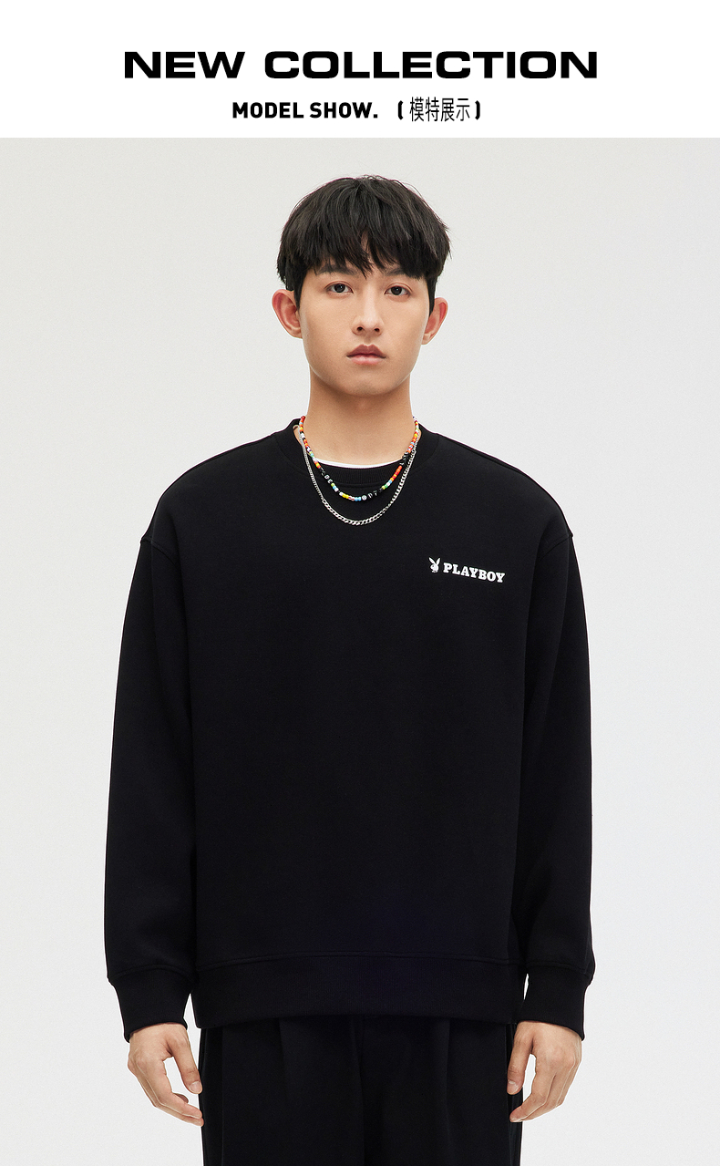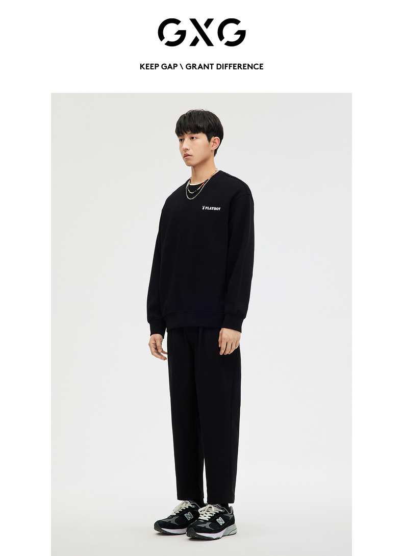GXG男装黑色图案印花卫衣 春季热卖时尚卫衣