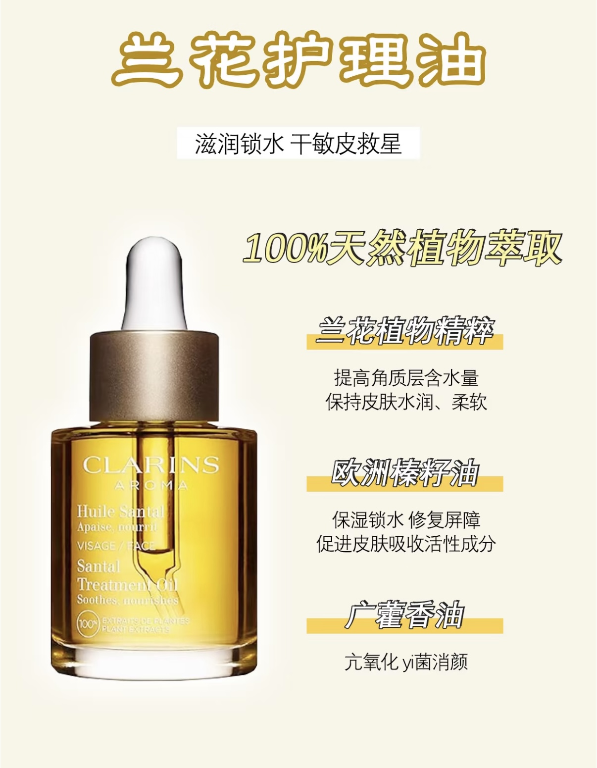 Clarins/娇韵诗兰花油面部护理油30ml调理肌肤保湿防干纹滋润