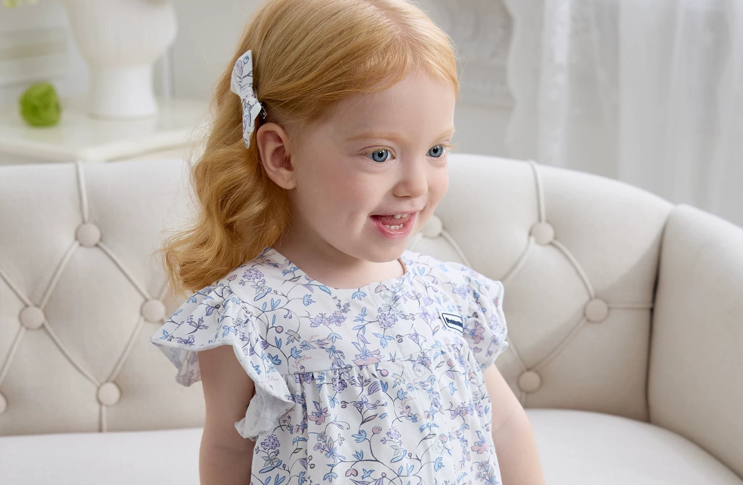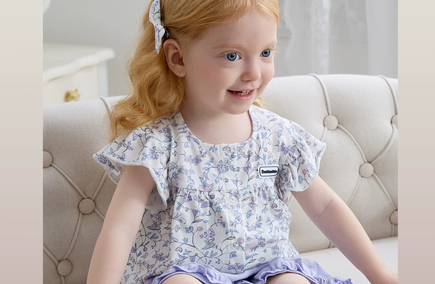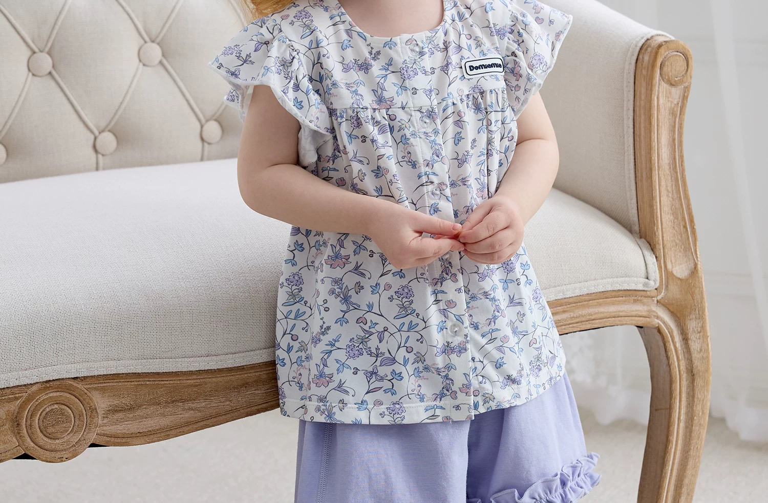 Domiamia 女宝宝针织花边袖开襟上衣T恤 女童透气薄款短袖夏装宝宝
