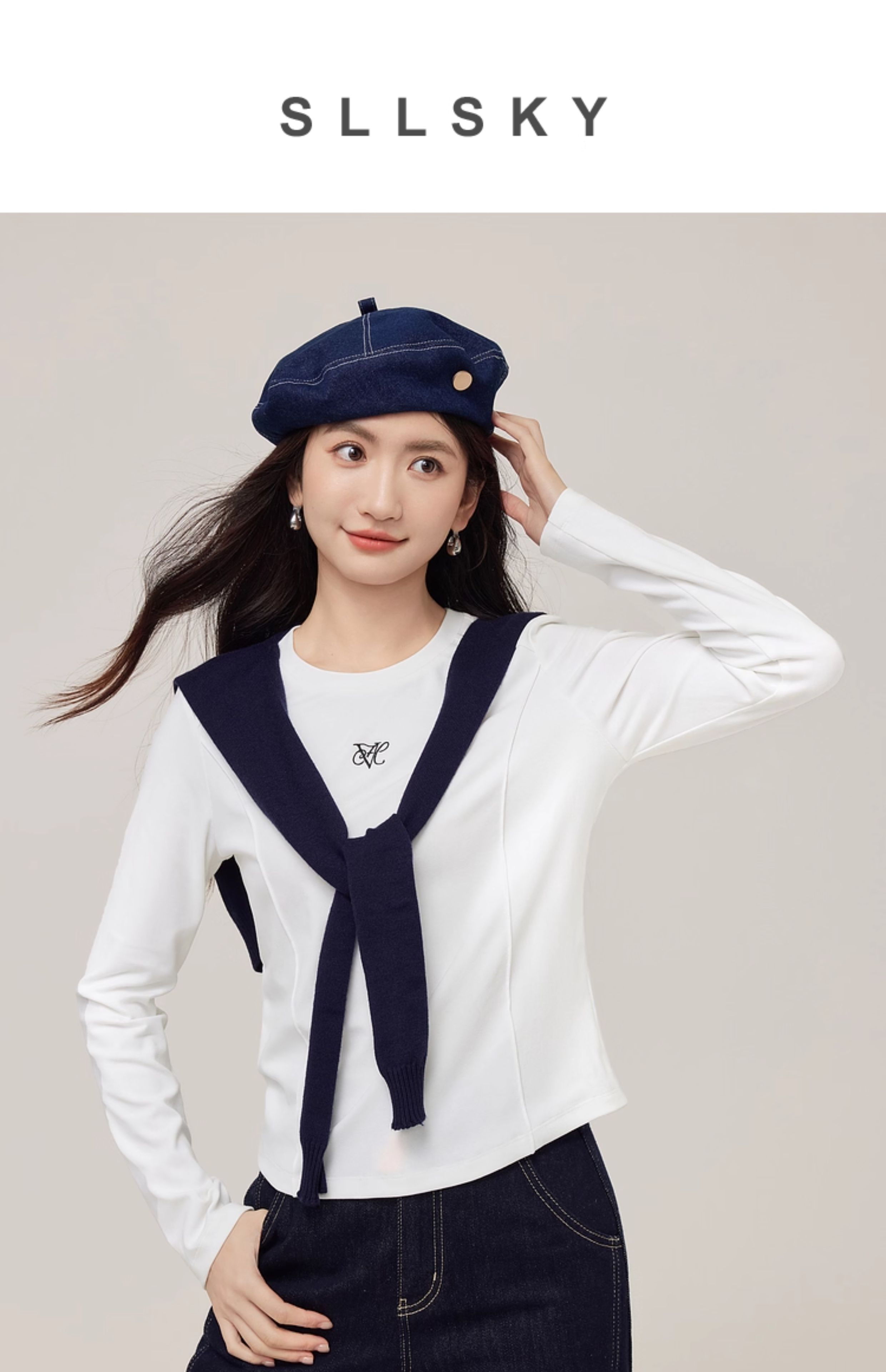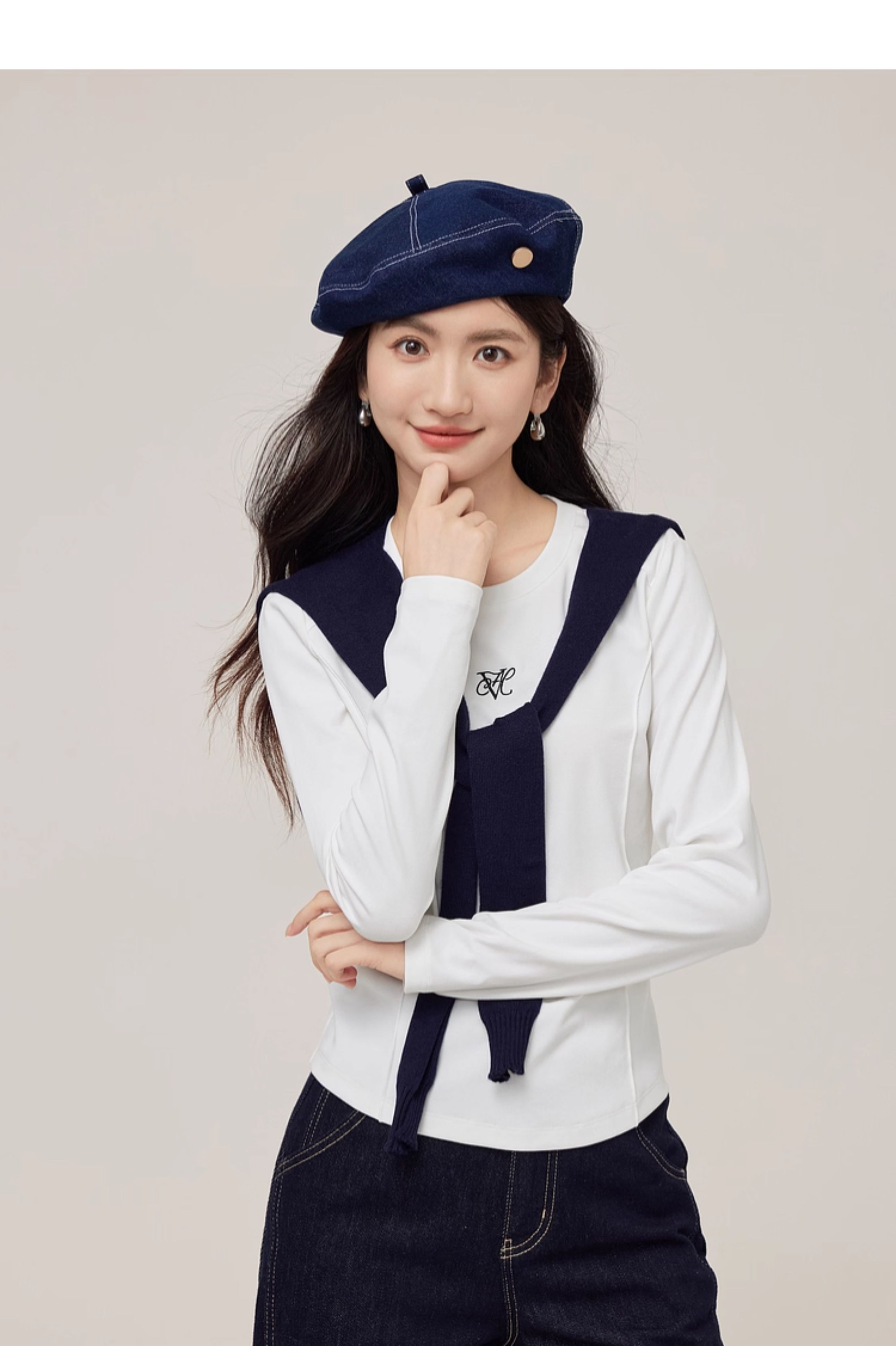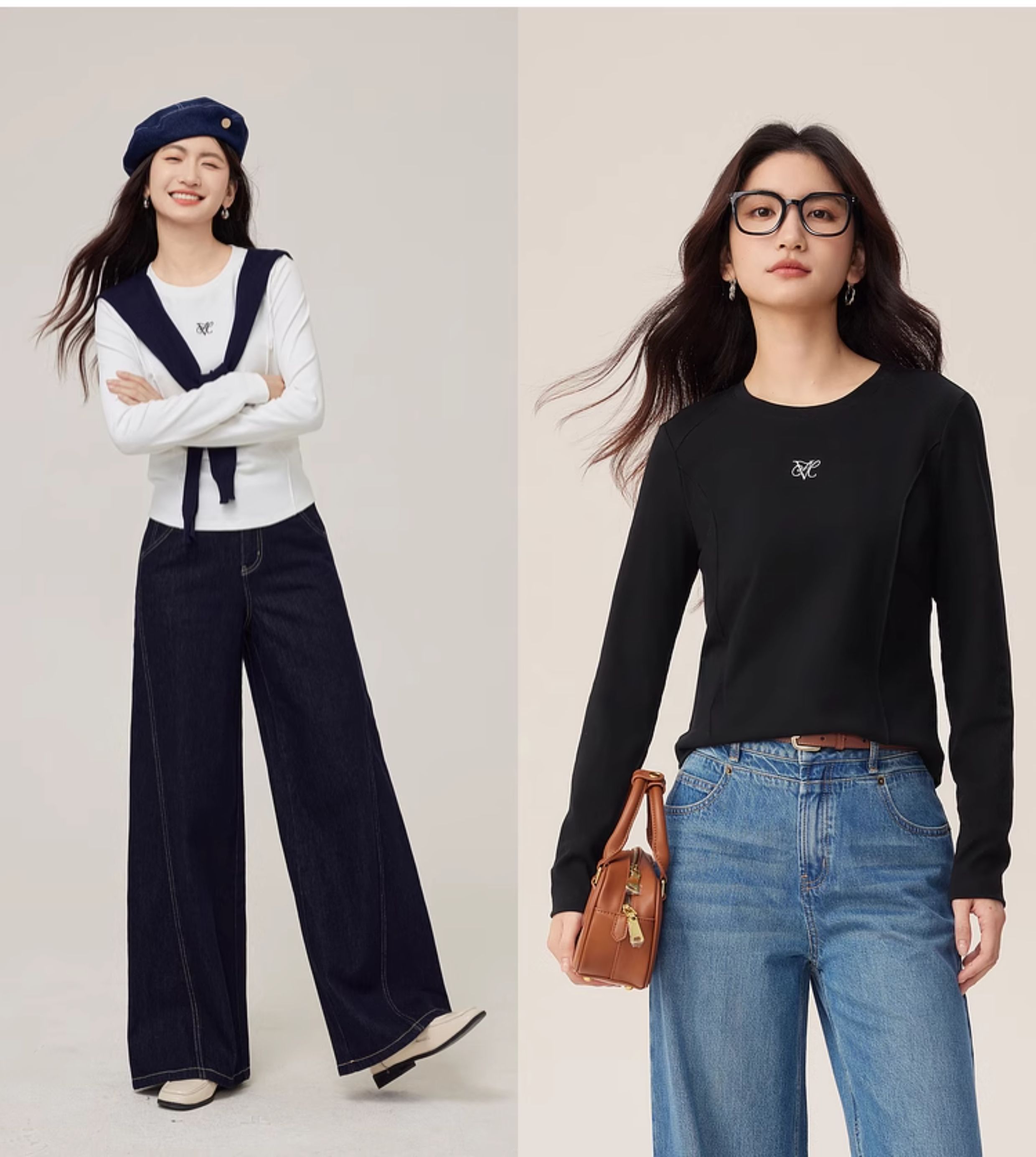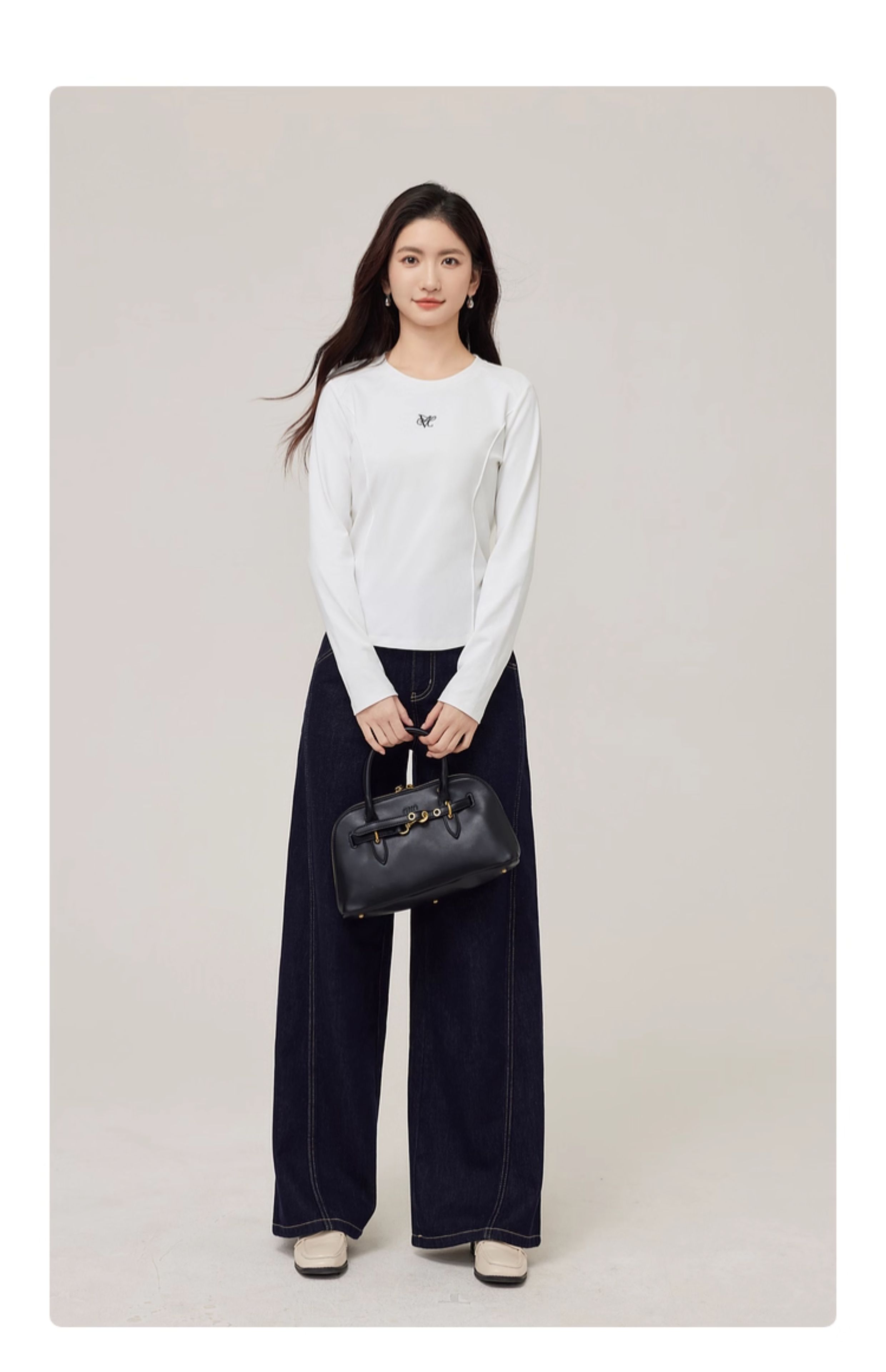【08/27新品】熙世界鱼骨线收腰T恤长袖女2025秋季新款刺绣修身显瘦打底衫上衣