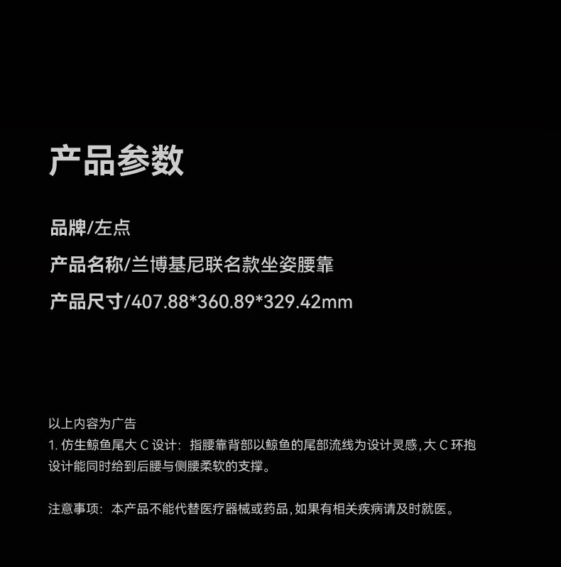 【分仓直发包邮】左点兰博基尼联名款坐姿腰靠ZD-HYKD2407-L