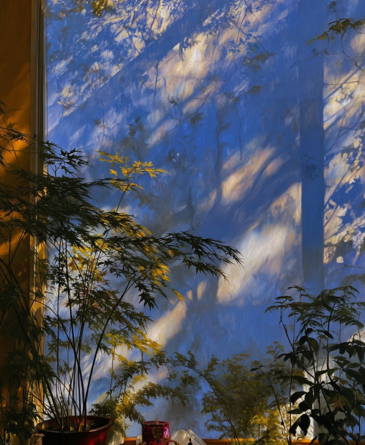 他的画作藏着近乎执念的绿色,不是单一的、静止的绿,而是一场流动的、呼吸的生命剧场。