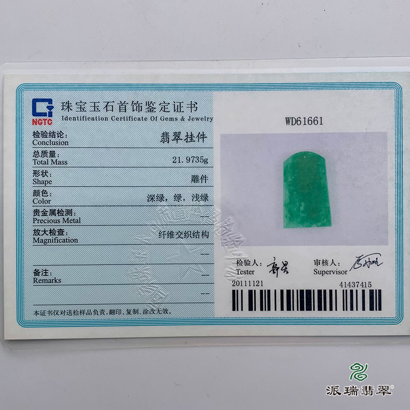 派瑞翡翠 翡翠挂件 糯种 绿色