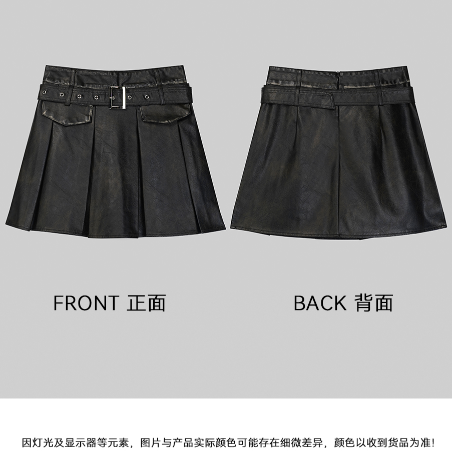 PX女装春季新款 PU皮半身短裙显瘦百搭A型 824107895B 黑色