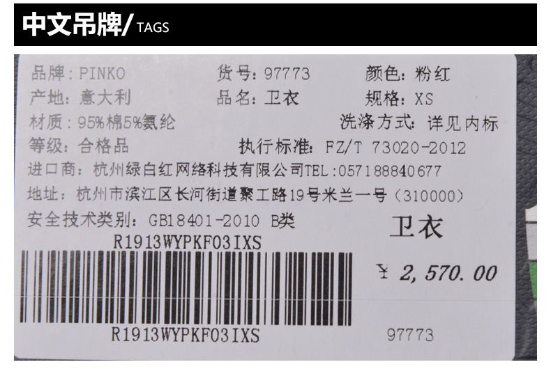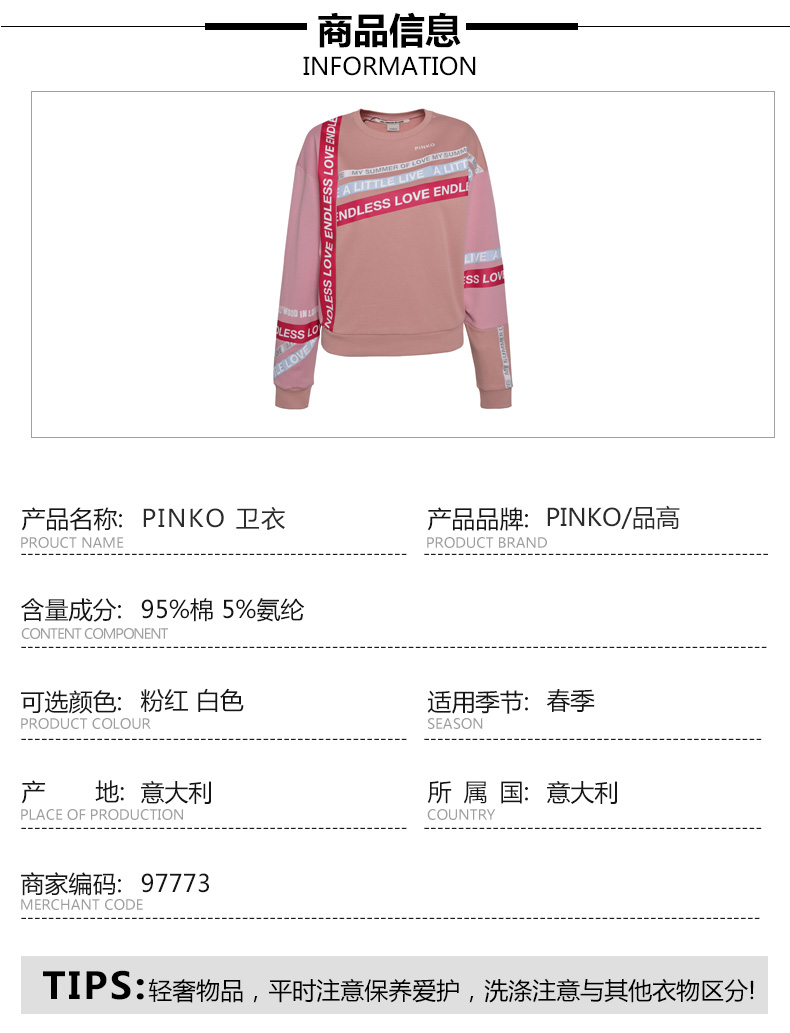 【特惠秒】Pinko 女士字母线条印花弹棉卫衣外套 97773