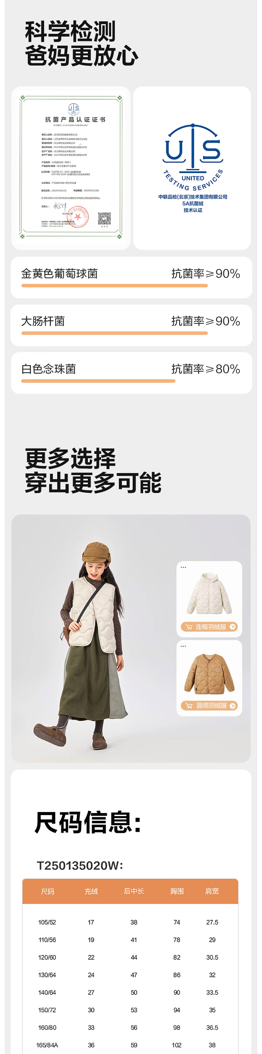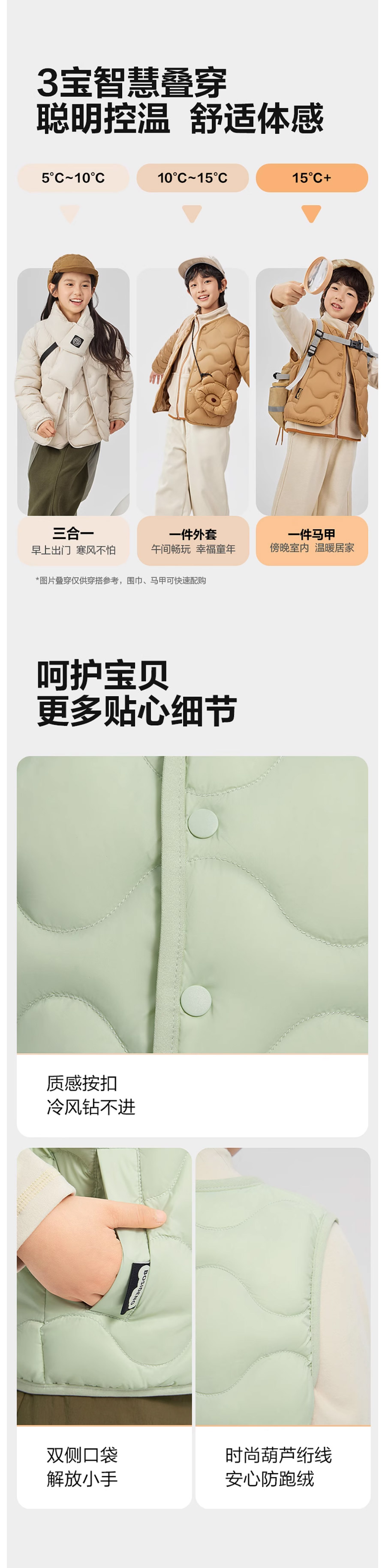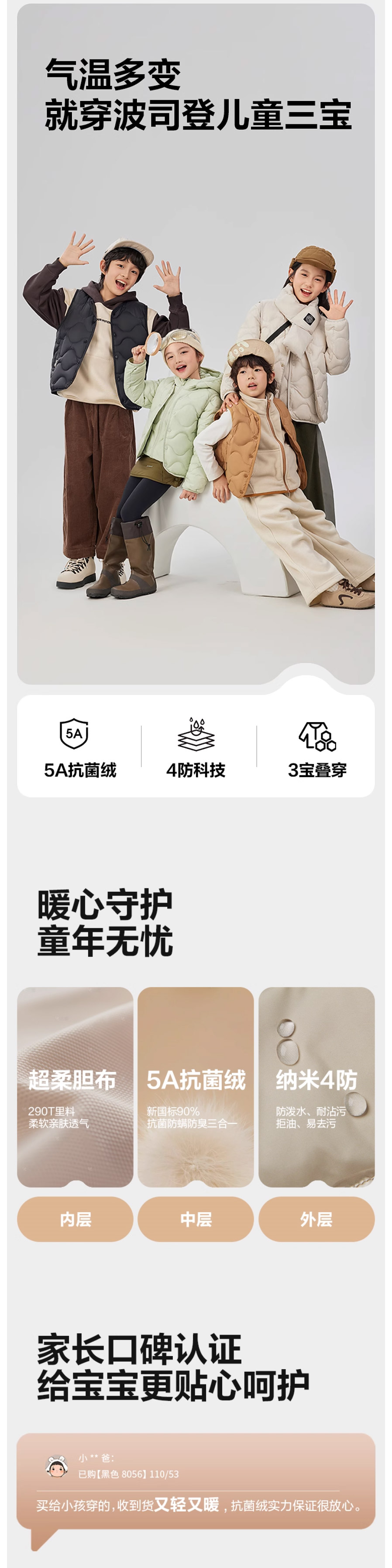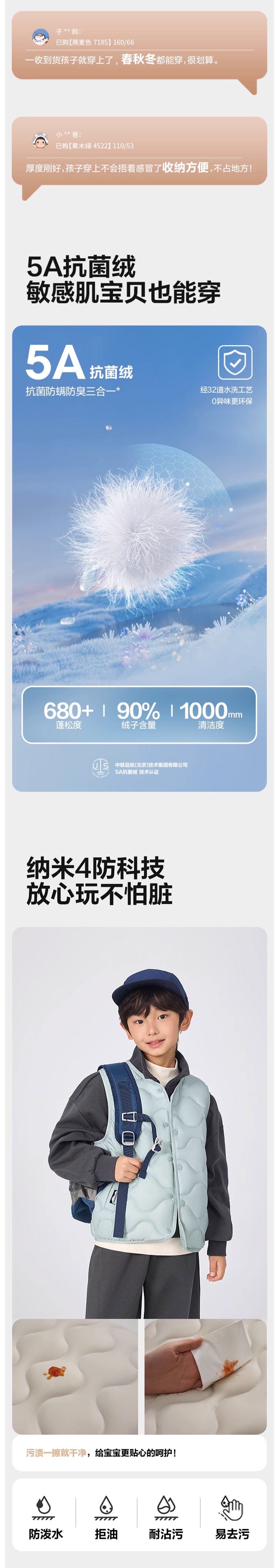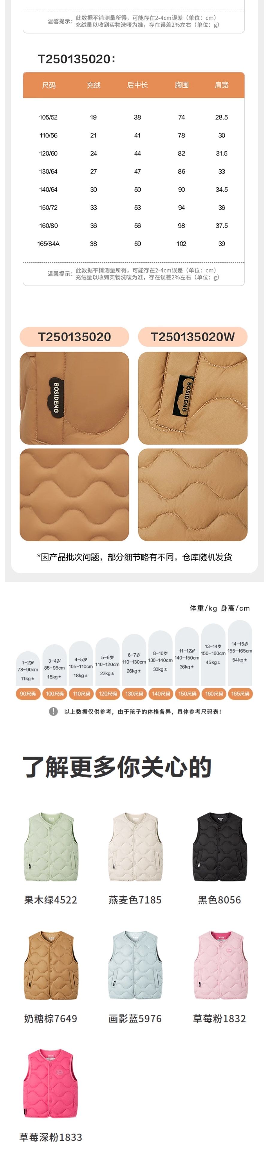 波司登25新款男童女童短款马甲三防儿童轻薄羽绒服T250135020W