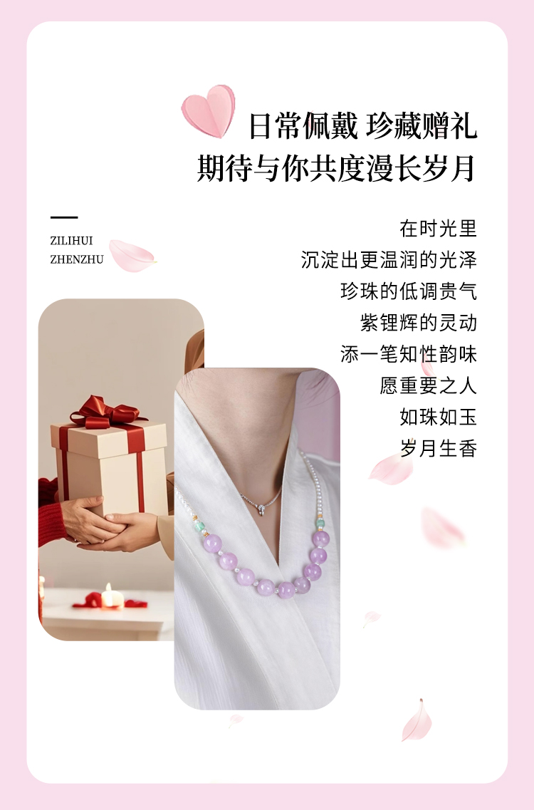 紫锂辉水淡水珍珠项链天然轻奢颈饰明星同款穿搭心意礼物