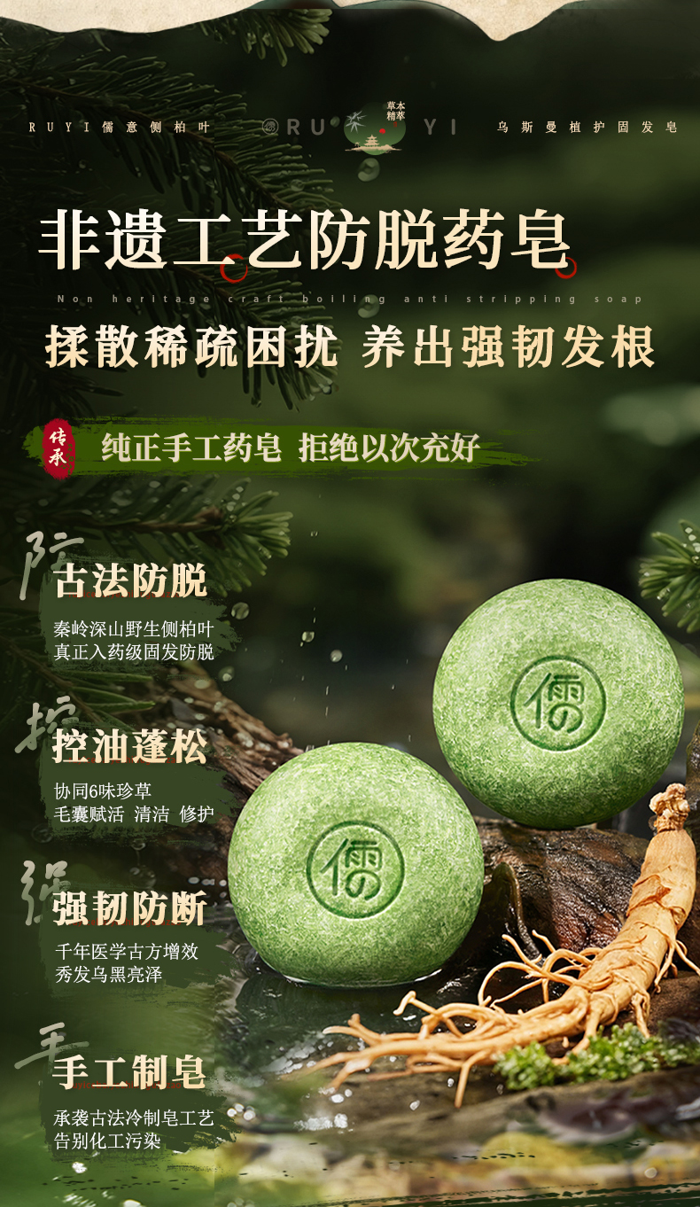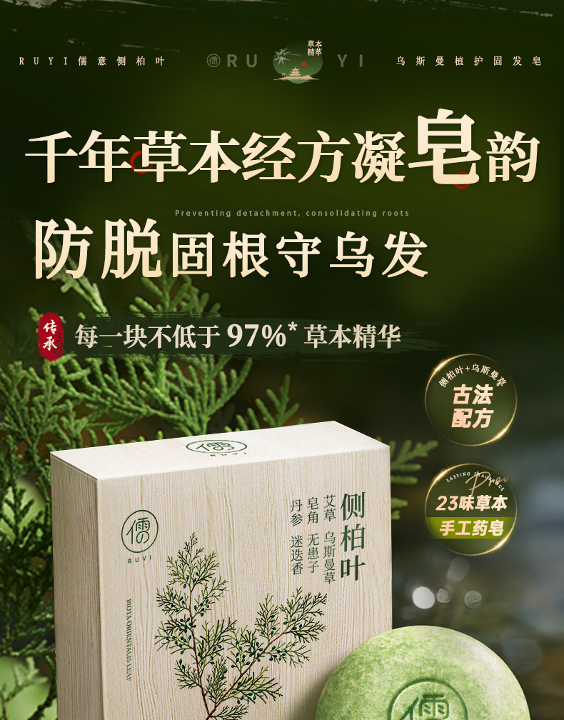 【🔥119选4件】再送面膜𝟏𝟐片 儒意侧柏叶乌斯曼植护固发皂120g 侧柏叶洗发皂何首乌中药新疆乌斯曼草手工洗头固发防断发控油去屑|儒意官方商城