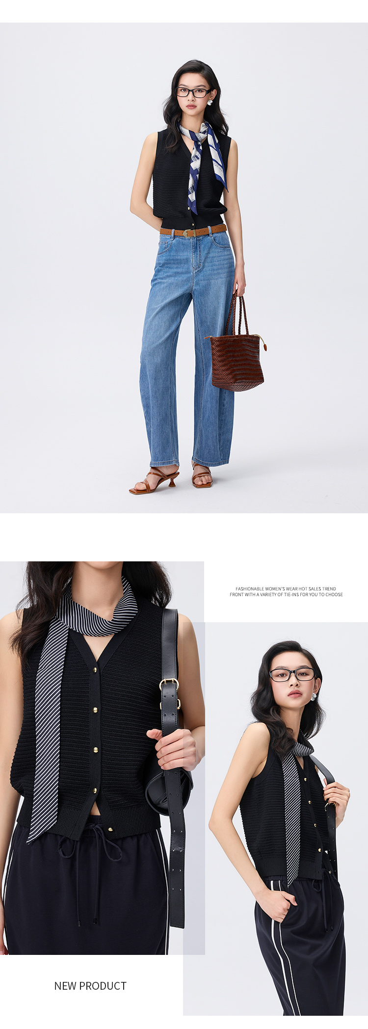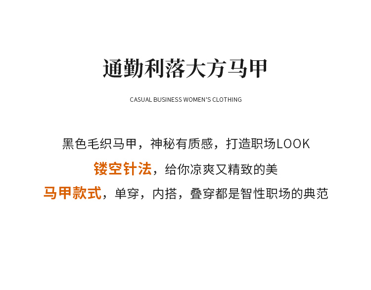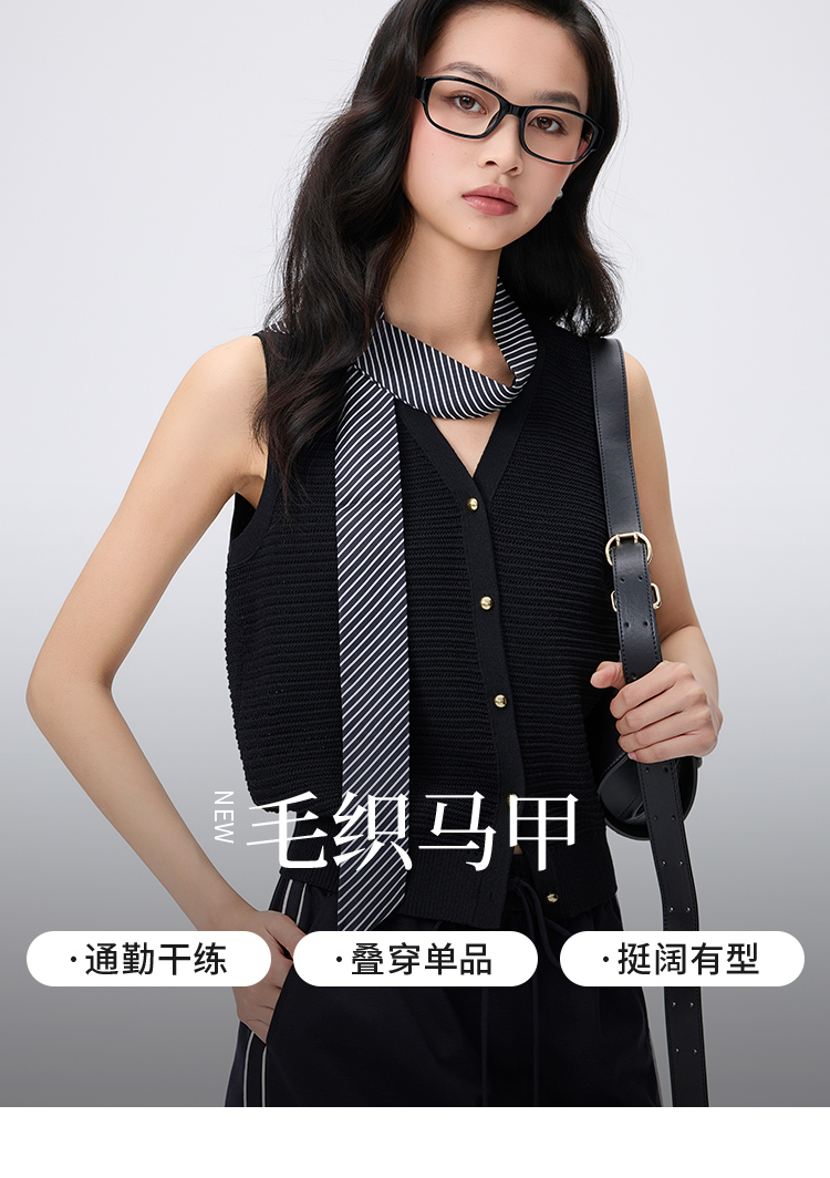 【商场同款】CNI6445 “ 都市新贵马甲 ” 莱赛尔三醋酸定制纱线吸汗透气 自然纹理挺括有型 好穿黑色马甲