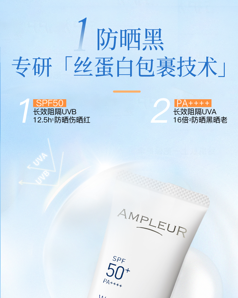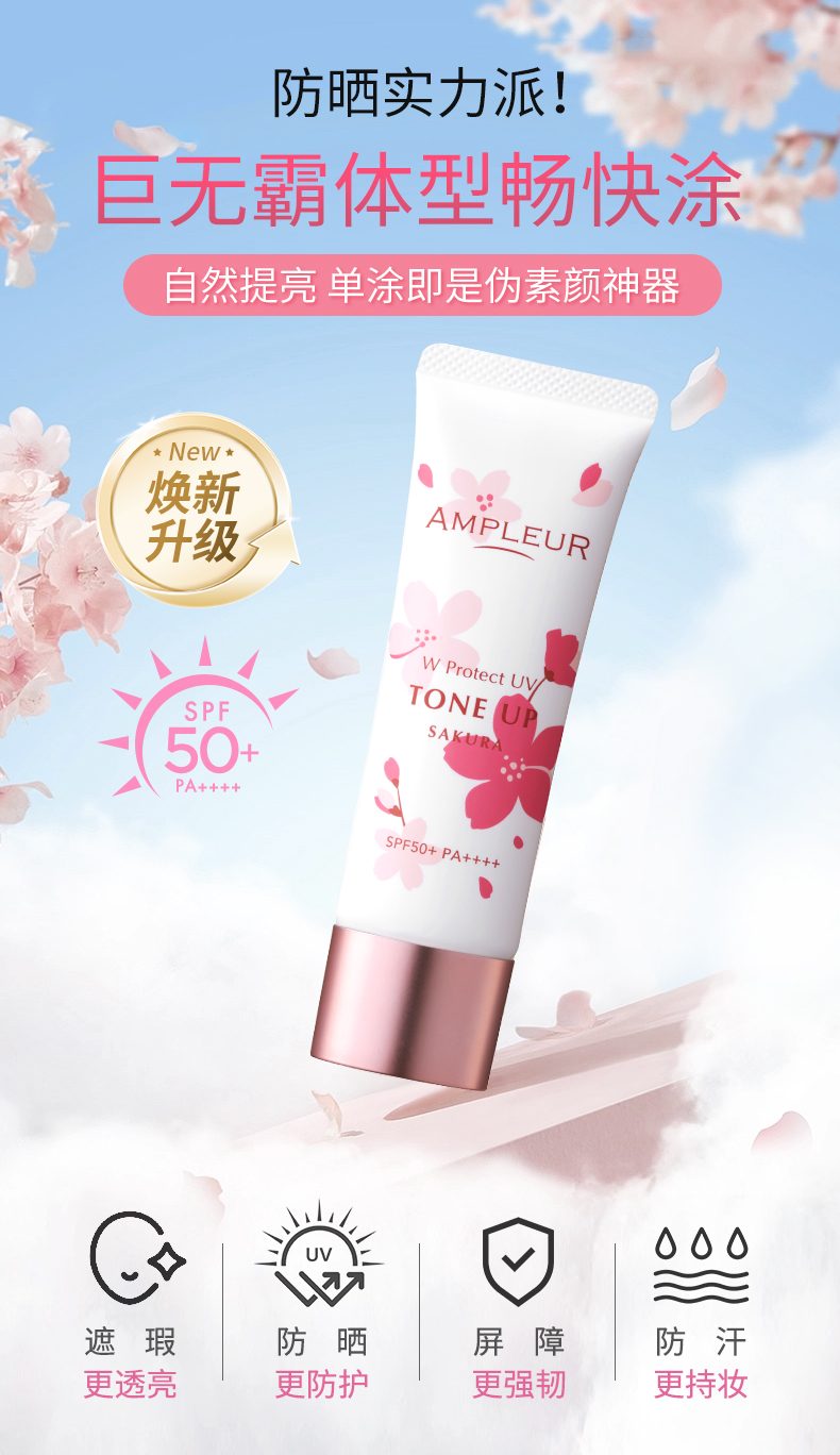 效期至28年7月!!!AMPLEUR水润亮白清透防晒乳30g和樱花肤感大防晒50g