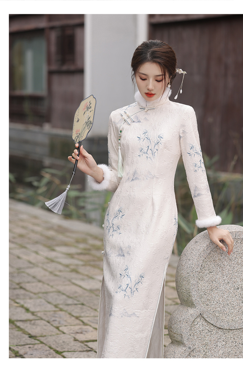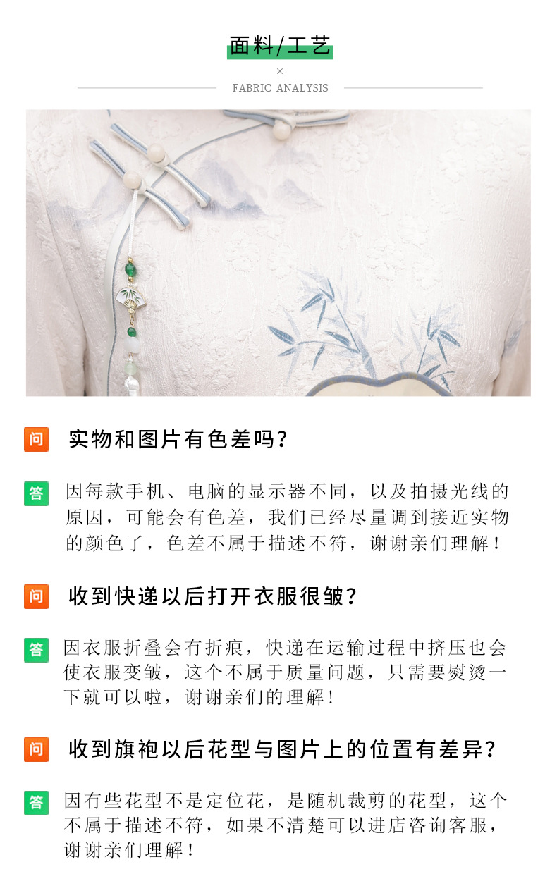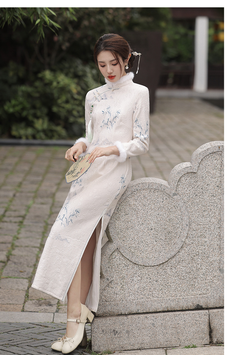 气质竹叶立体提花,韵味古典复合超柔长款旗袍MLS-6819