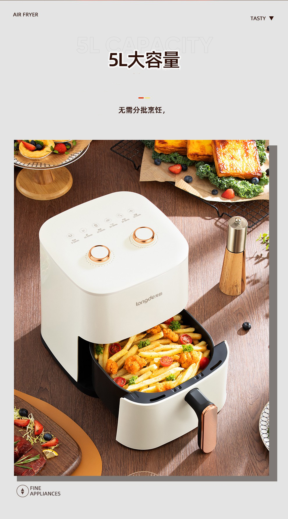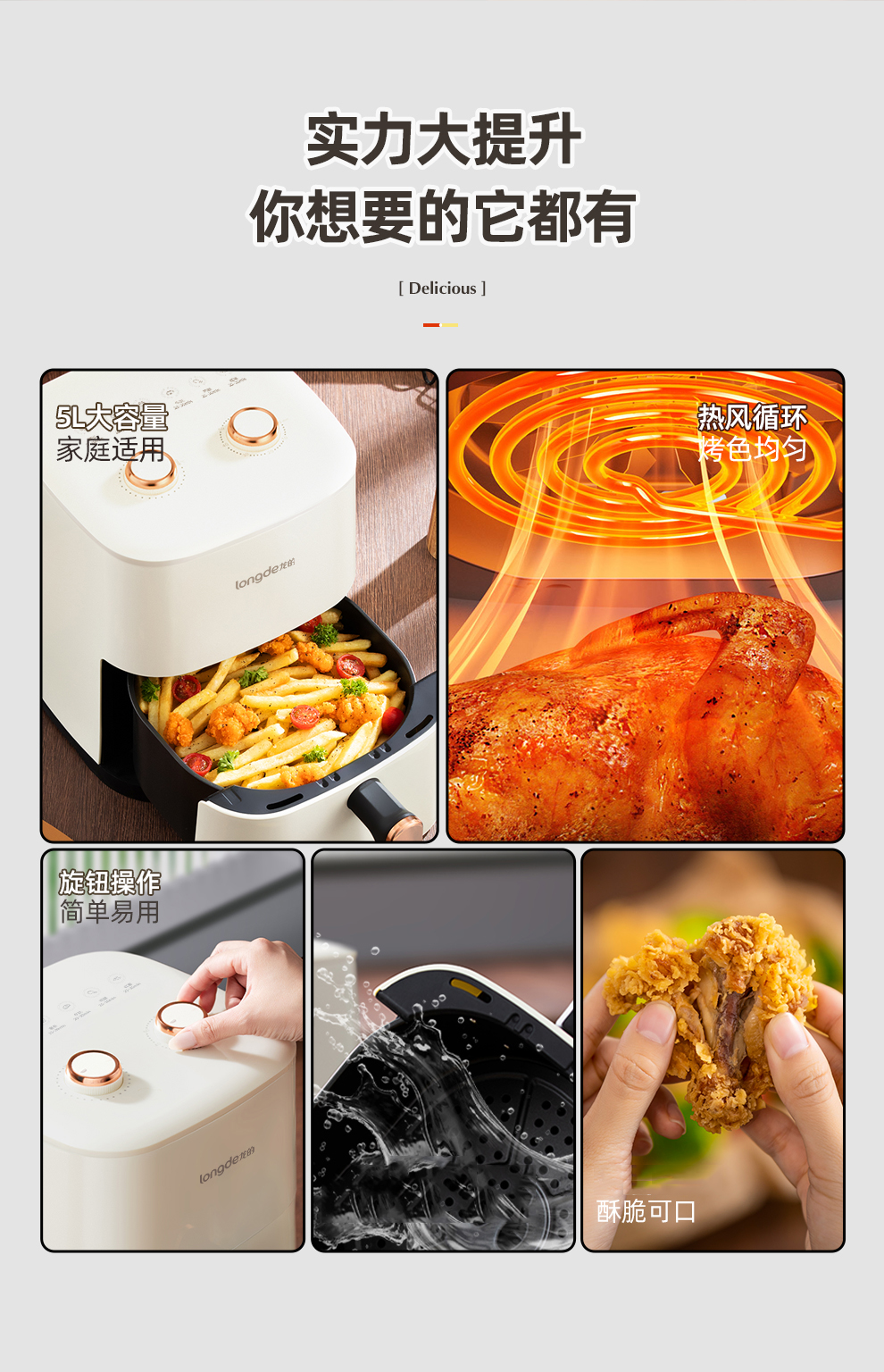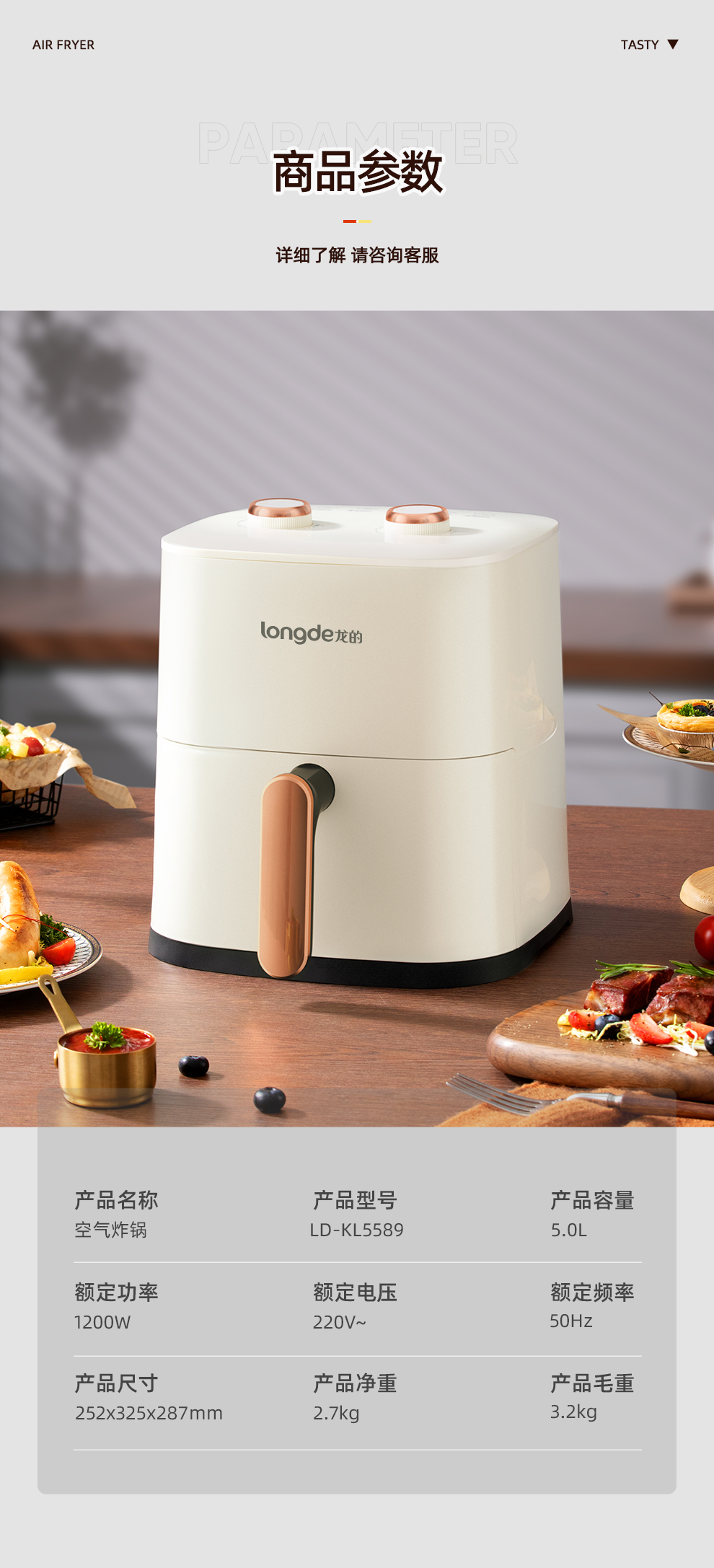 【新品上市】龙的(longde)空气炸锅 家用智能不沾易清洗 360度热风循环准确定时无油煎炸薯条机 贴心菜单照着学轻松做大厨 LD-KL5589