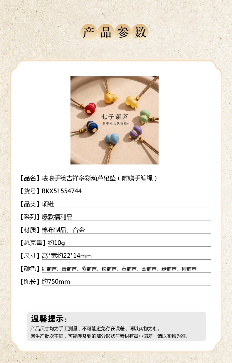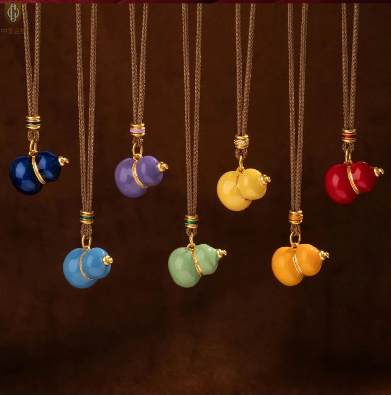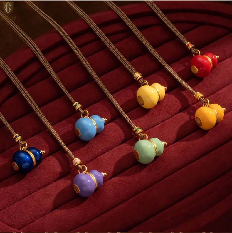 福禄双全中式浪漫【七彩珐琅金葫芦项链】七彩配色温润如玉、福禄吉祥寓意与时尚设计、葫芦造型象征美好祝愿、七彩配色彰显个性魅力、自戴百搭送礼贴心、新中式风格尽显雅致韵味