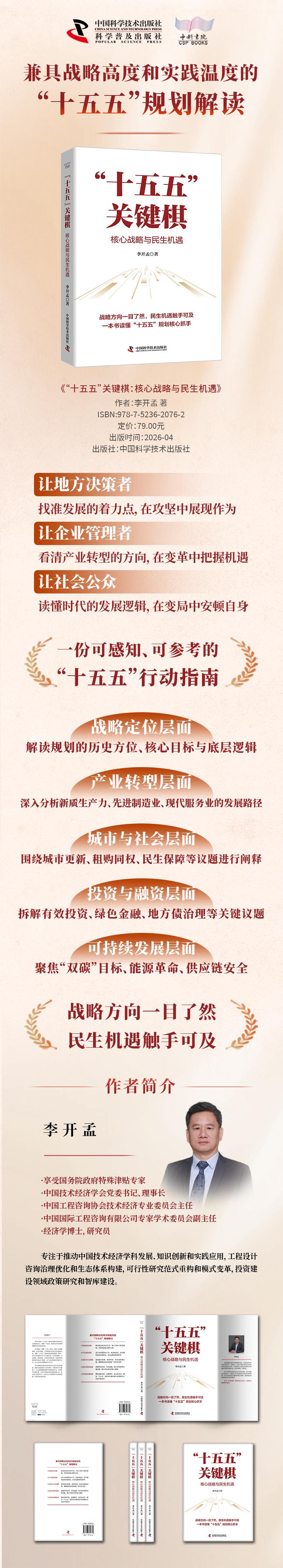 本书从制定“十五五”规划的战略目的和时代之需角度切入,解答“十五五”到底为经济发展带来哪些实实在在的改变。本书通过“战略—产业—民生—实践”的逻辑脉络,从经济规律、产业逻辑与民生关切的角度出发,拆解“十五五”规划背后的底层逻辑。同时,本书从推动新质生产力发展方面,从科技变革、产业转型、城市建设、投资布局等角度,为基层政府提供具体的执行策略,为产业发展指明关键性卡点,为大众投资消费提供可行方法。本书兼具智库研究的专业性和对民生关切的温度,希望为读者提供一份可感知、可参考的行动指南——让企业管理者看清产业转型的方向,在变革中把握机遇;让地方决策者找准发展的着力点,在攻坚中展现作为;让社会公众读懂时代的发展逻辑,在变局中安顿自身。