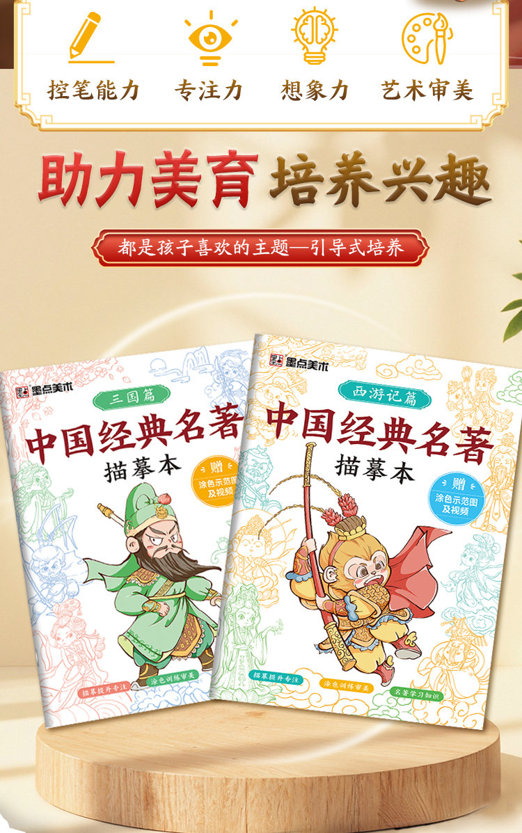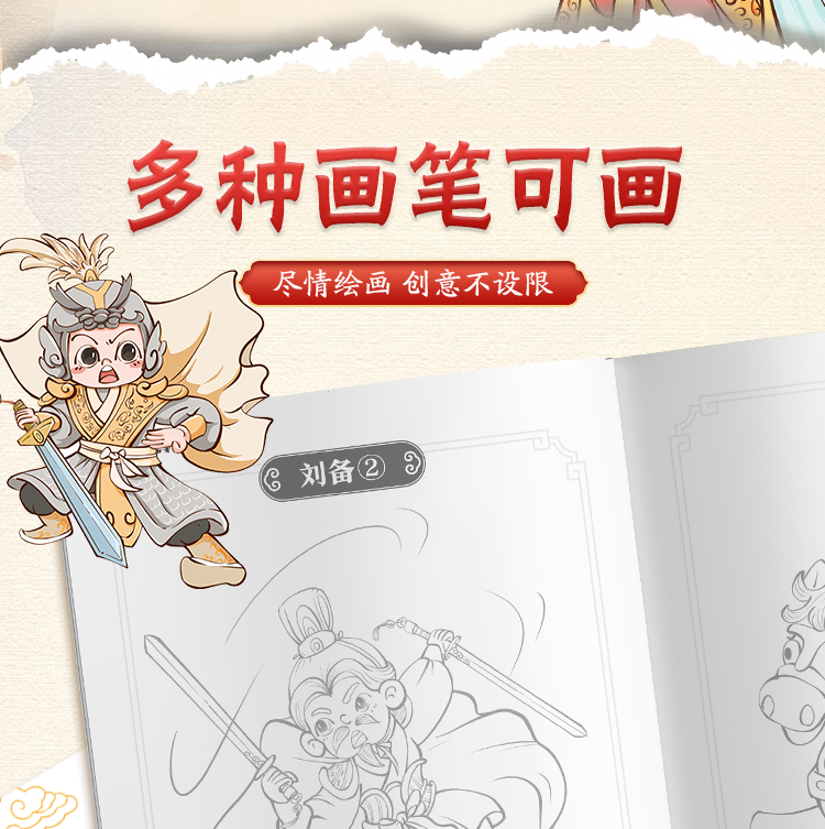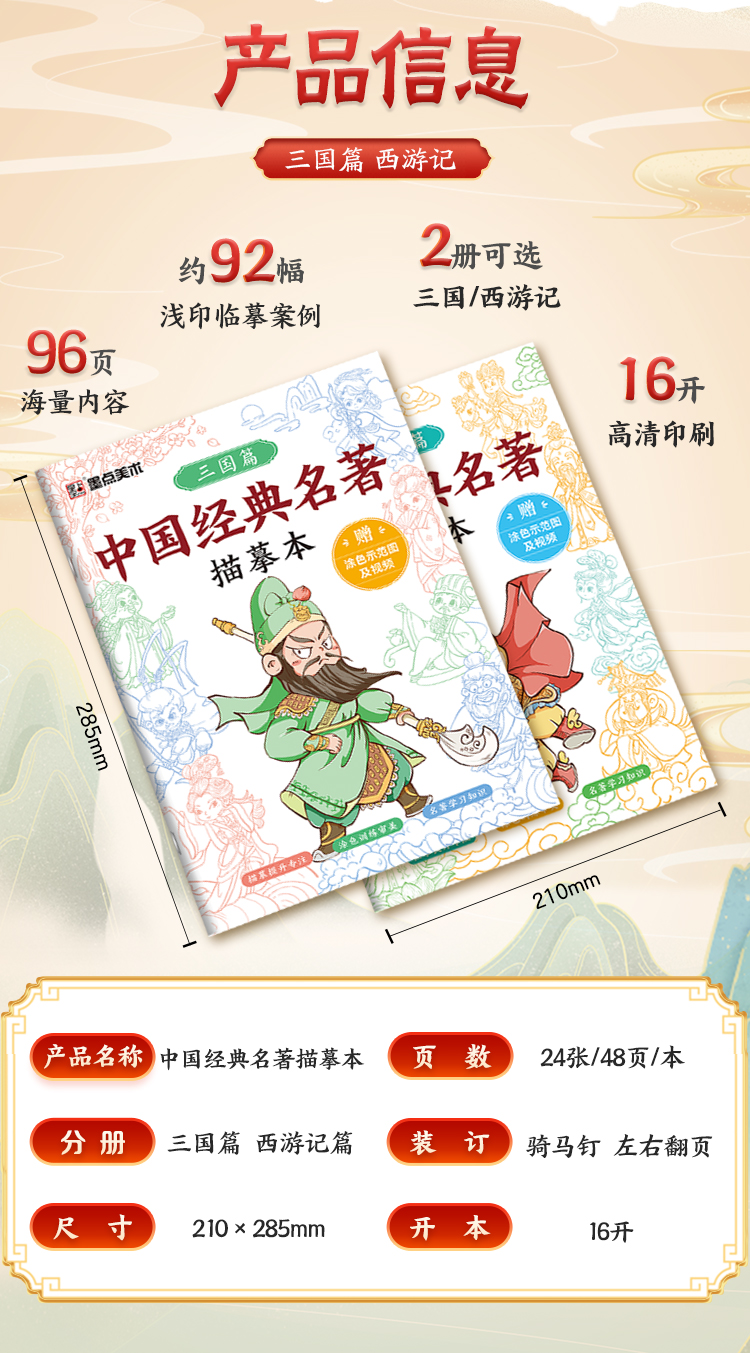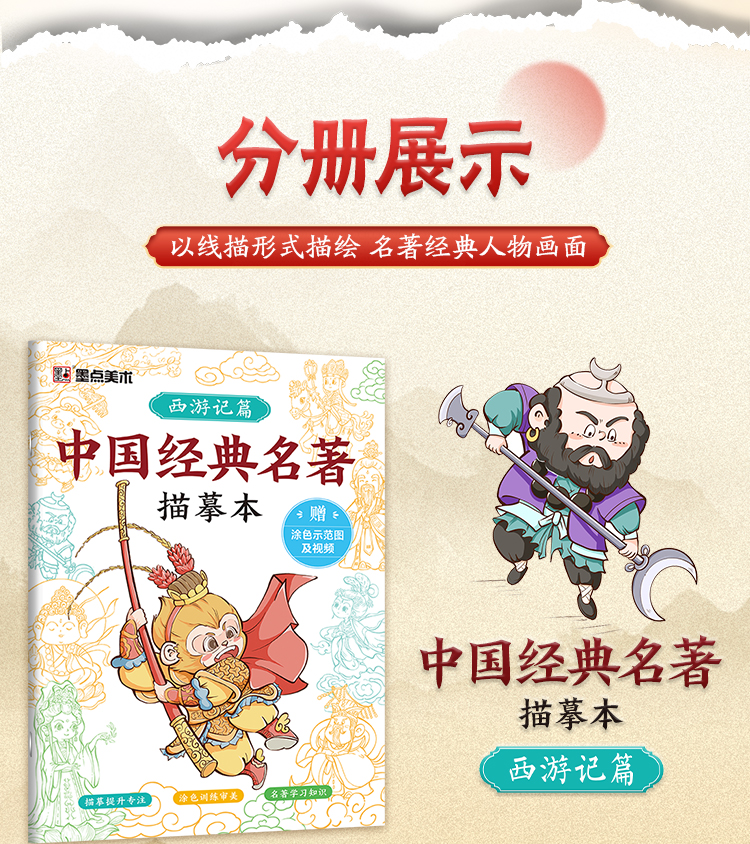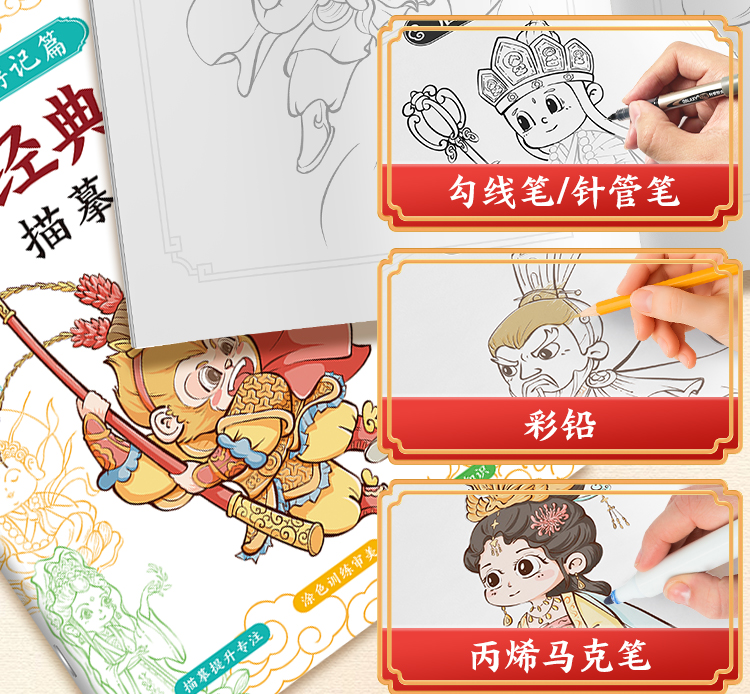 中国经典名著描摹本西游记三国 视频讲解 儿童Q版手绘描摹涂色本