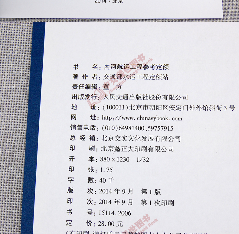 书名:内河航运工程参考定额 JTS/T-4-2014 交通部水运工程定额站 人民交通出版社股份有限公司