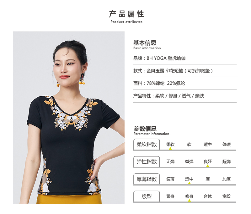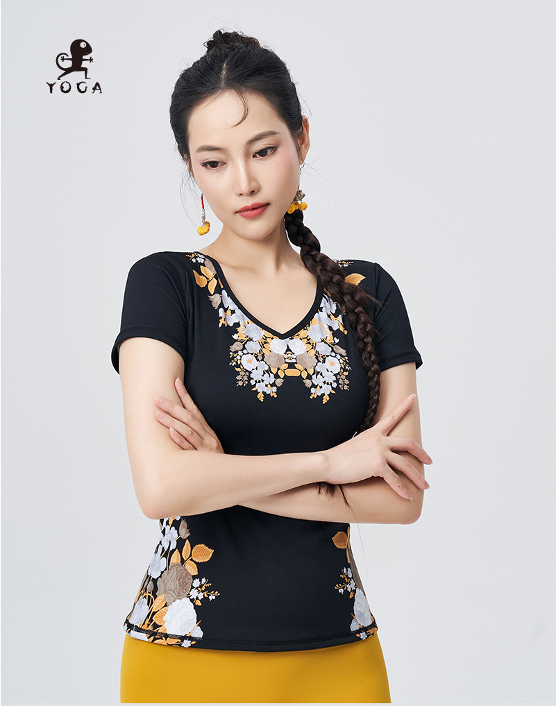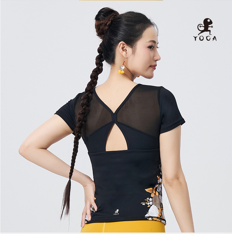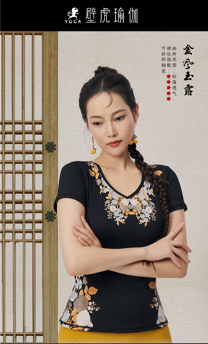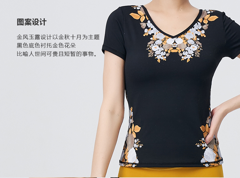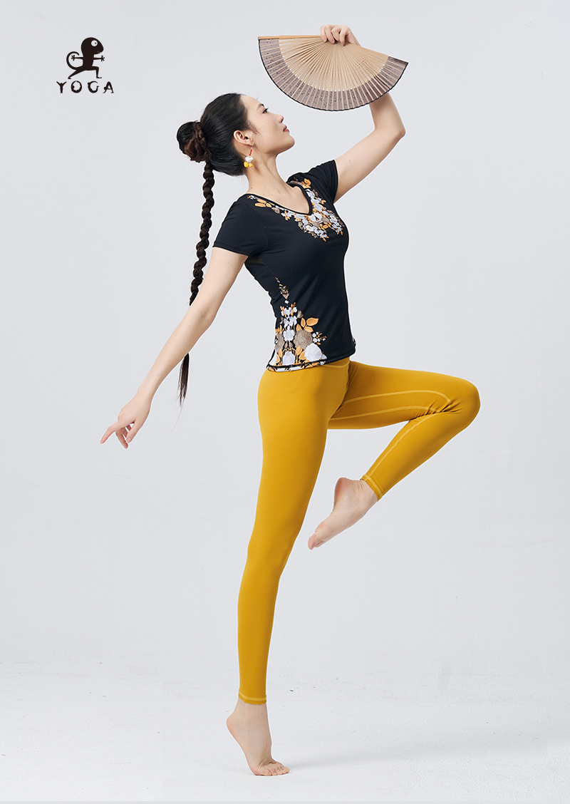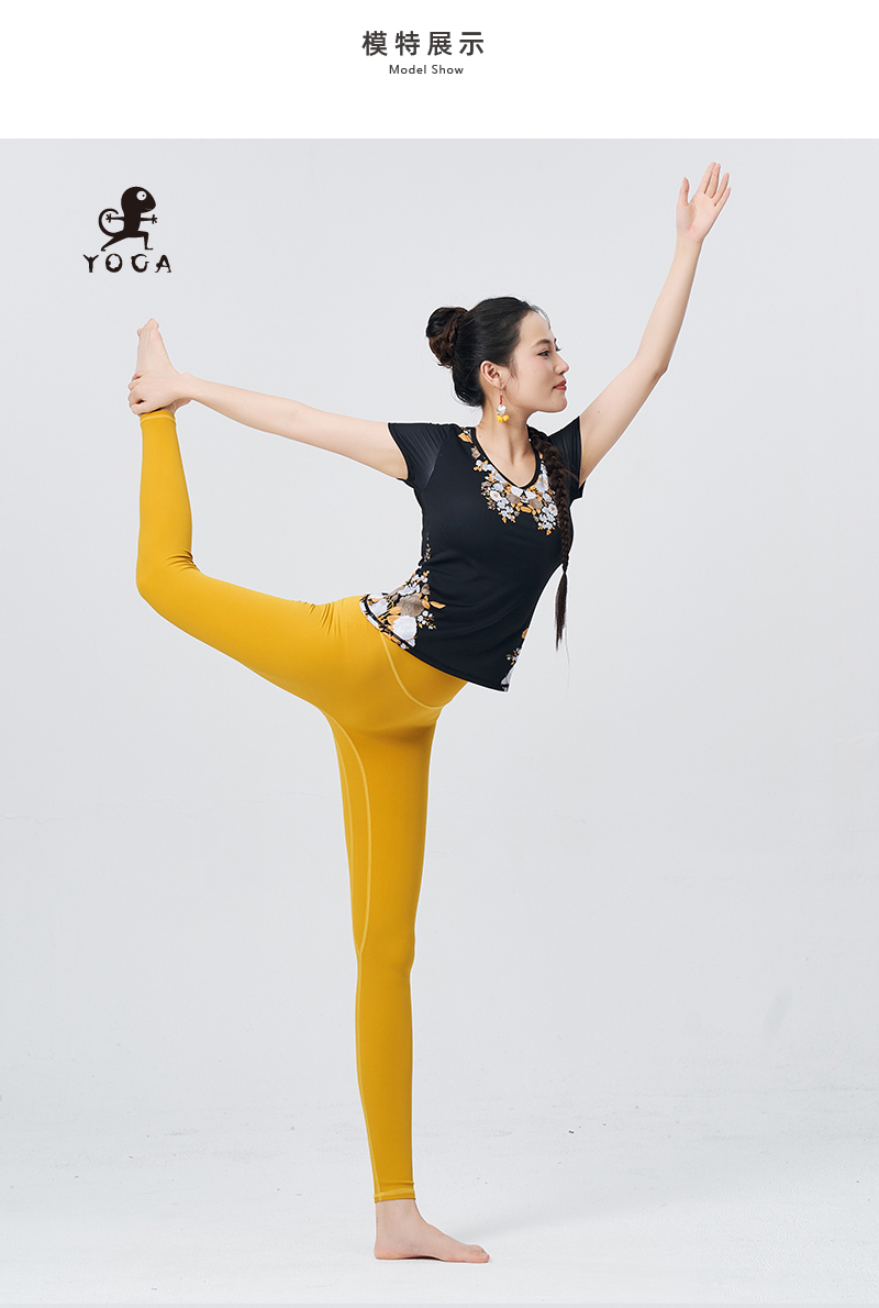壁虎瑜伽【金风玉露-上衣+云感裤-姜黄】印花短袖(可拆卸胸垫)