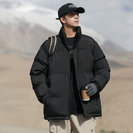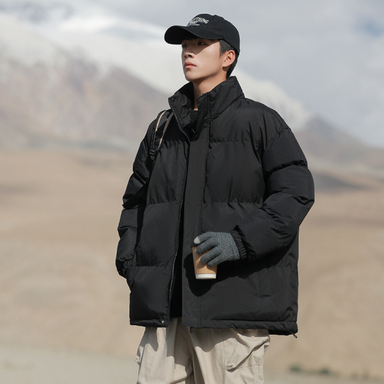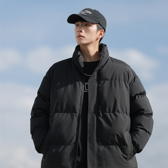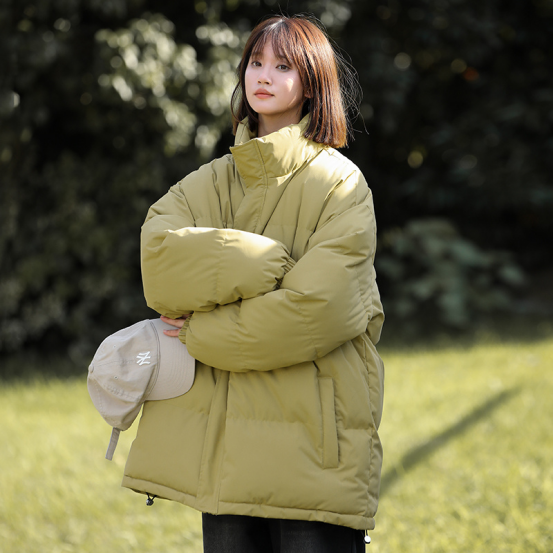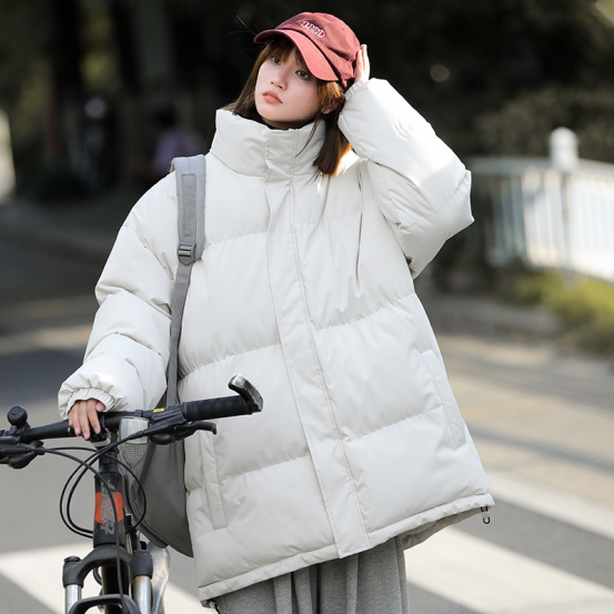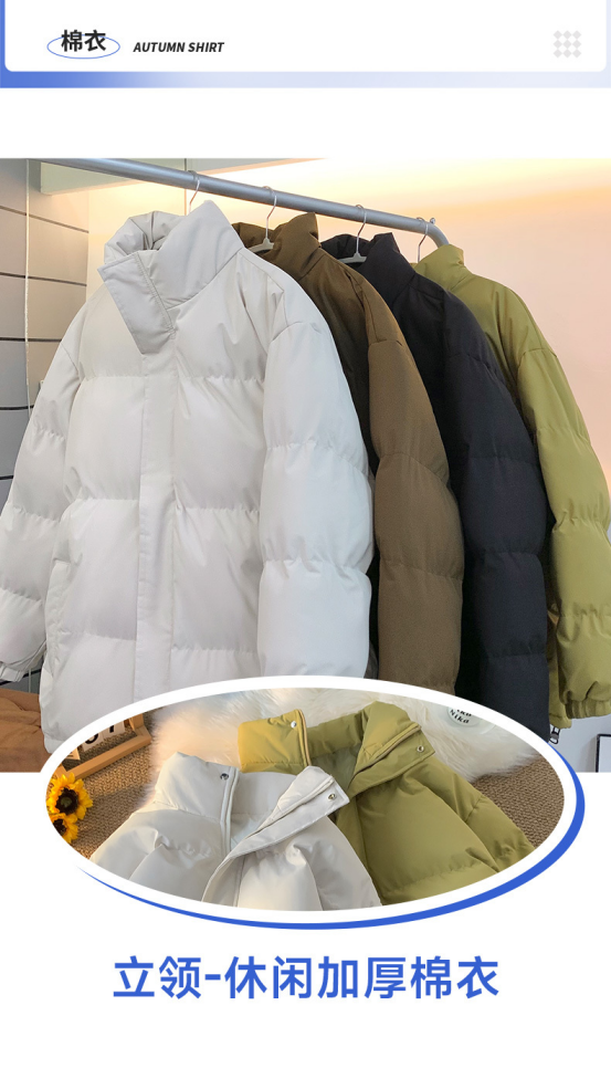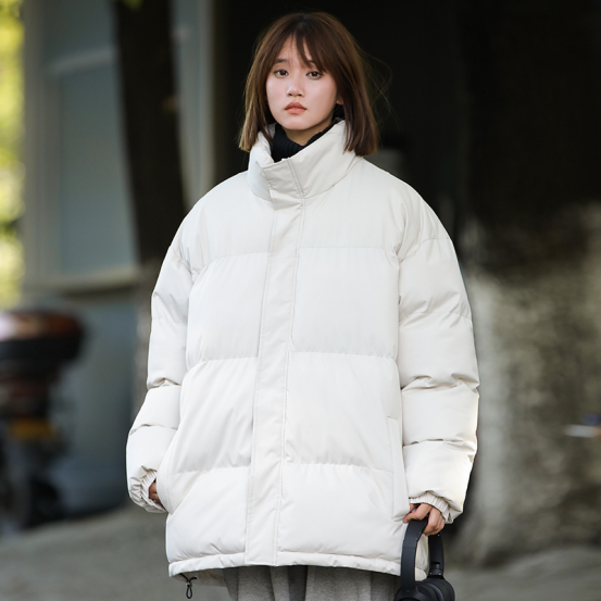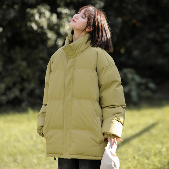 想穿的轻便舒适, 这种立领棉服就不会显得很臃肿! 纯色设计,尊嘟好喜欢,太好看啦! 真的是很韩系很韩系的一款棉服, 不管是搭配裤子还是半裙都很巴适! 怎么搭都不会出错,属于是谁穿谁洋气了!!