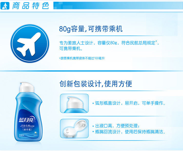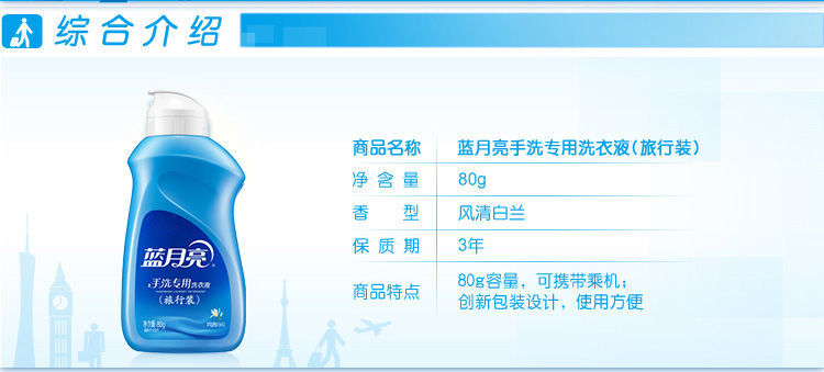 【9.9限时秒杀】蓝月亮洗衣液正品手洗80g风清白兰香学生旅行装出差旅行便携装