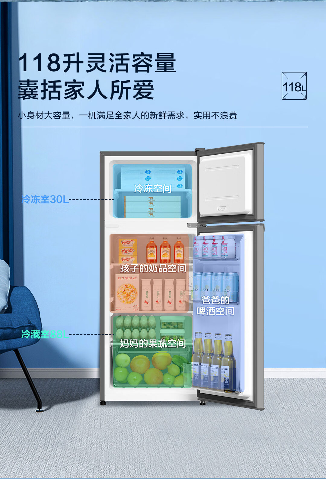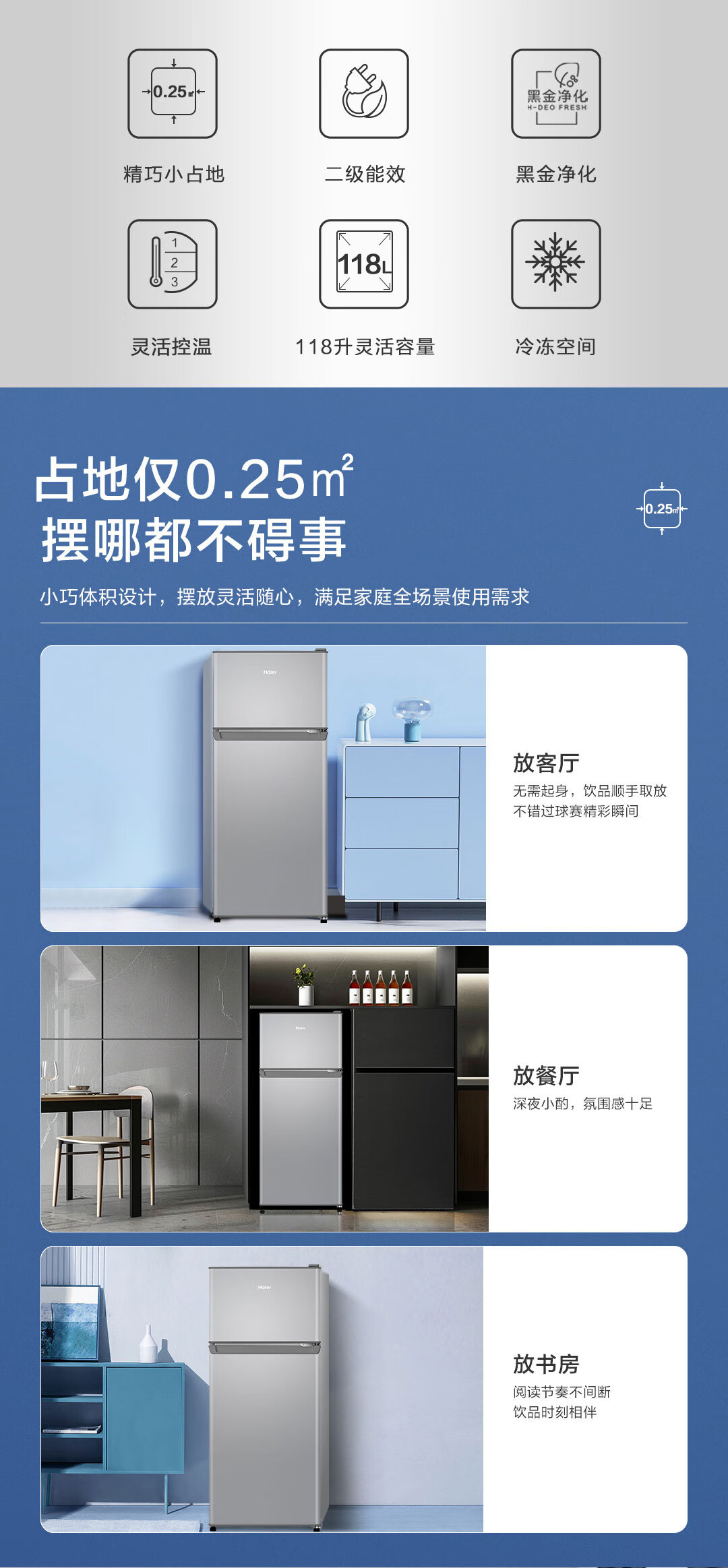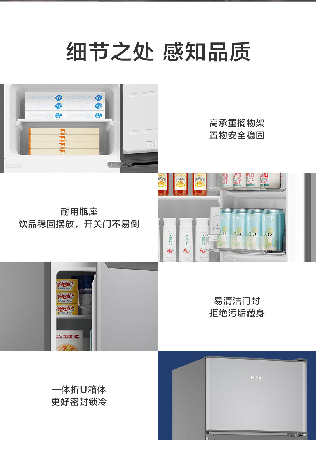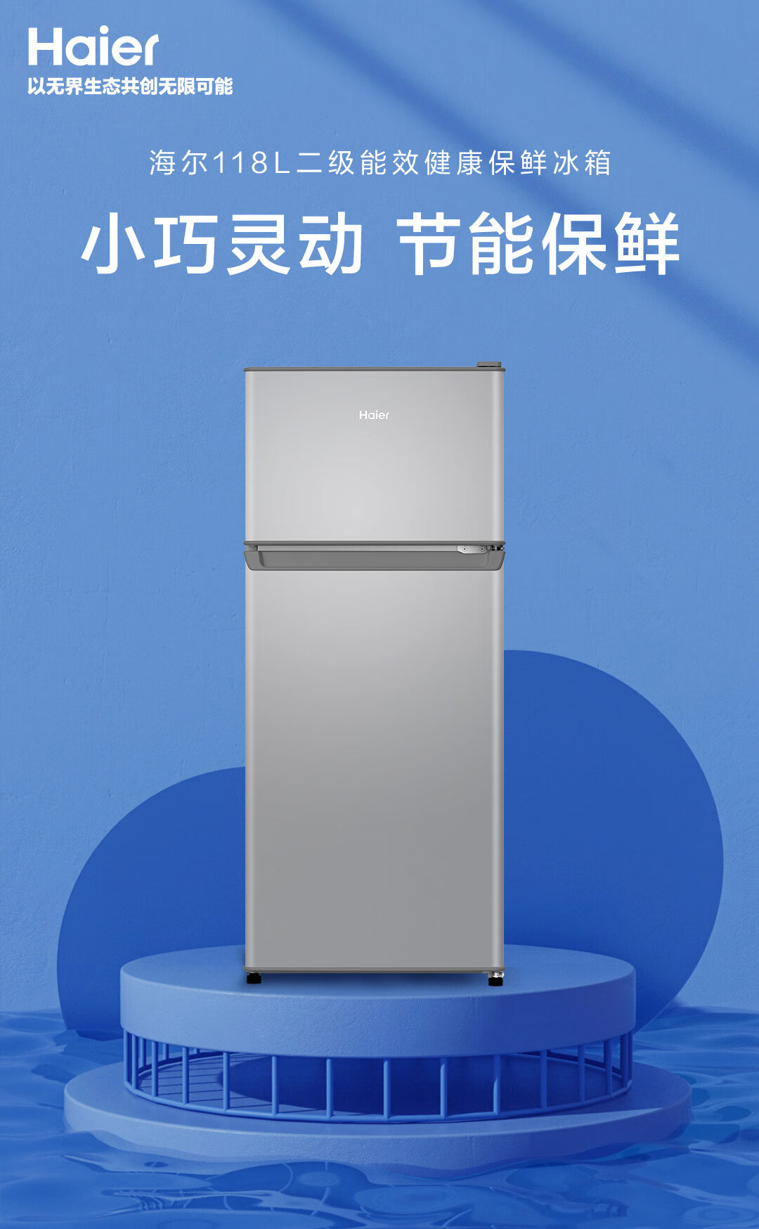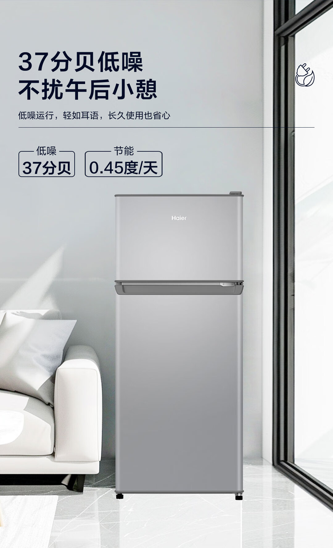 海尔(Haier)冰箱小型双开门家用小冰箱租房用冷藏冷冻两用1-2人118升小户型宿舍二门电冰箱迷你超薄办公室 118升双开门小冰箱