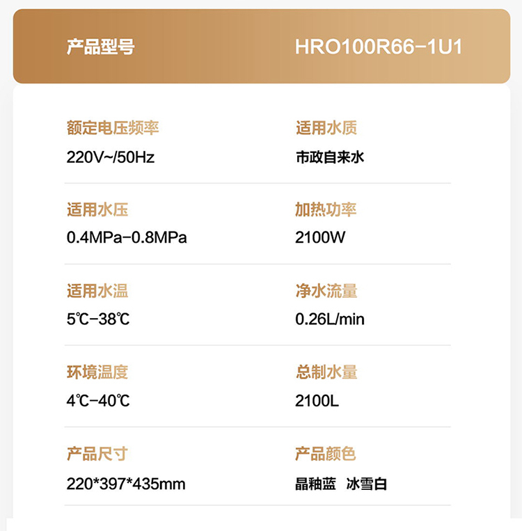 海尔(Haier)净水机 HRO100R66-1U1