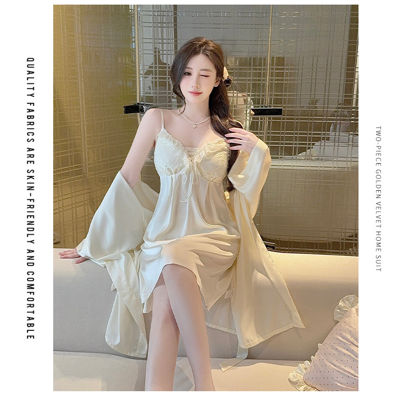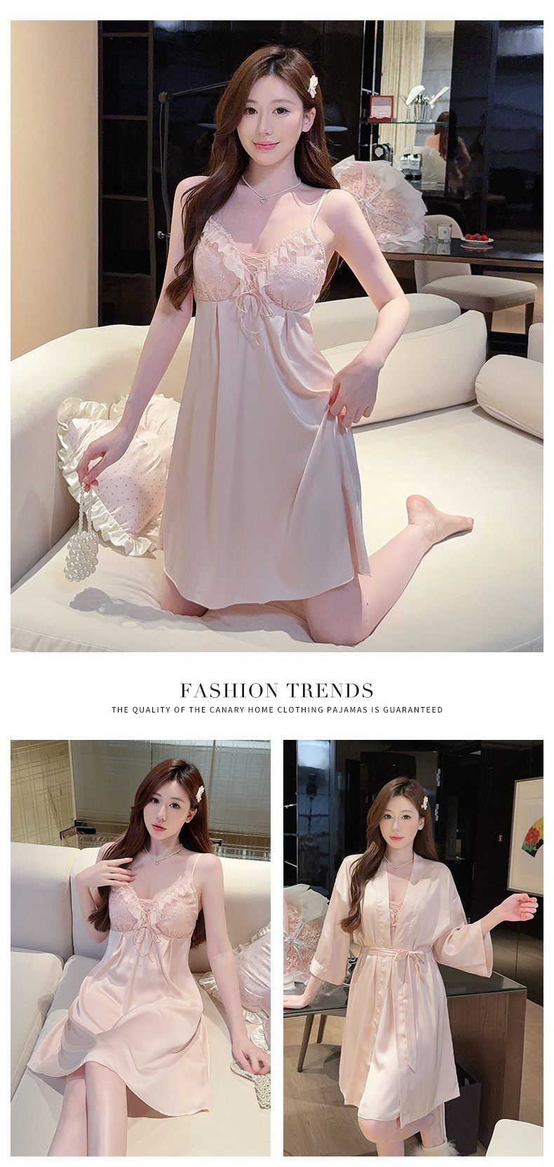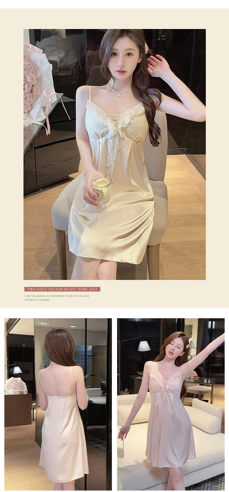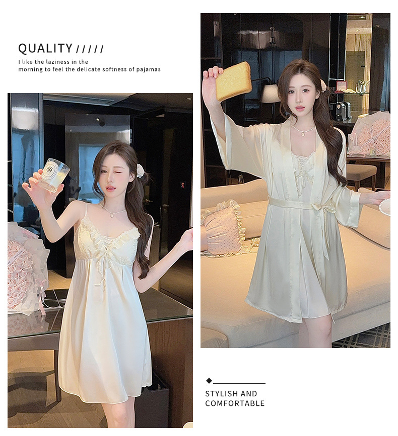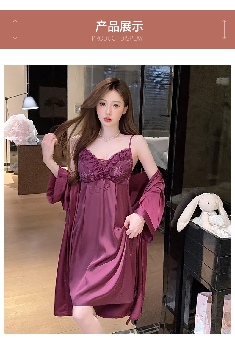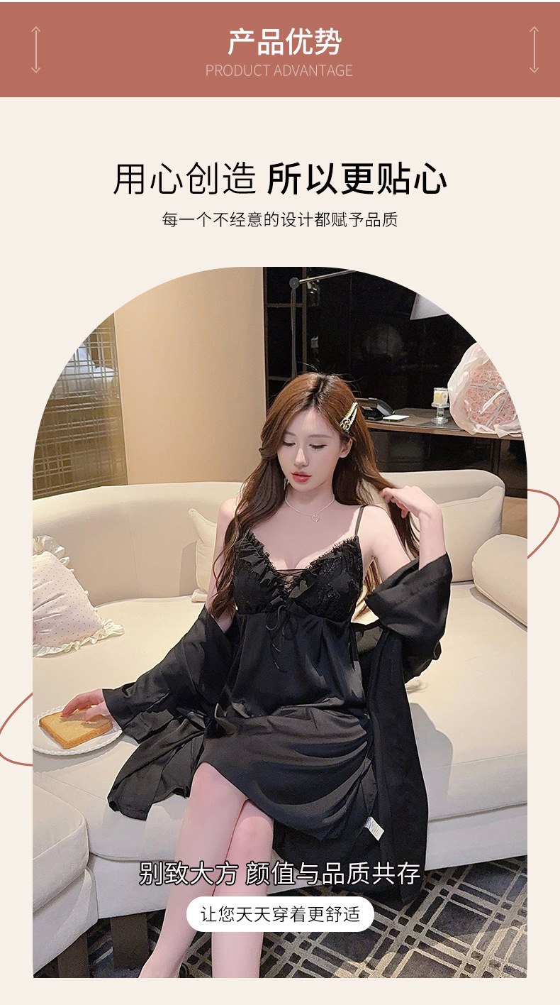 【舒适亲肤!透气不闷汗】夏季性感新款花边轻薄吊带套装家居服冰丝睡衣女睡裙带胸垫套装。xb