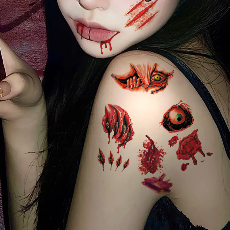【一张不到一块钱!万圣节纹身贴】新款高级感男女逼真恐怖假伤疤刀疤临时纹身万圣节贴纸。rc