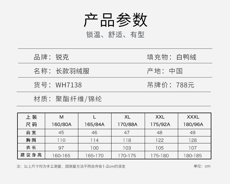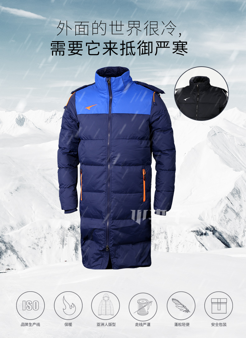 小李子:专柜正品UCAN/锐克足球运动休闲保暖羽绒长款大衣WH7138