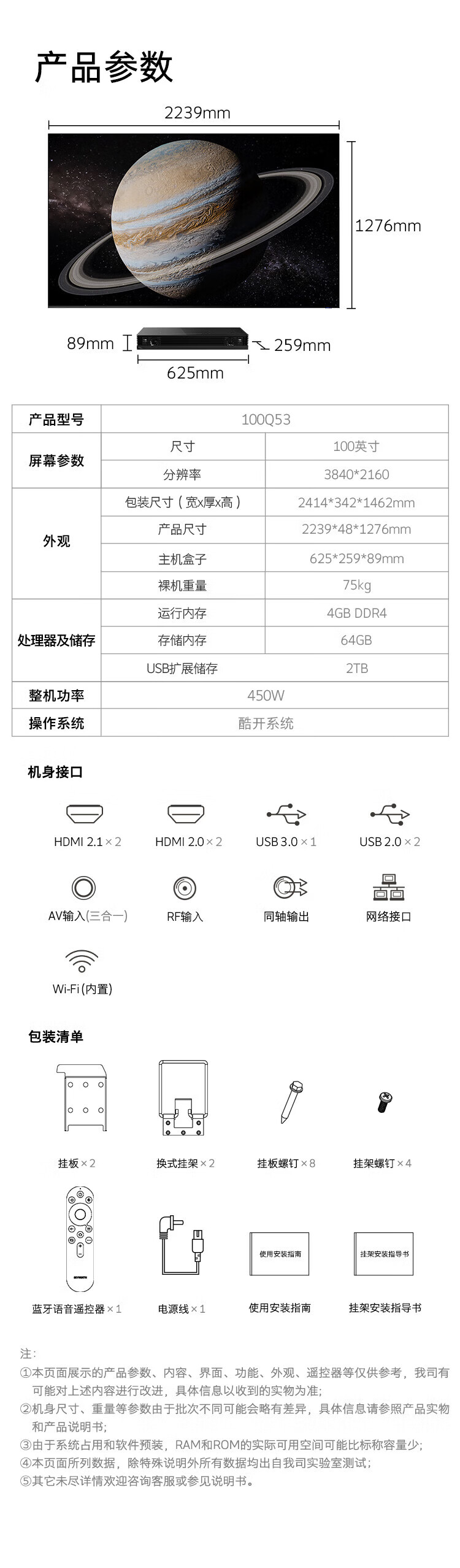 创维(Skyworth)壁纸电视100Q53 100英寸薄无缝贴墙 独立主机 4K高清艺术液晶电视机 壁画电视 艺术电视 100 98 100英寸
