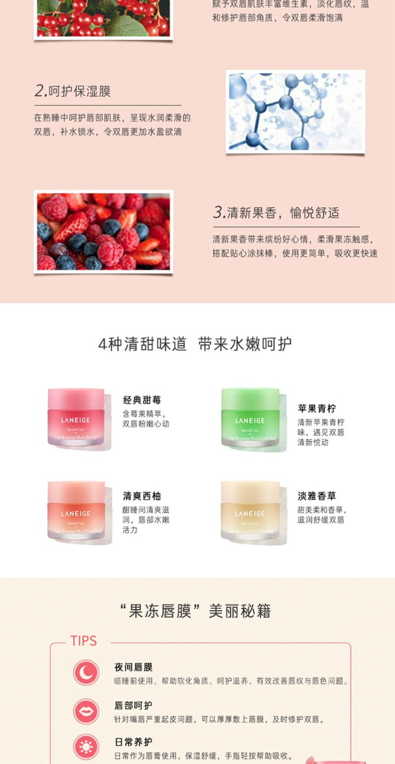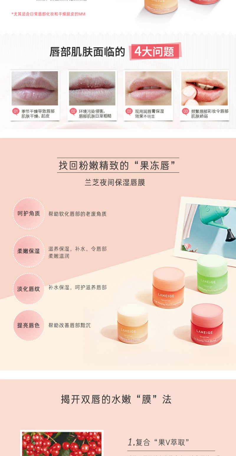 兰芝夜间保湿修护唇膜20g