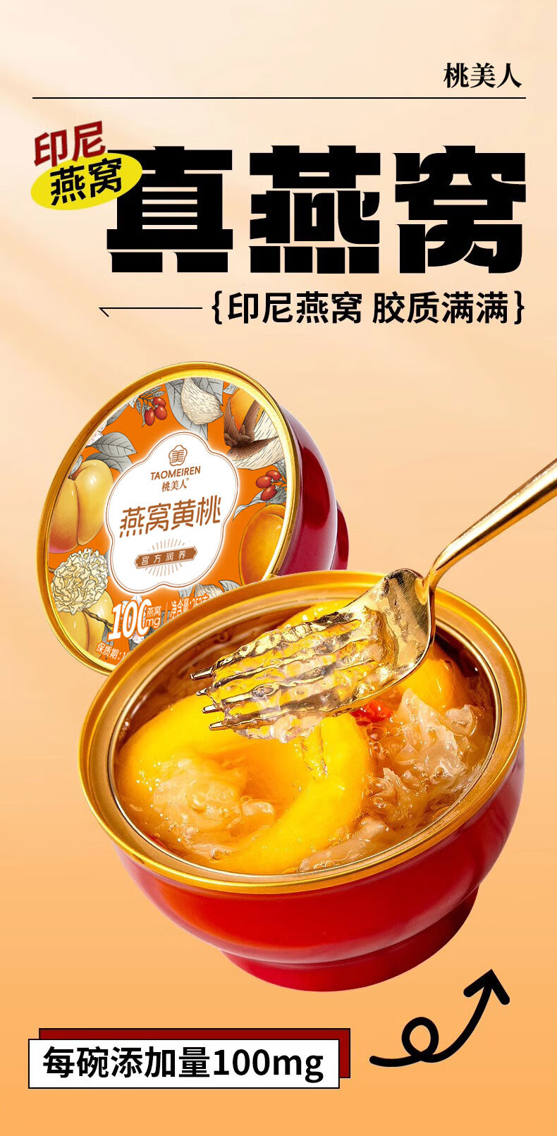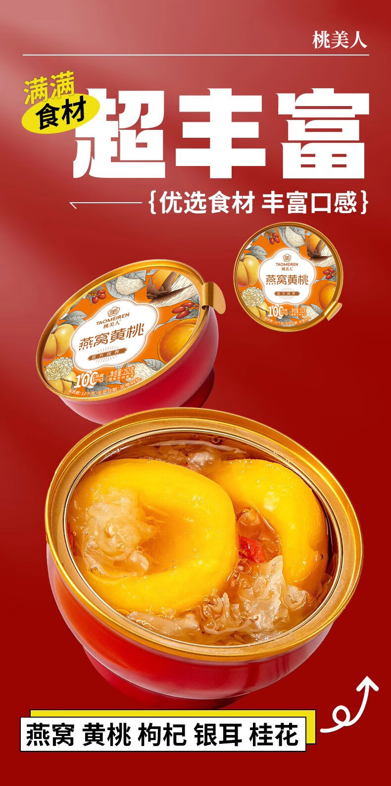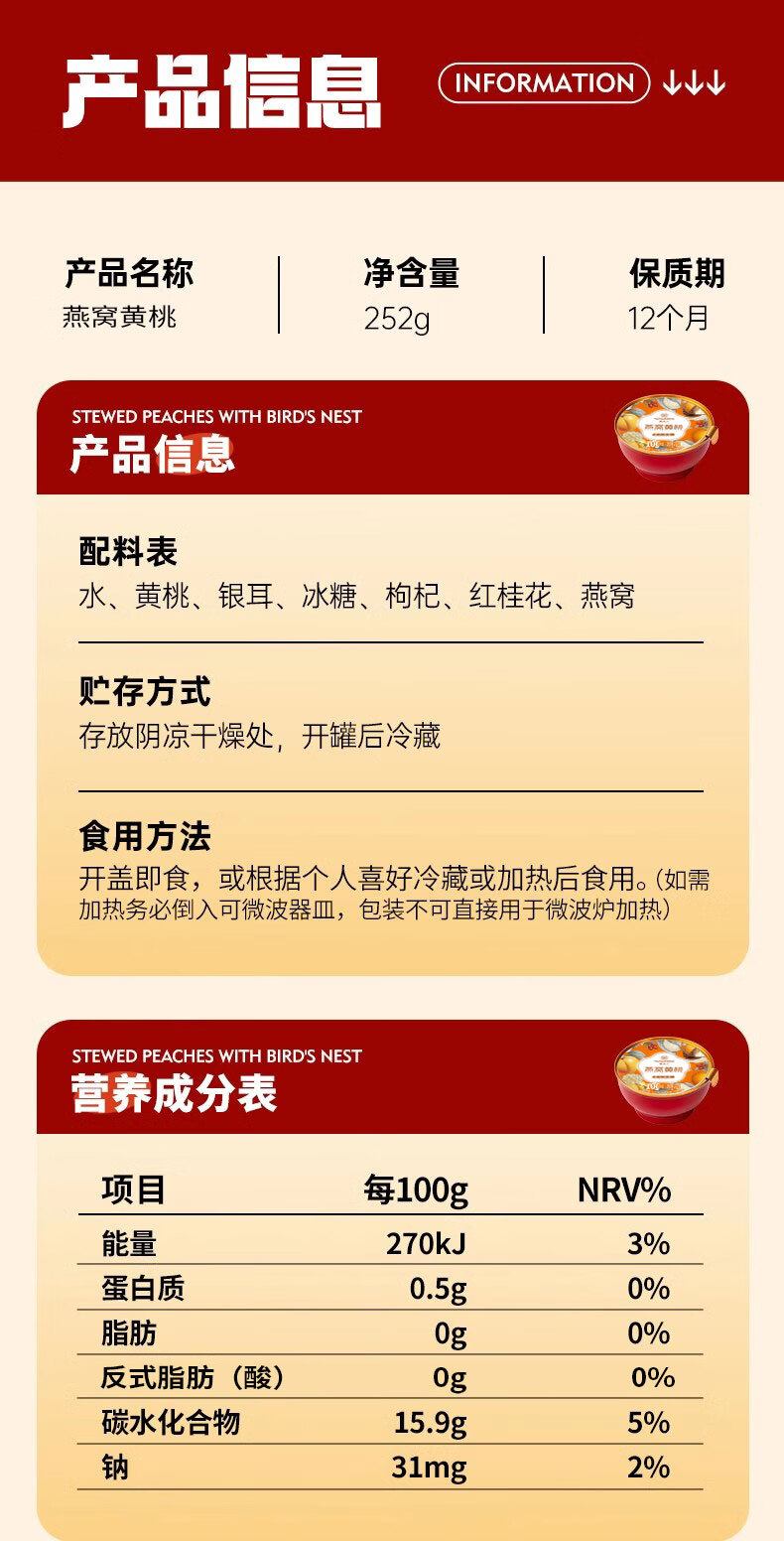 贡梨园桃美人燕窝黄桃礼盒(252g*6碗)