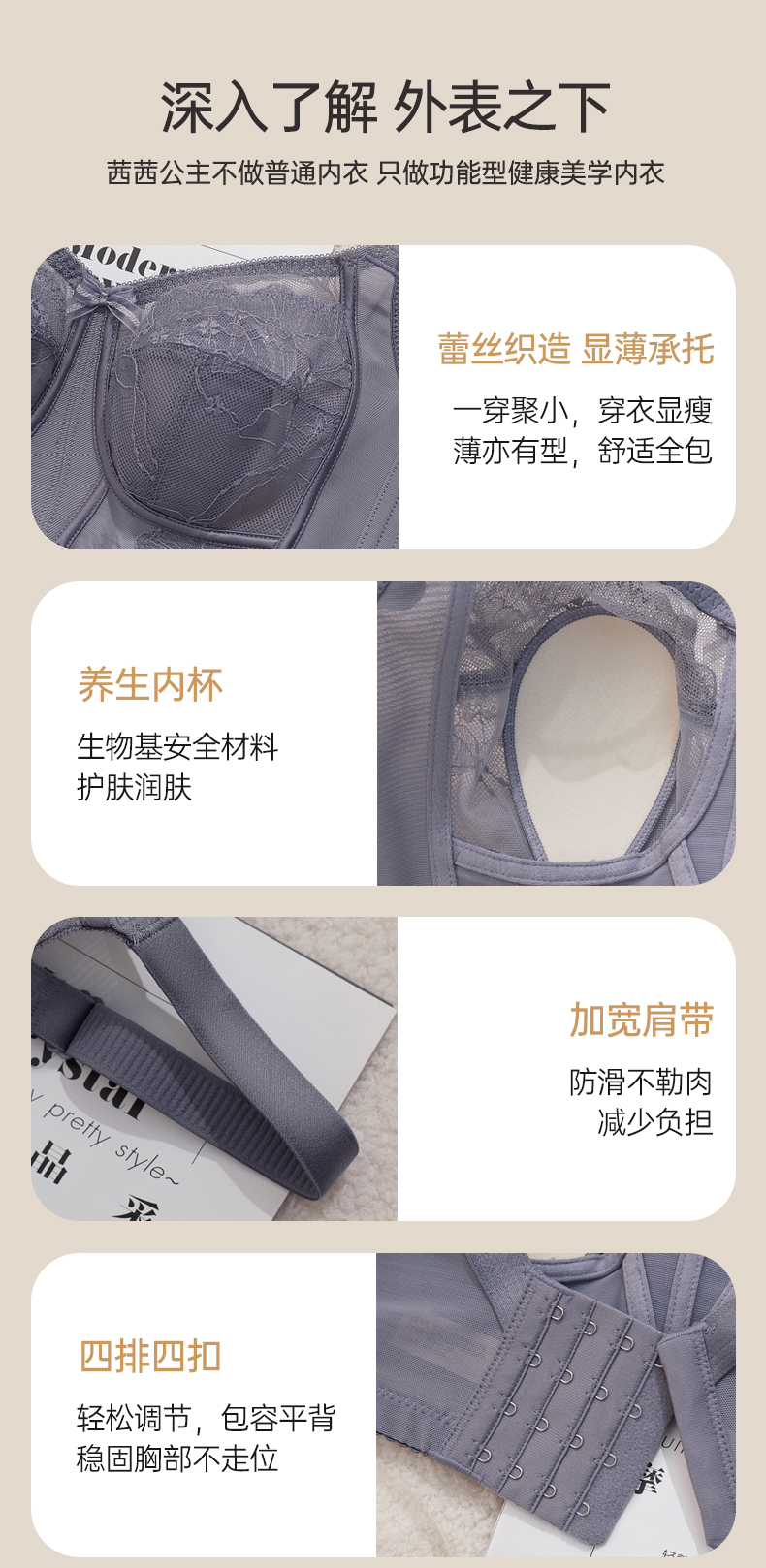 茜茜公主透气上托聚拢文胸侧收副乳防下垂蕾丝胸罩软 精油杯 无圈内衣 芙蓉千金精油杯调整型文胸