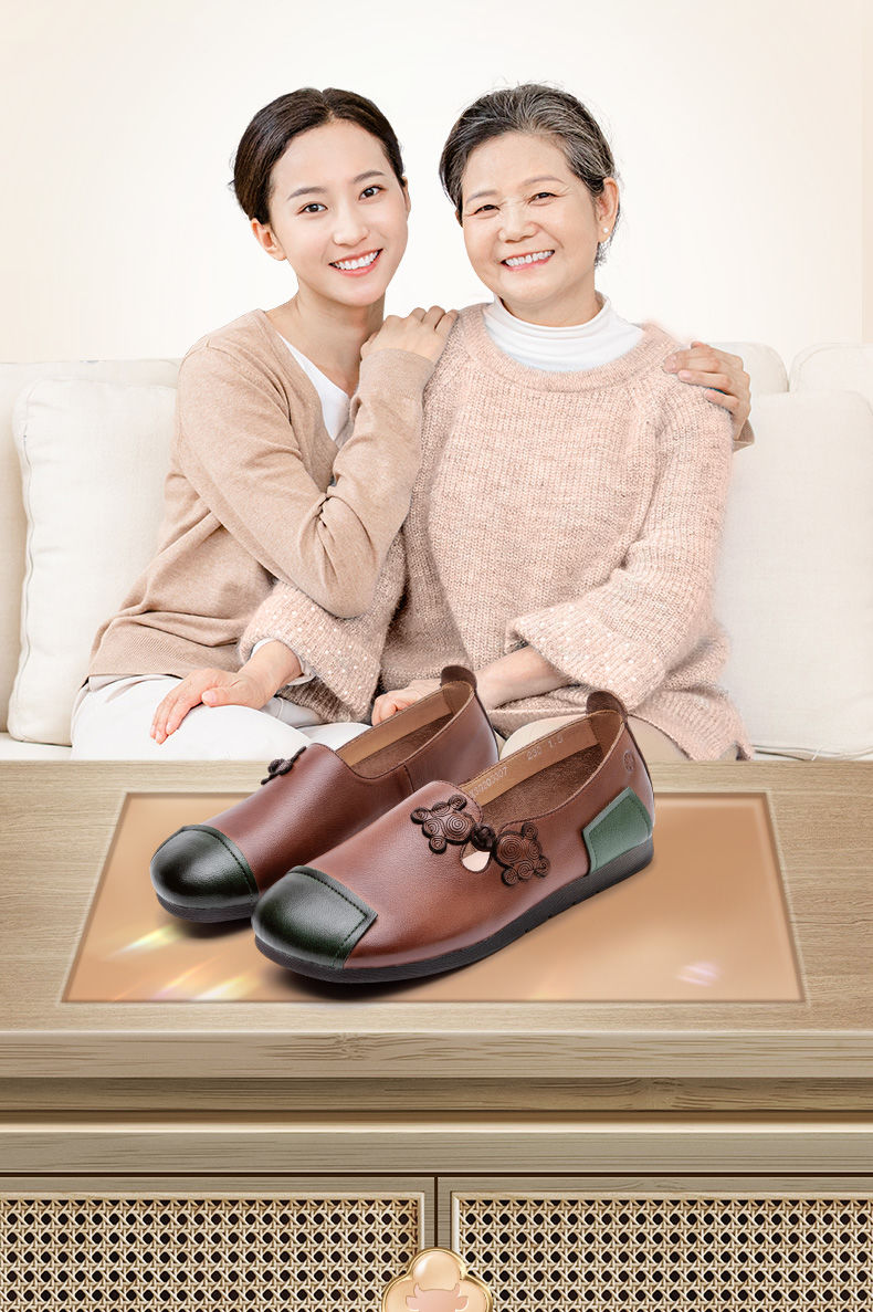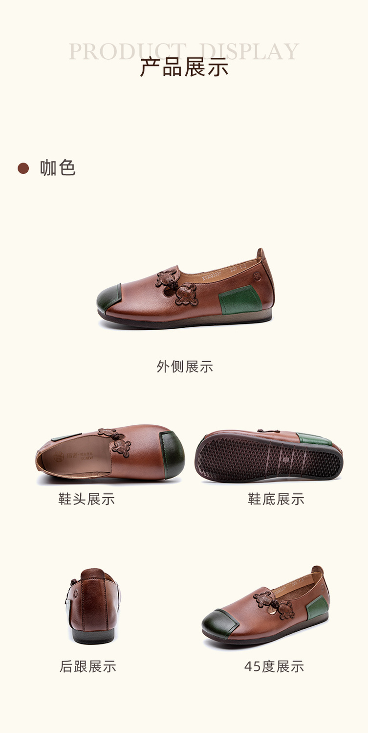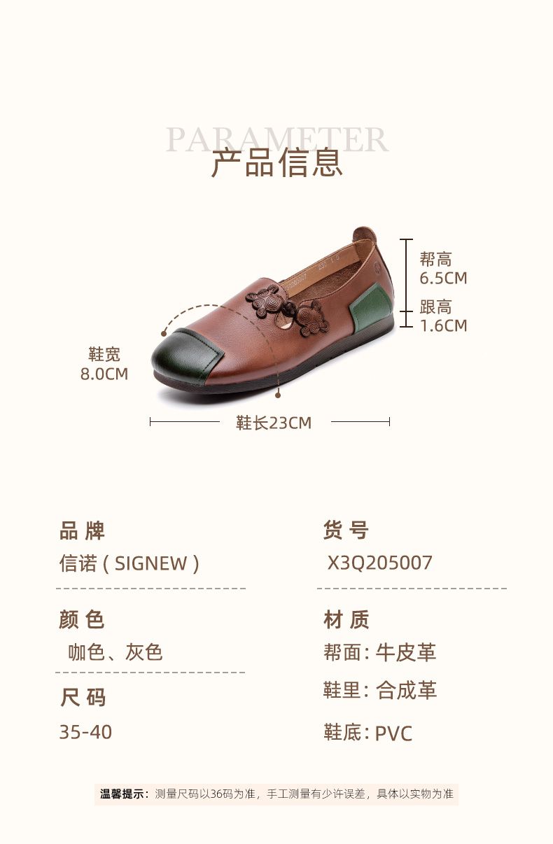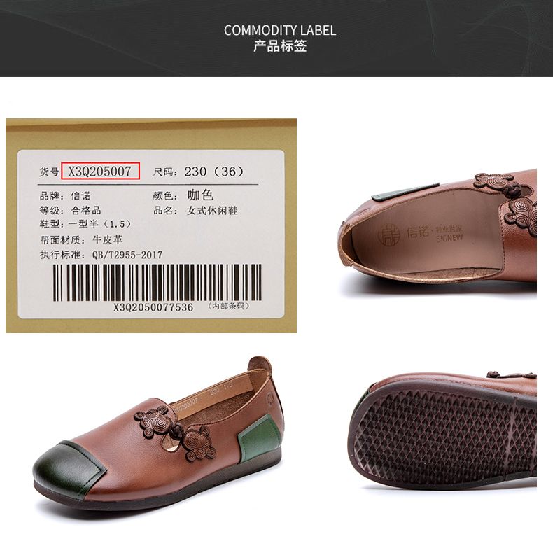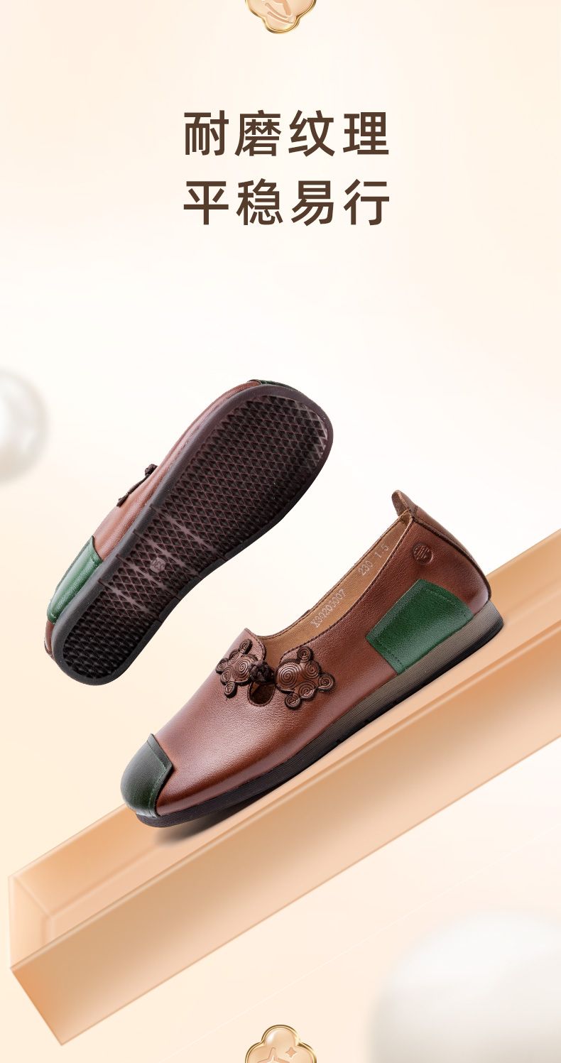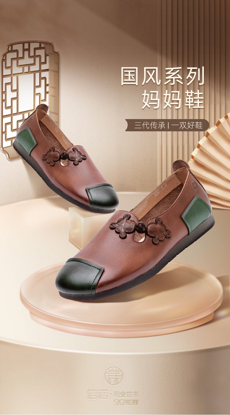 信诺妈妈鞋中老年舒适软底真皮透气老人鞋防滑平跟女鞋春秋季单鞋X3Q205007