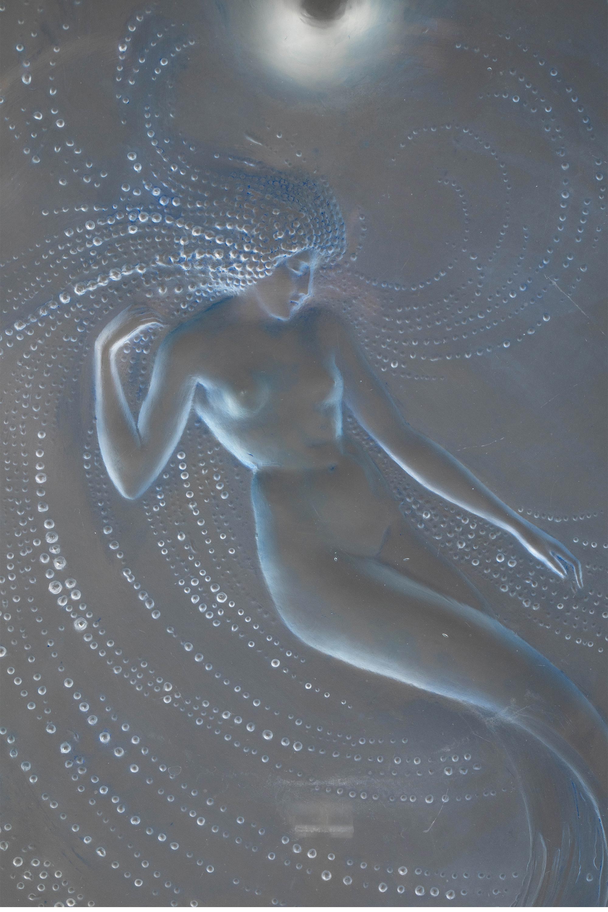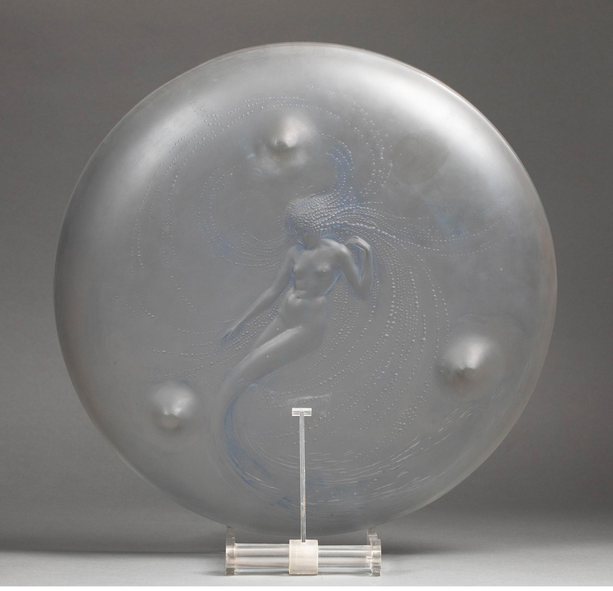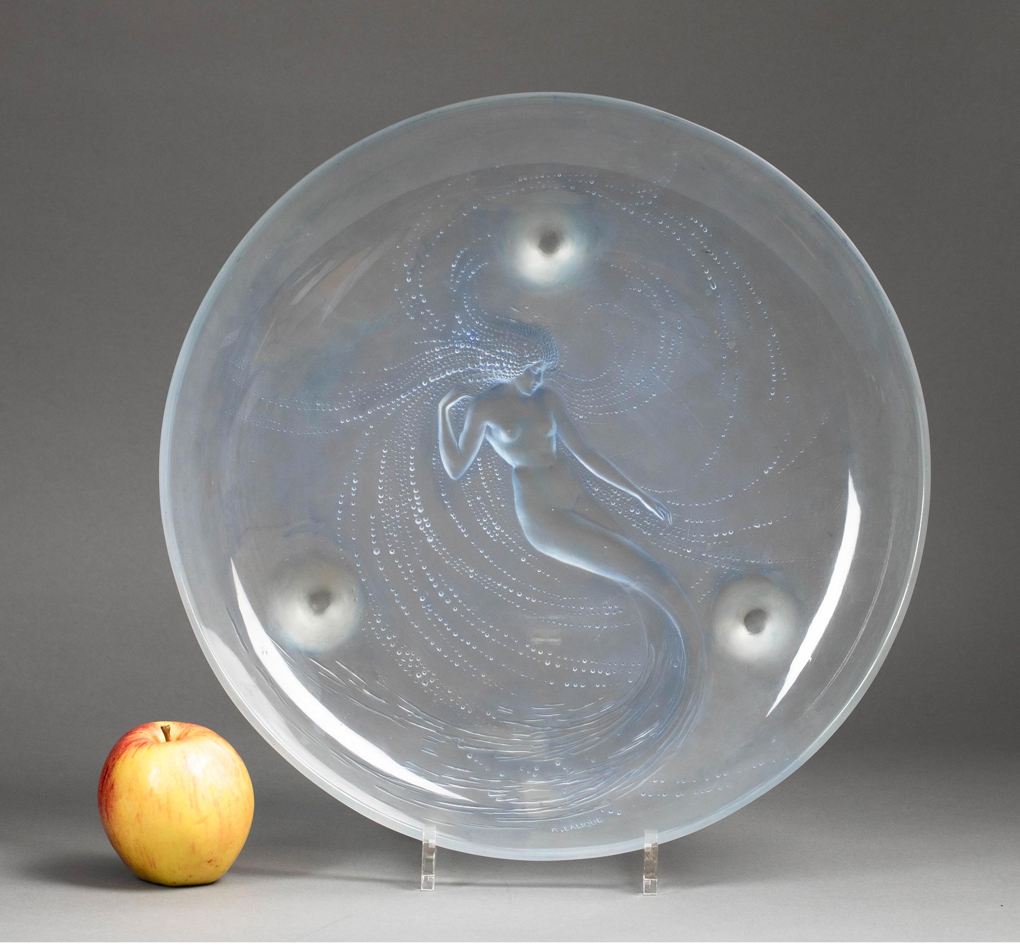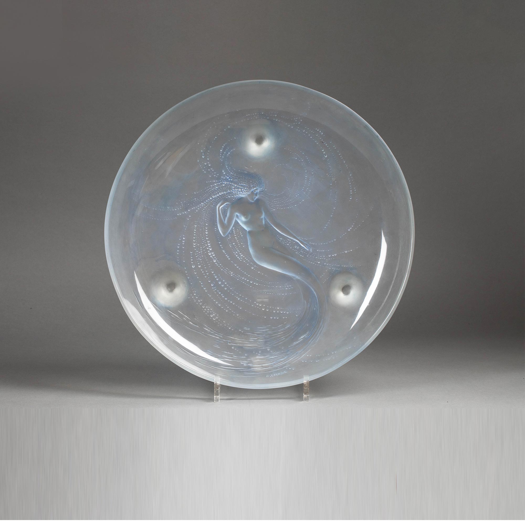 1920年法国水晶工坊莱俪LALIQUE设计出品「Sirene 美人鱼」主题欧泊水晶三足盘