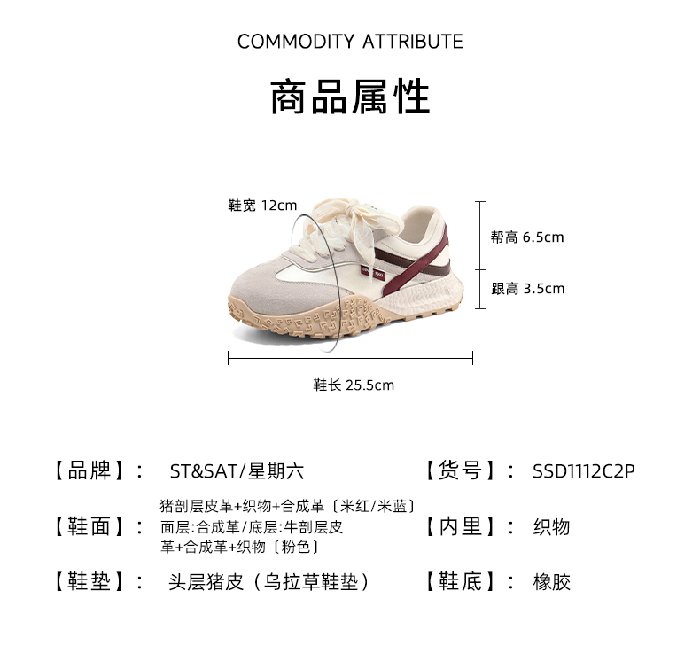 【轻盈脚感】星期六简约撞色舒适百搭厚底德训SSD1112C2P