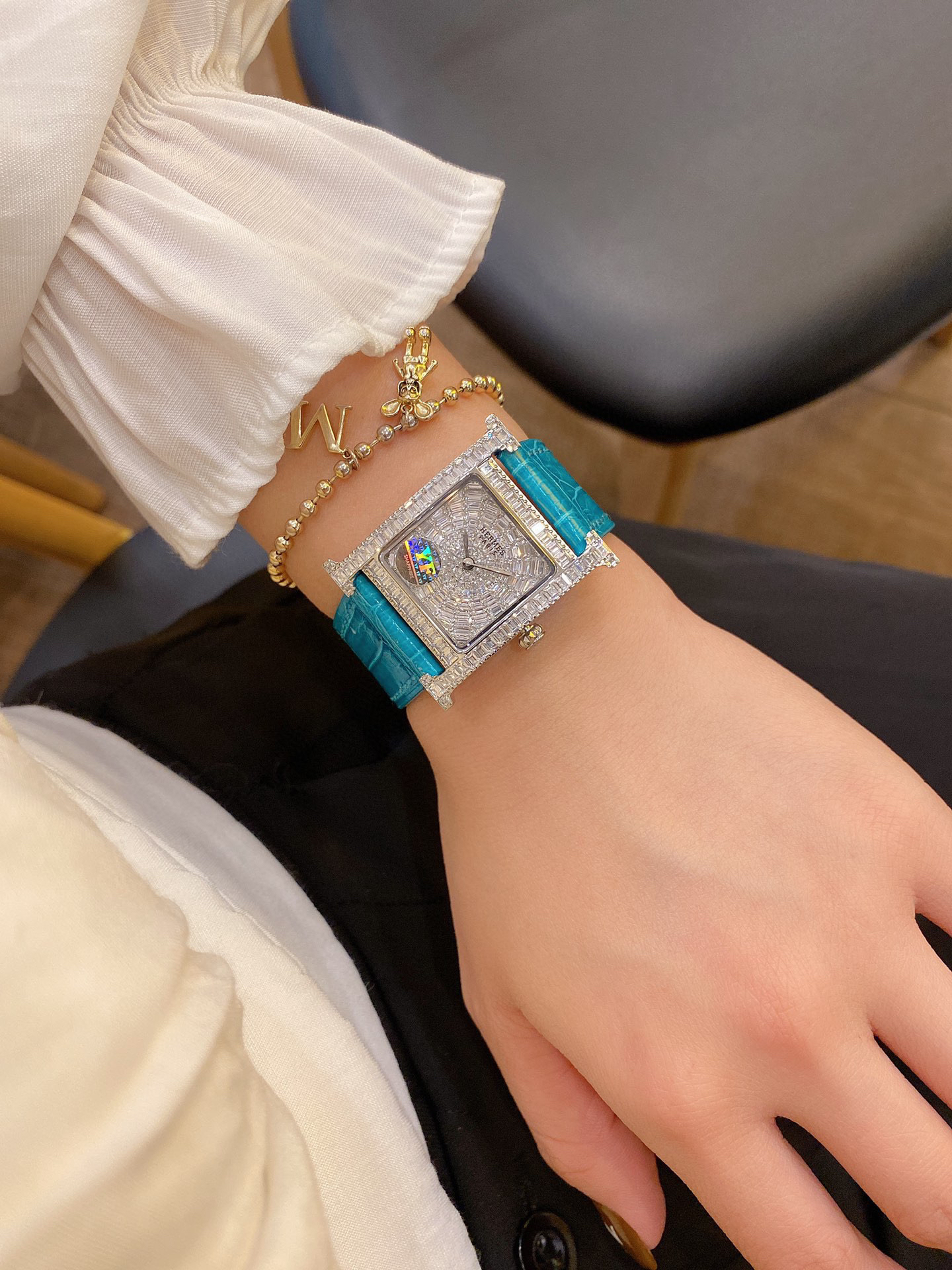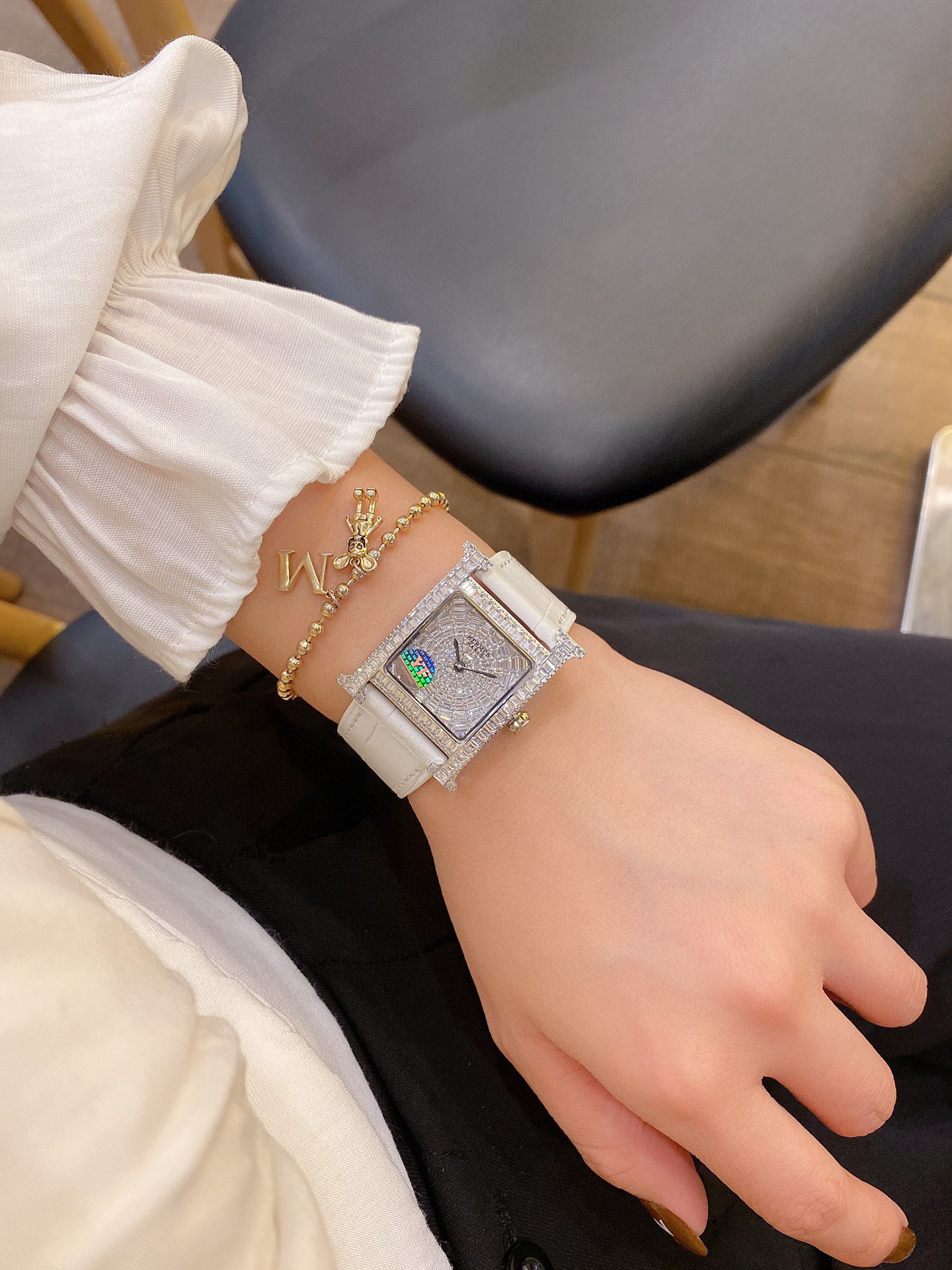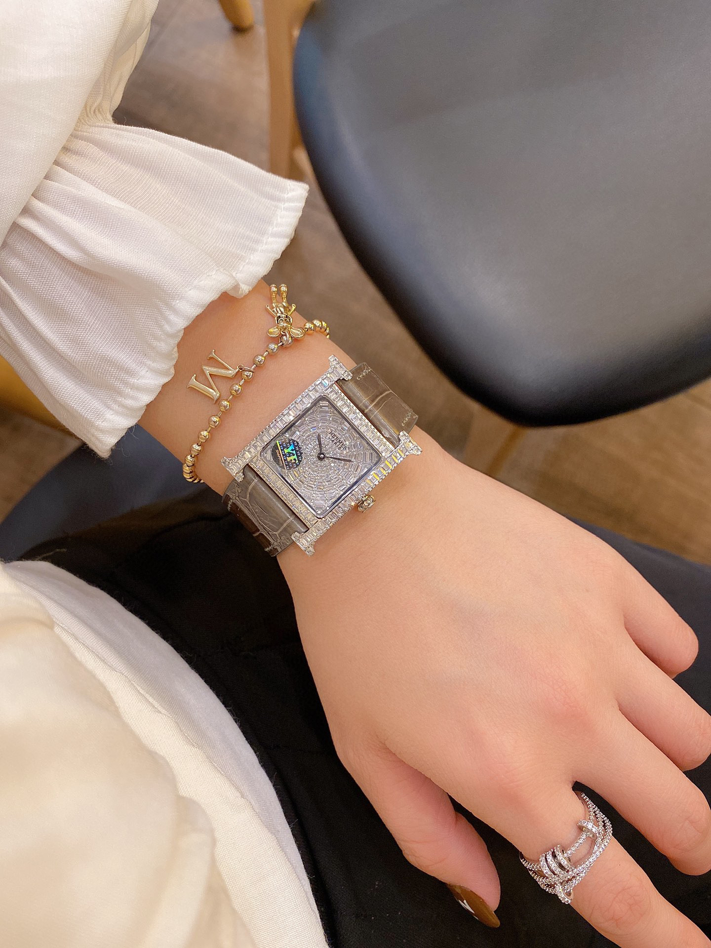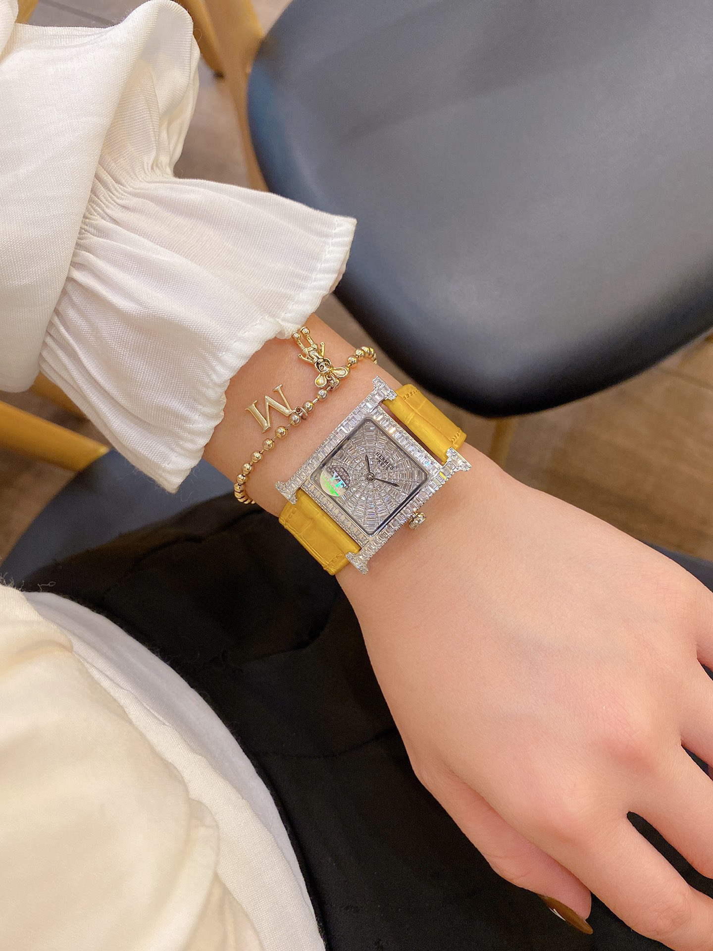 新款Hermes爱马仕H-our系列 方钻珠宝女士腕表 壳套、字面
