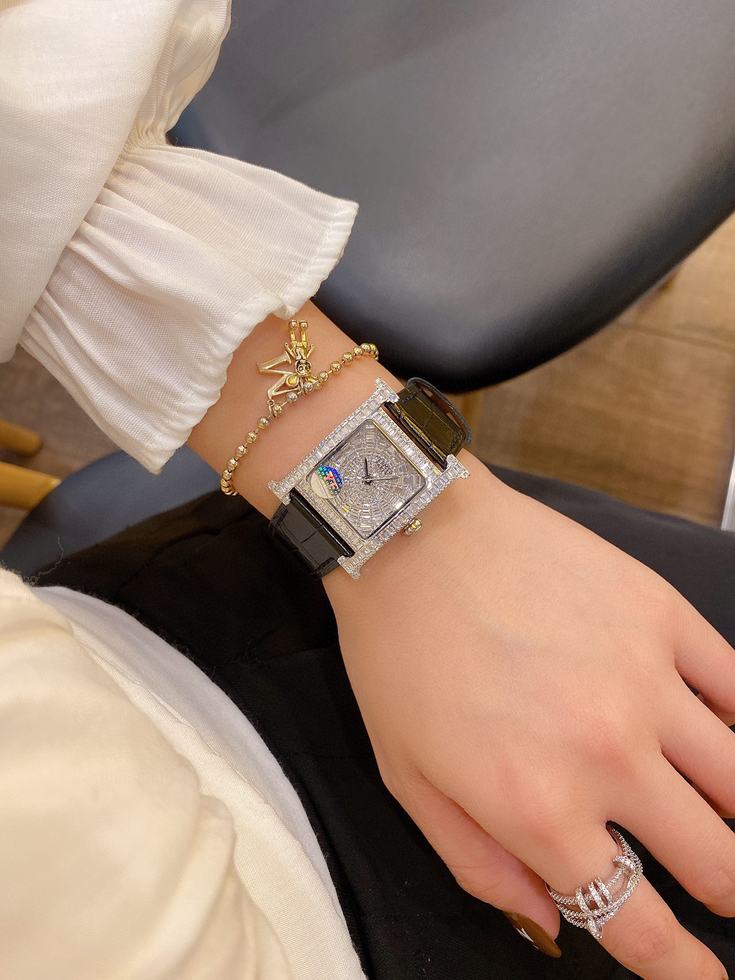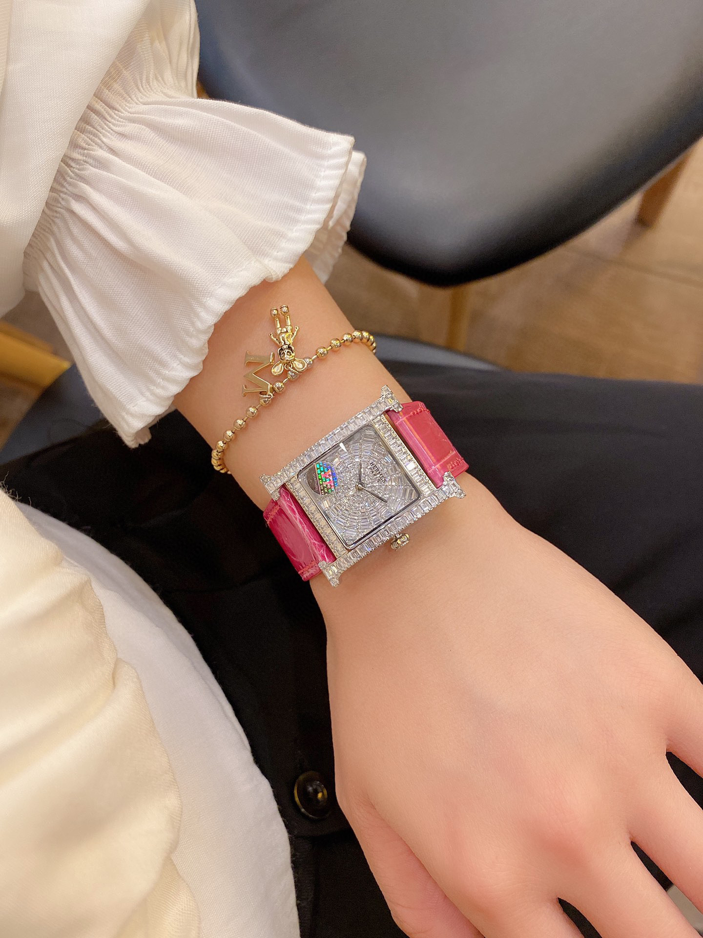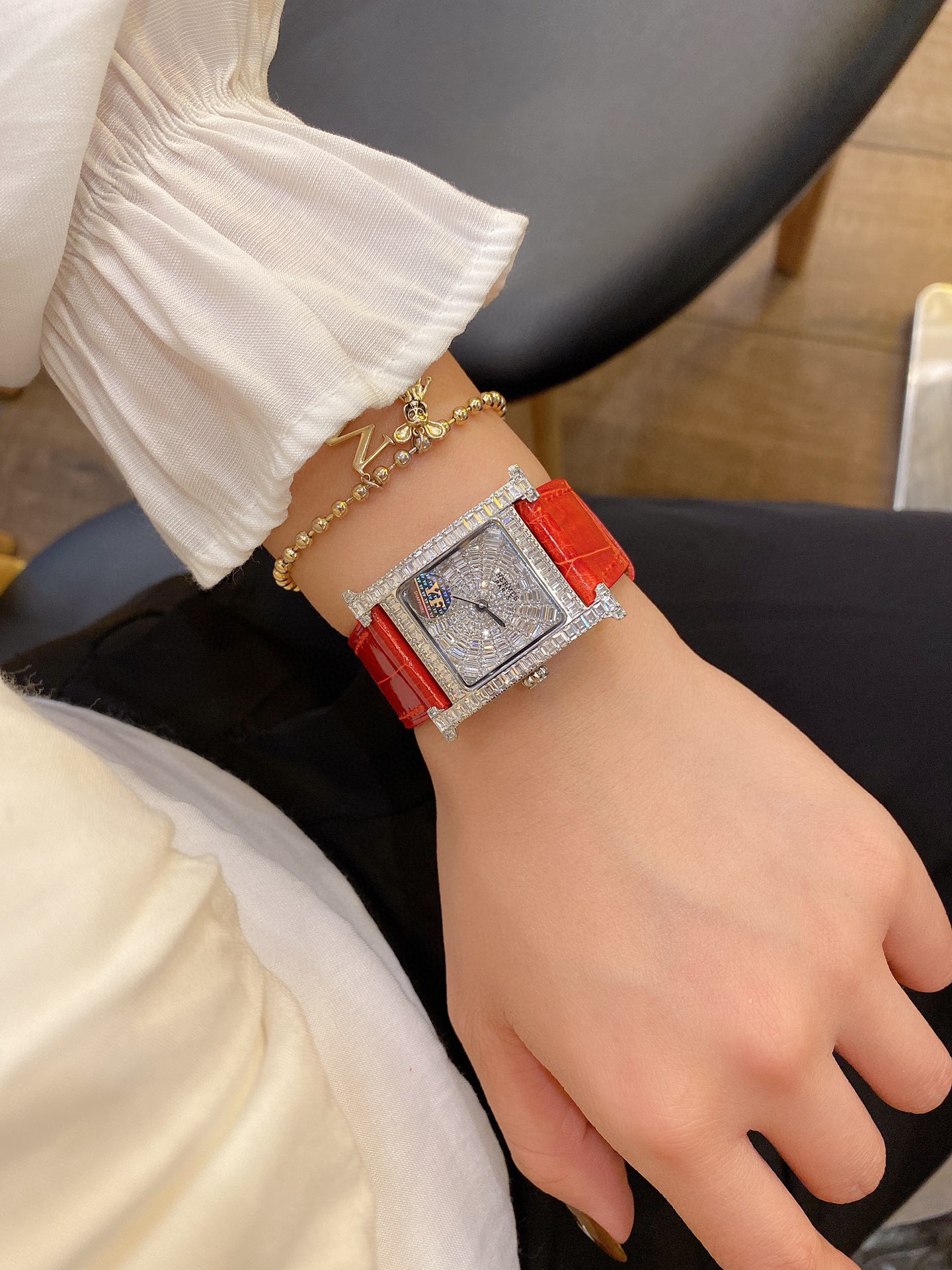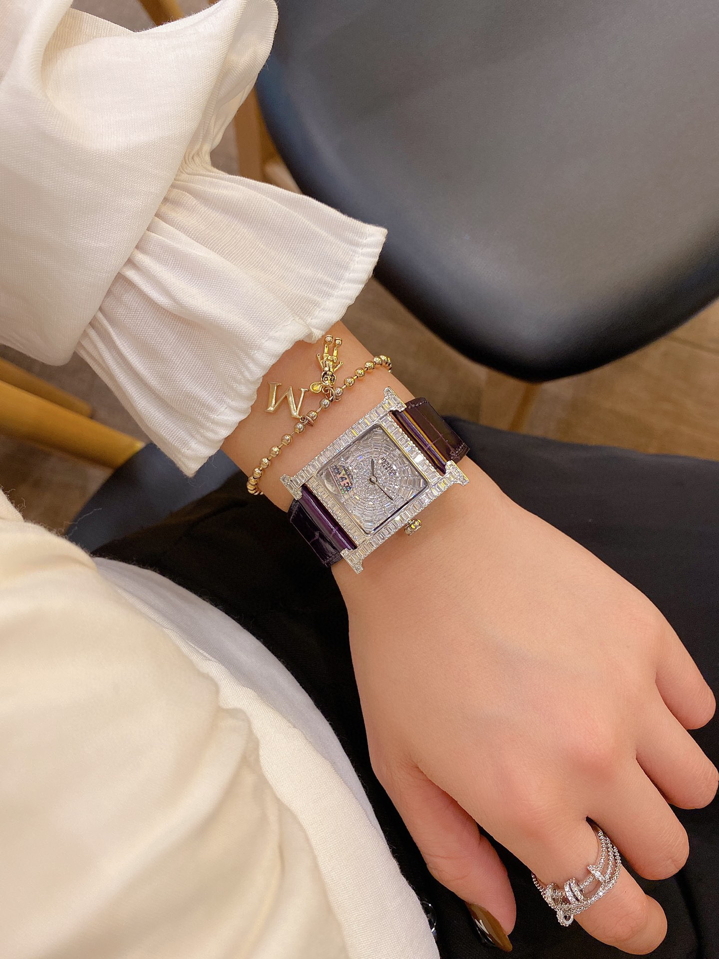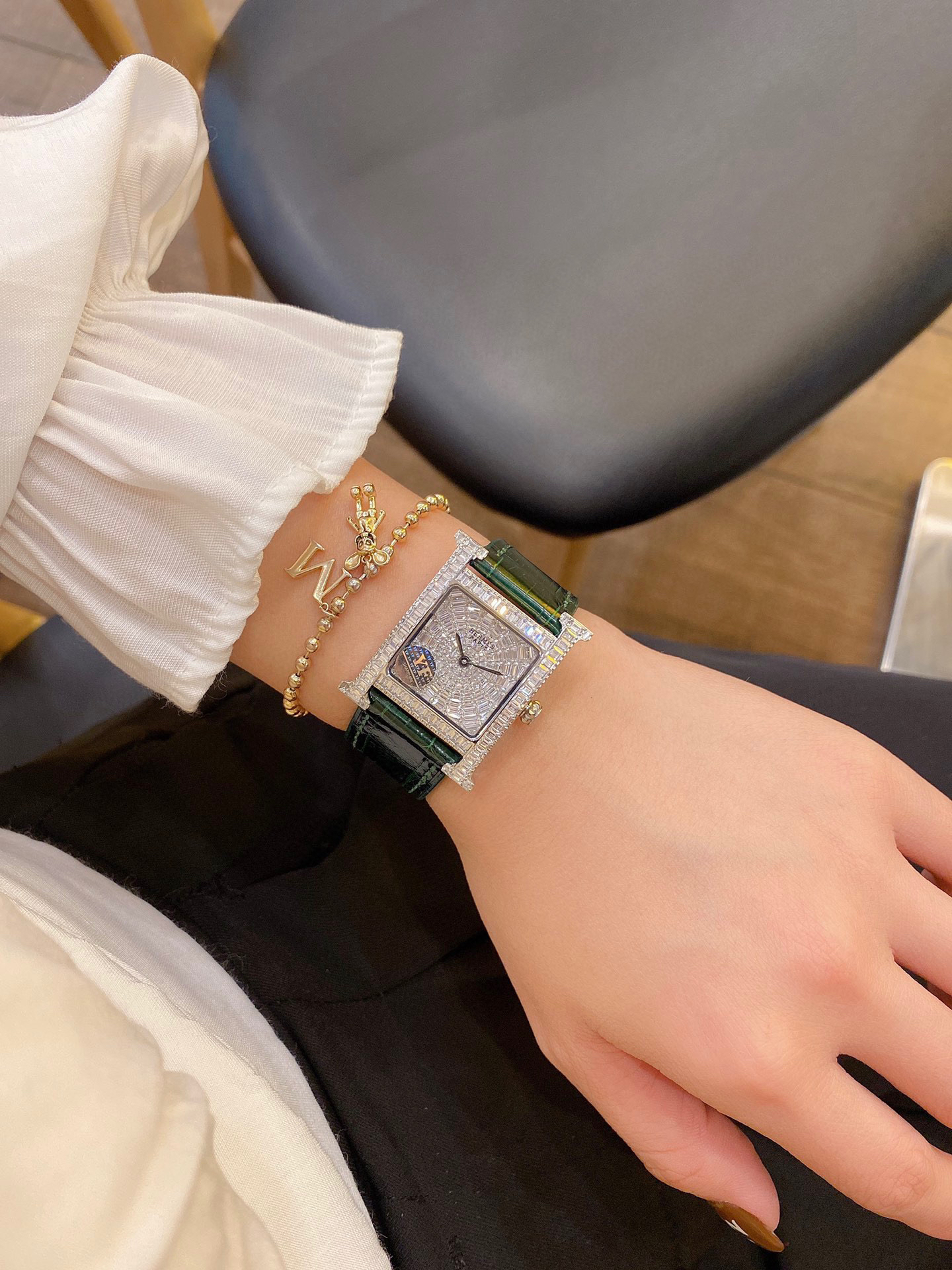 新款Hermes爱马仕H-our系列 方钻珠宝女士腕表 壳套、字面