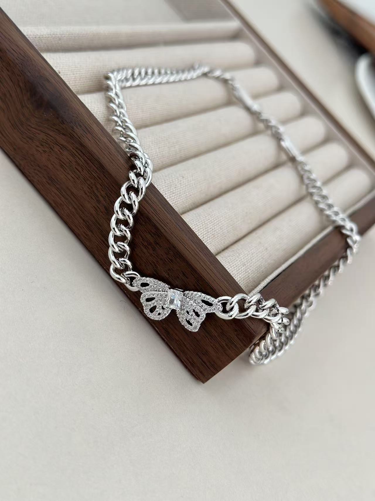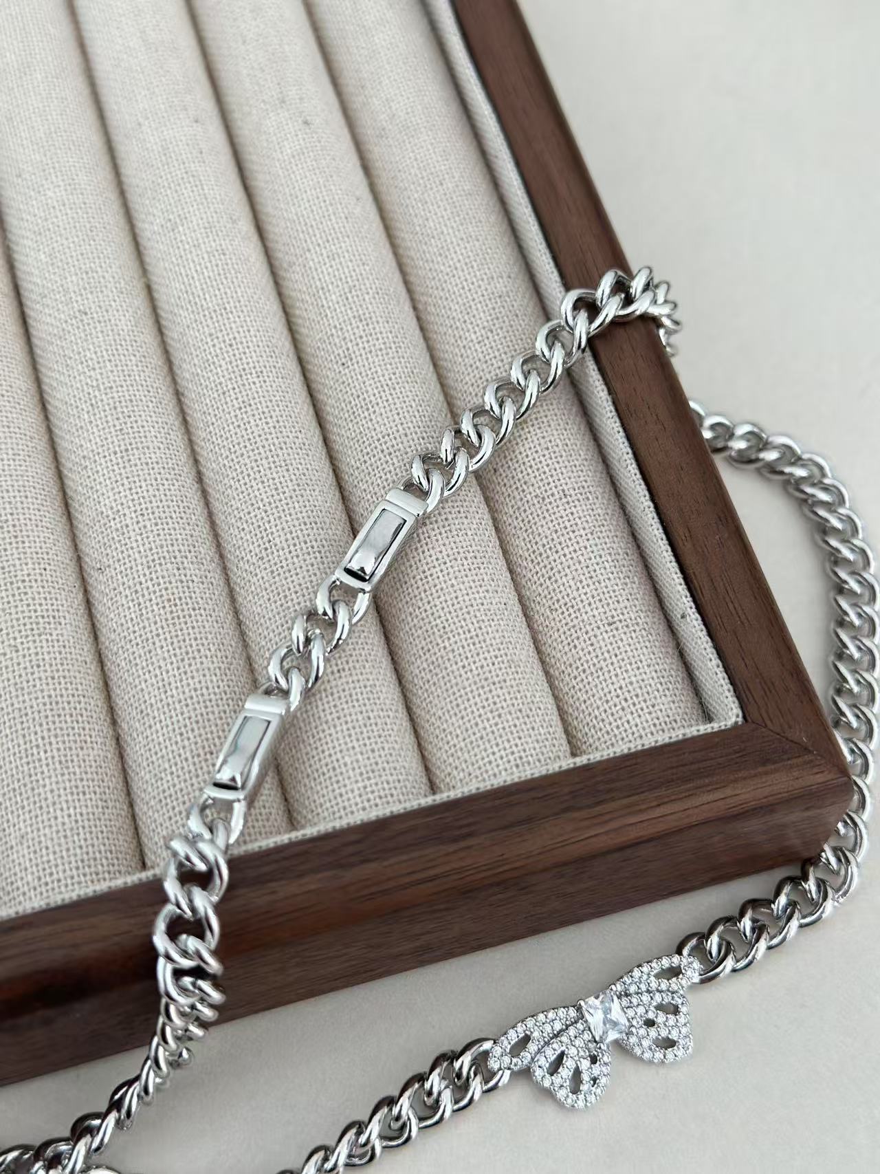 枯叶蝶被称为自然界的伪装艺术家,象征女孩于变幻中保持优雅,设计师打造枯叶蝶项链!镂空雕刻还原枯叶蝶翅脉纹理,中间点缀璀璨方糖石以闪耀细节打破沉闷感,优雅侧身链贴合颈部曲线,形成视觉黄金比例修饰锁骨更显精致!Leasf Butterfly Neaklace定制插片扣设计,可轻松拆合且稳固,让佩戴更随心!
