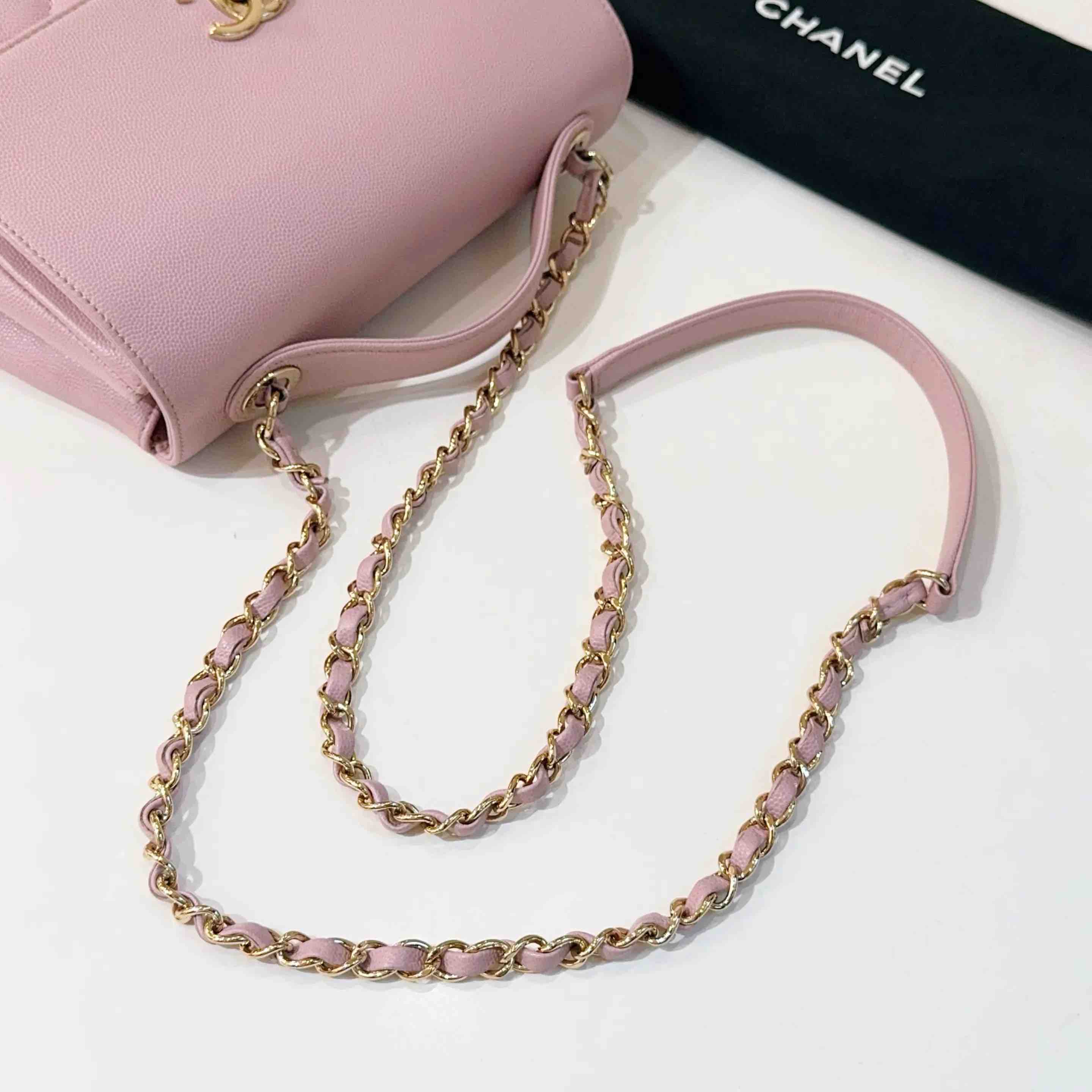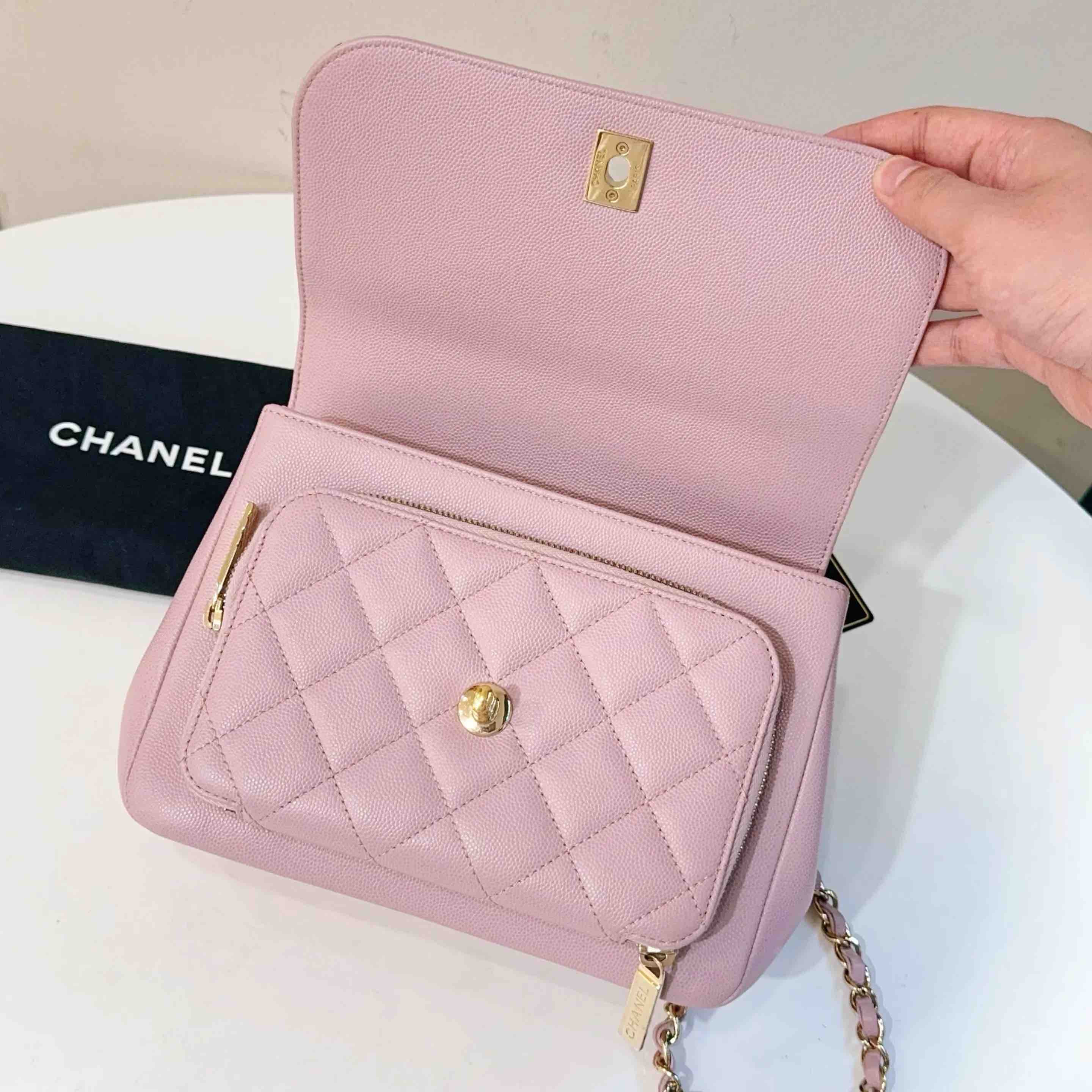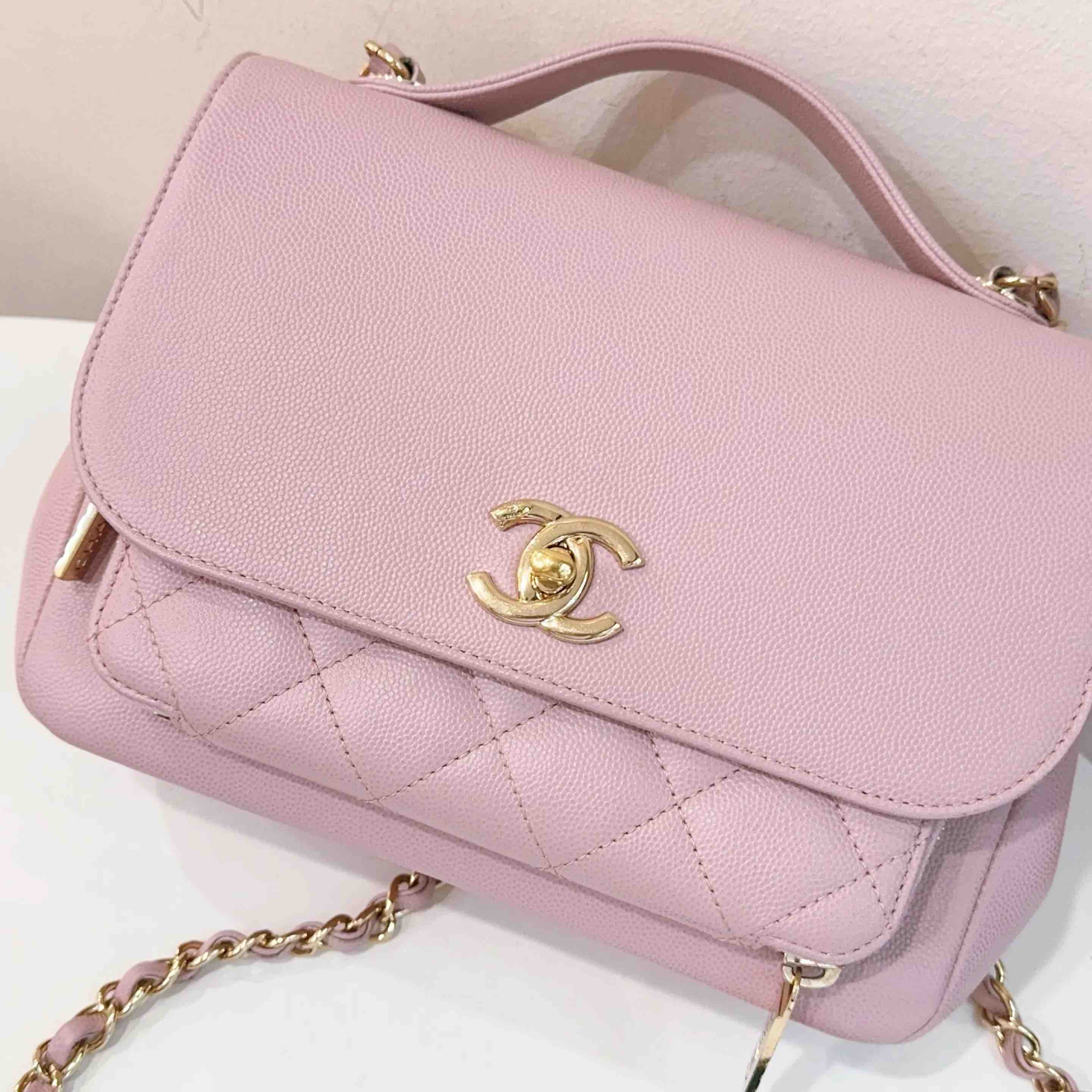 【商品详情】正品二手 chanel business affinity 中号 樱花粉 荔枝纹牛皮 金扣 邮差包😻97新 22×16 镭射24开 配件:卡 防尘袋。
