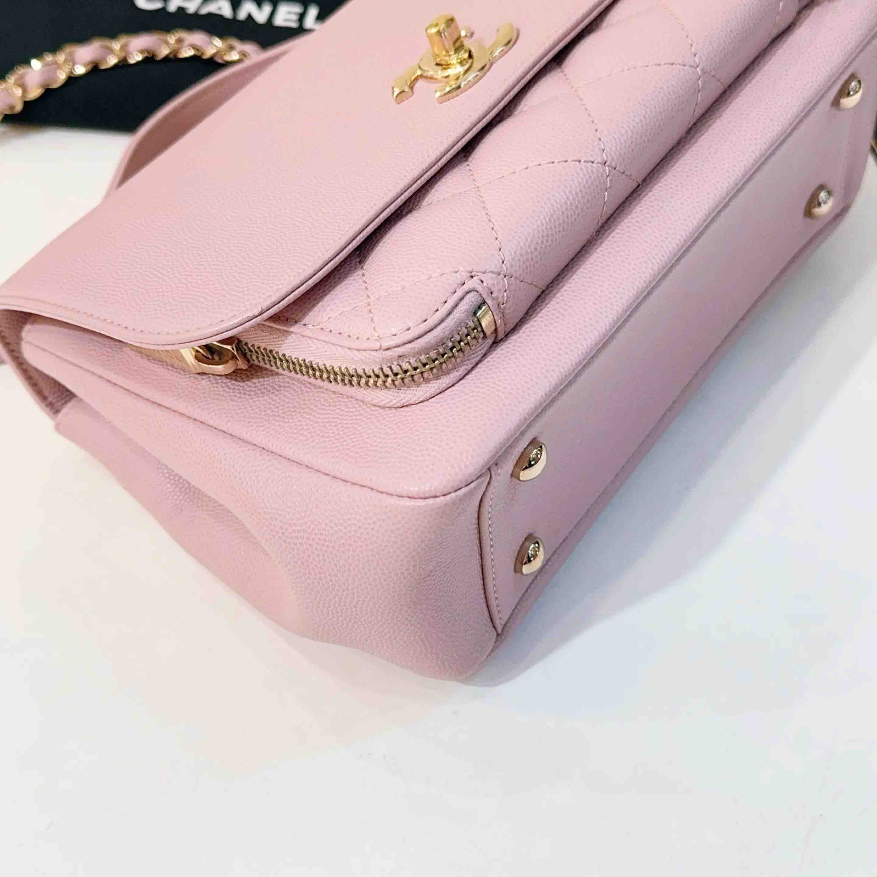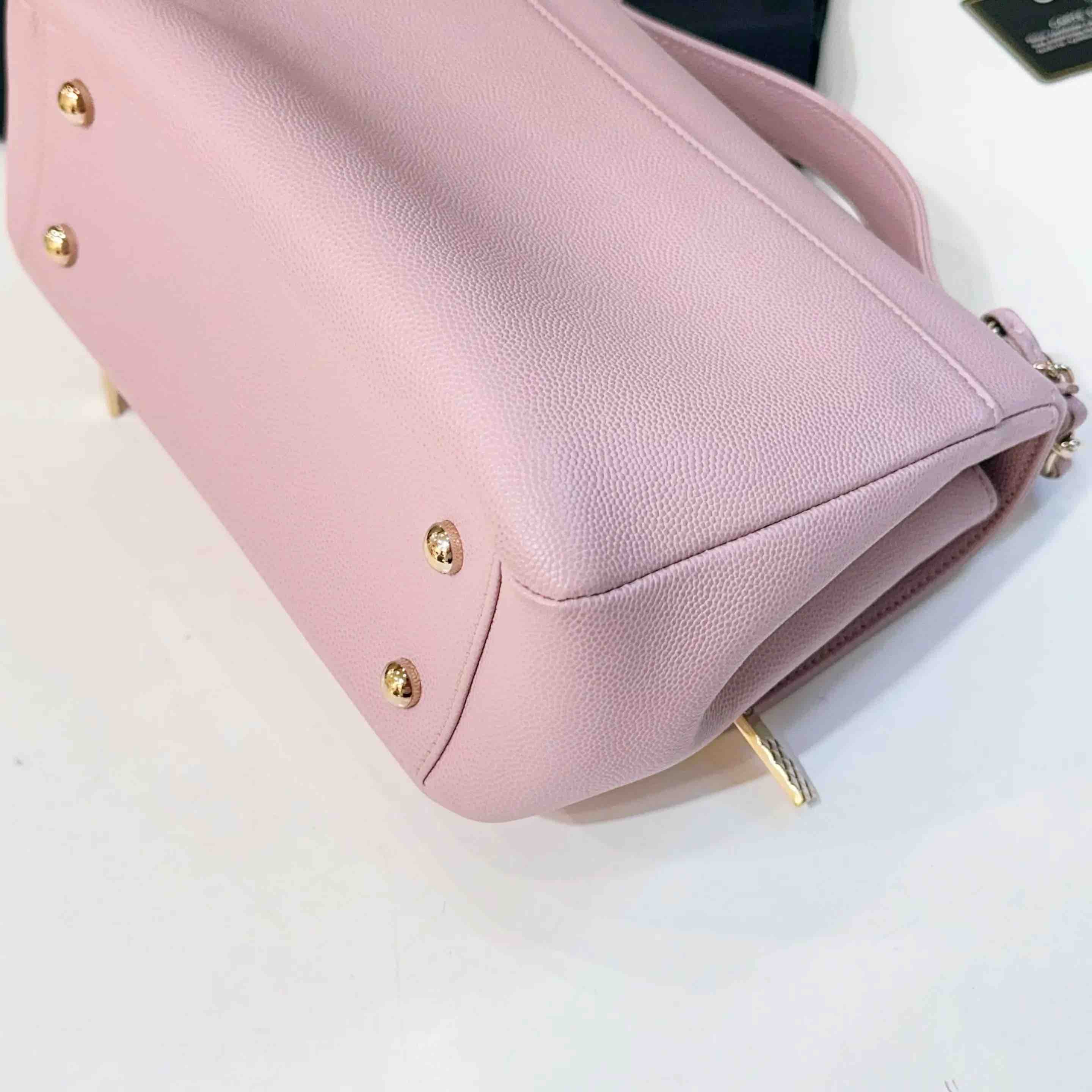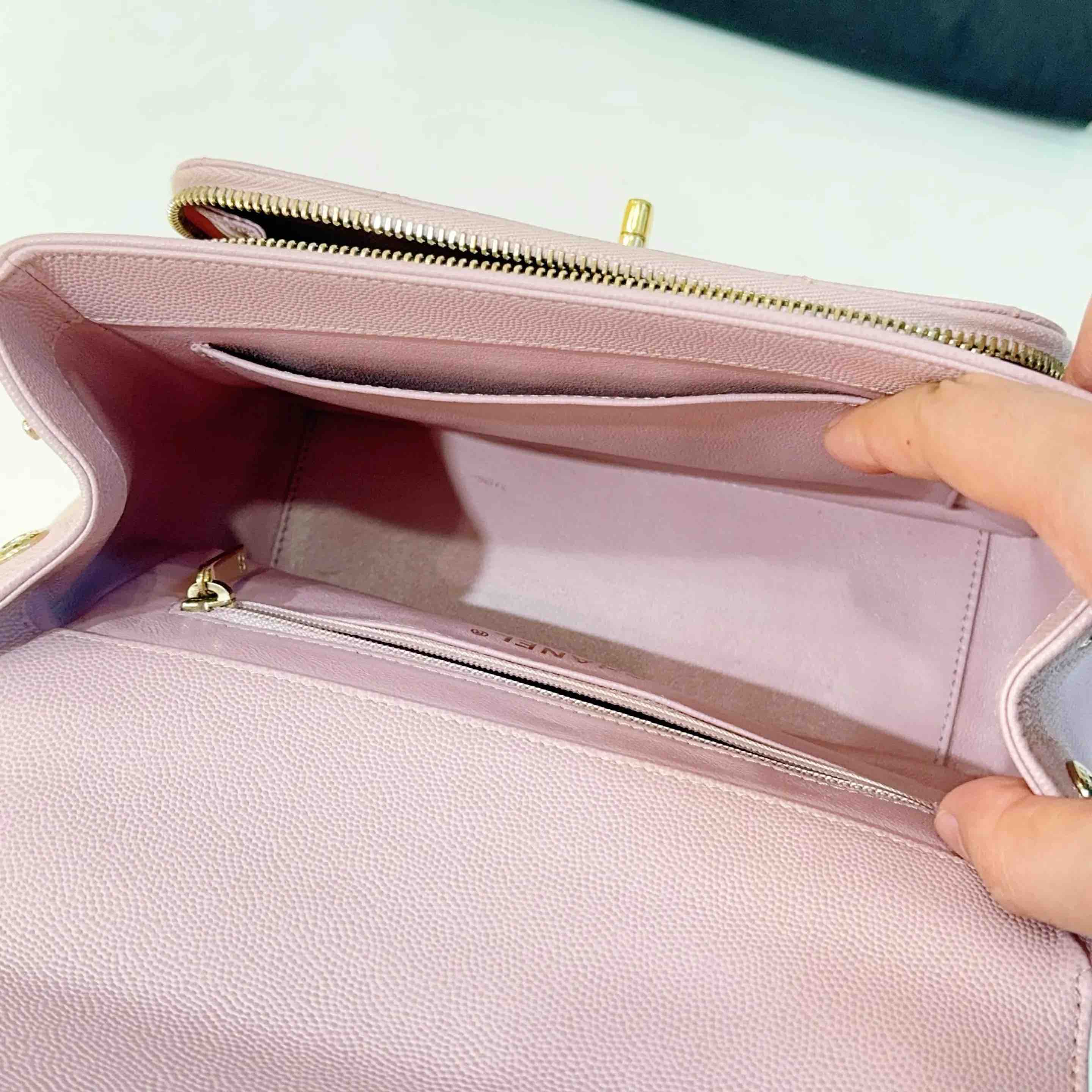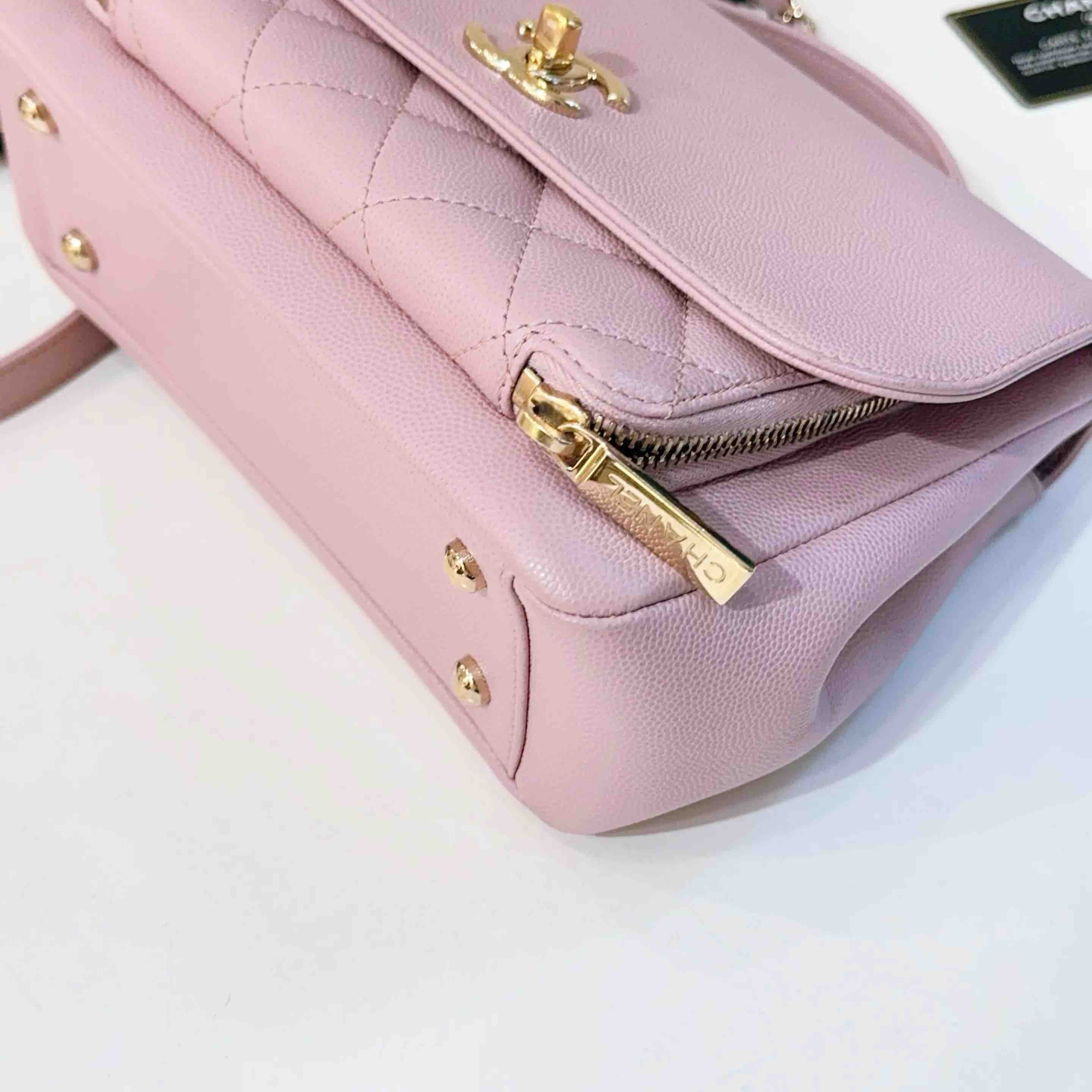 【商品详情】正品二手 chanel business affinity 中号 樱花粉 荔枝纹牛皮 金扣 邮差包😻97新 22×16 镭射24开 配件:卡 防尘袋。