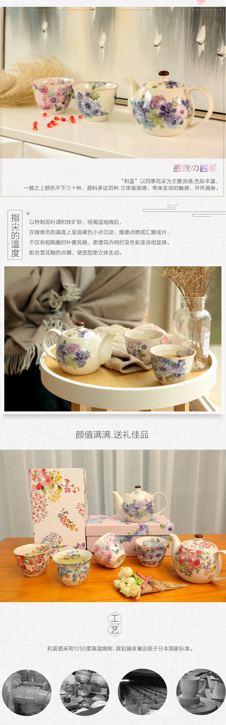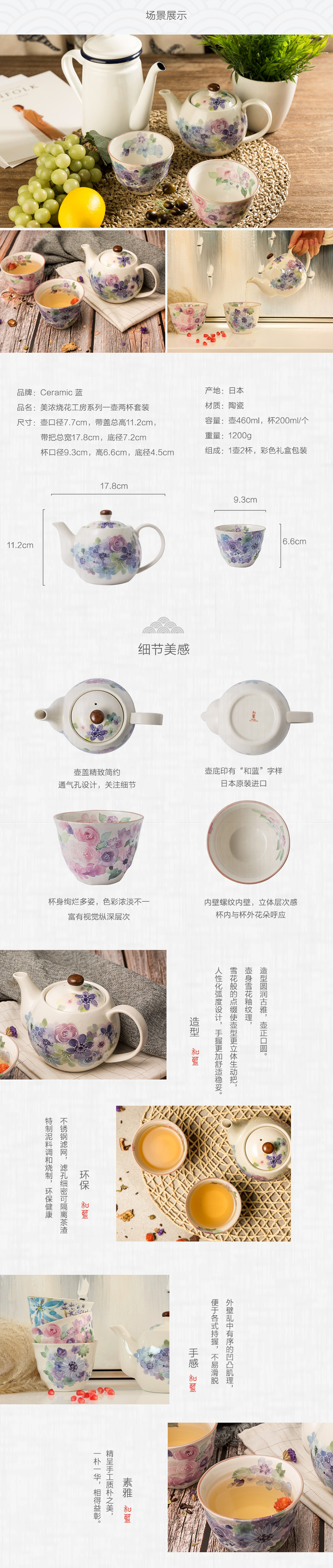 日本原产ceramic 蓝美浓烧茶壶茶杯一壶两杯套装花工房