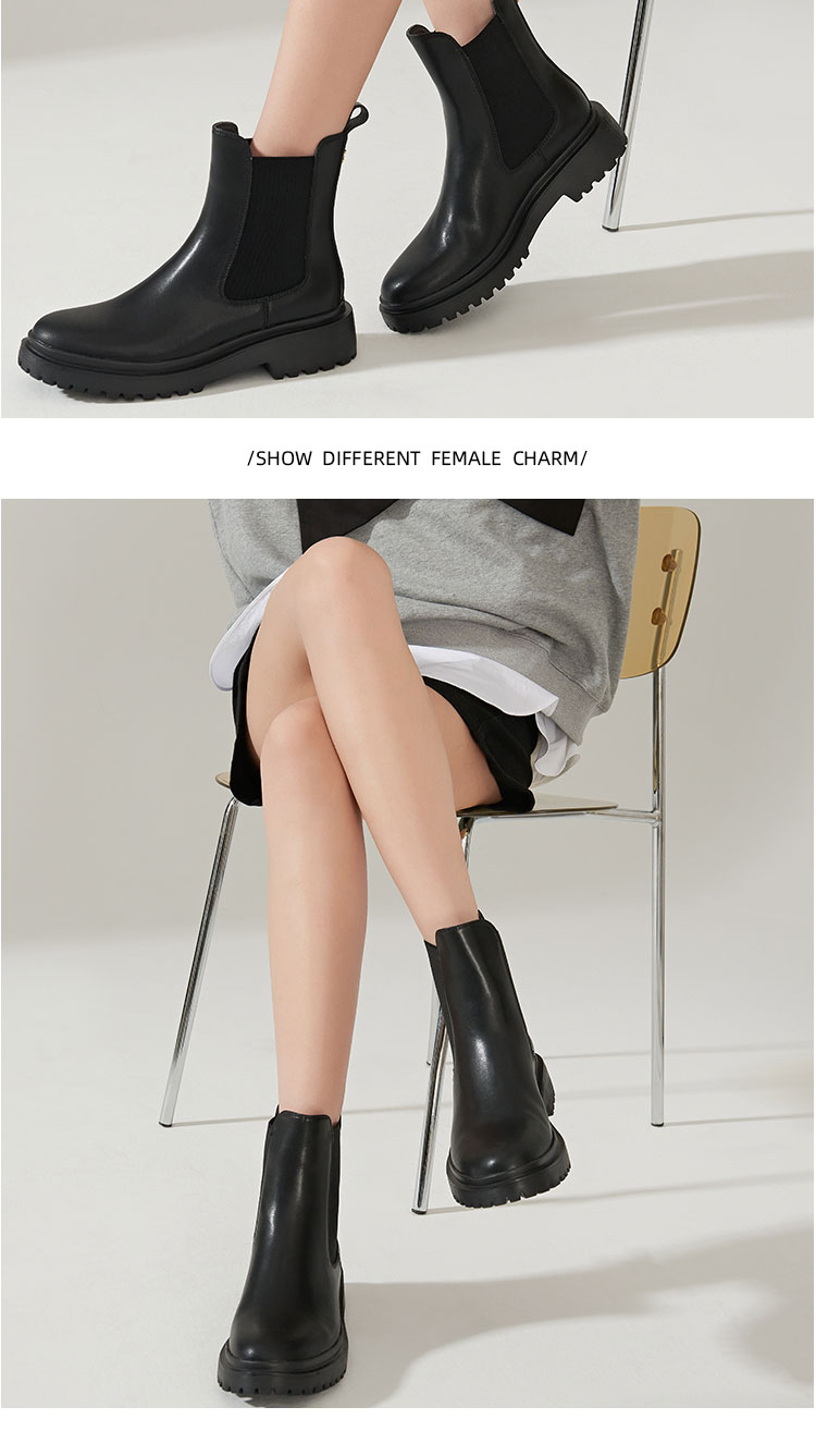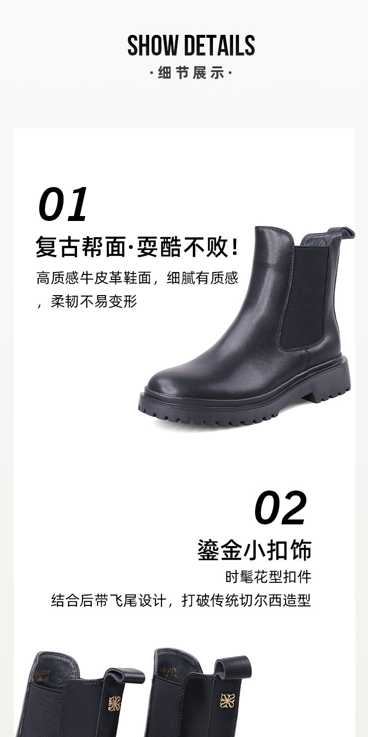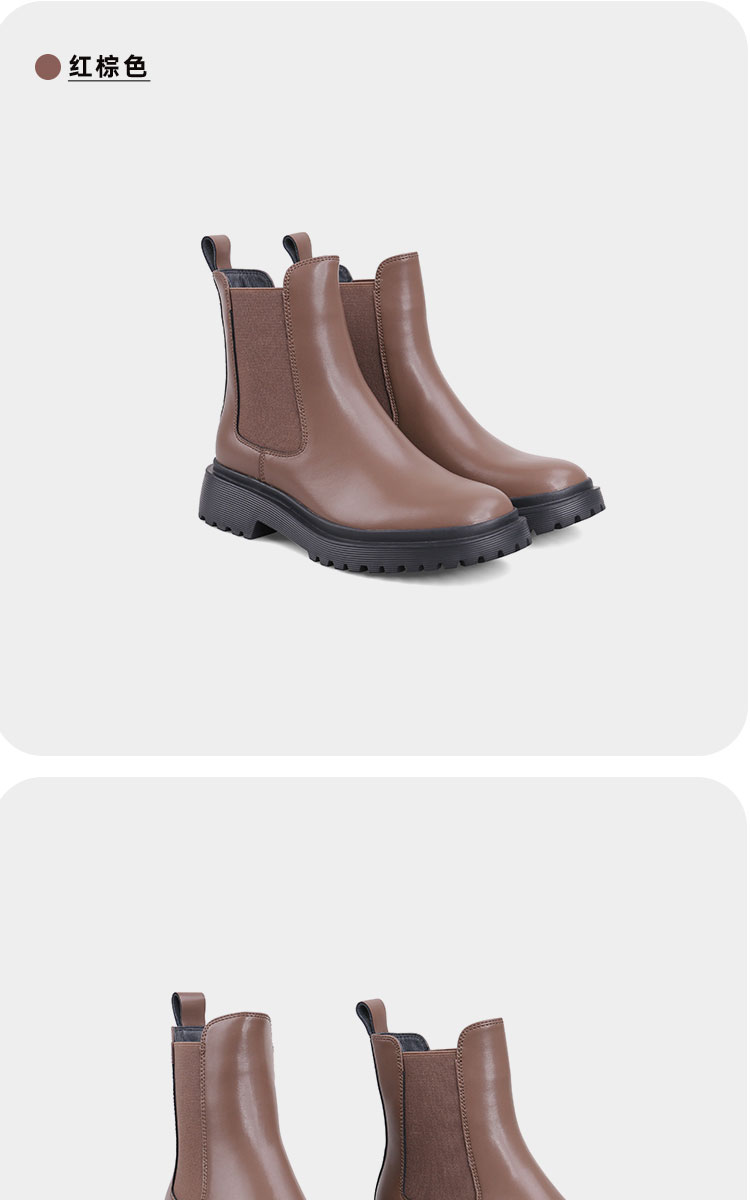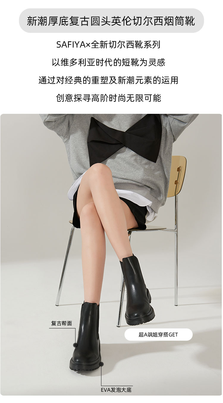 【春节不打烊】Safiya/索菲娅 复古英伦风2022冬季新款切尔西粗跟厚底真皮短靴 SF24116521