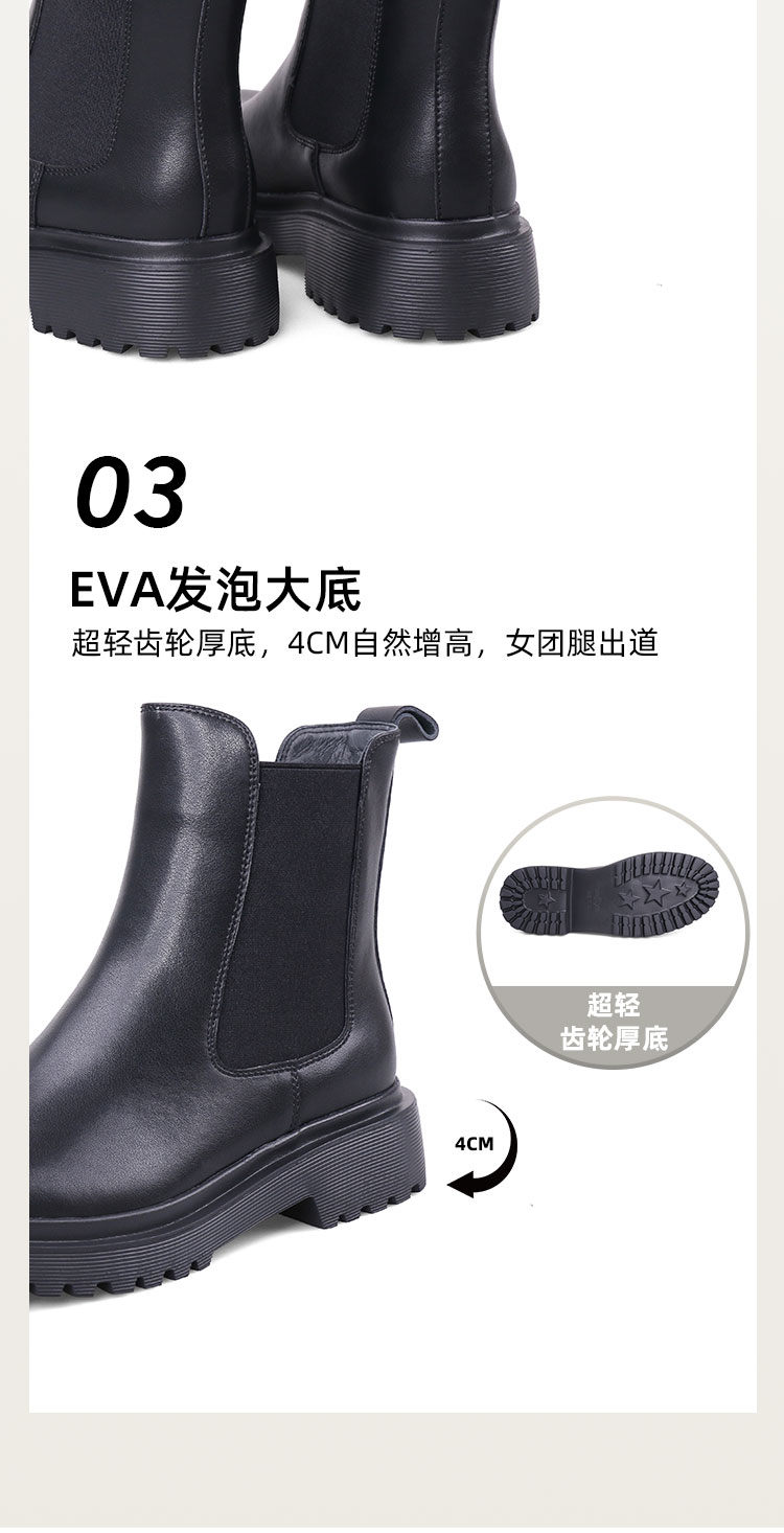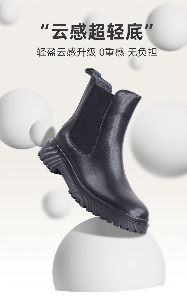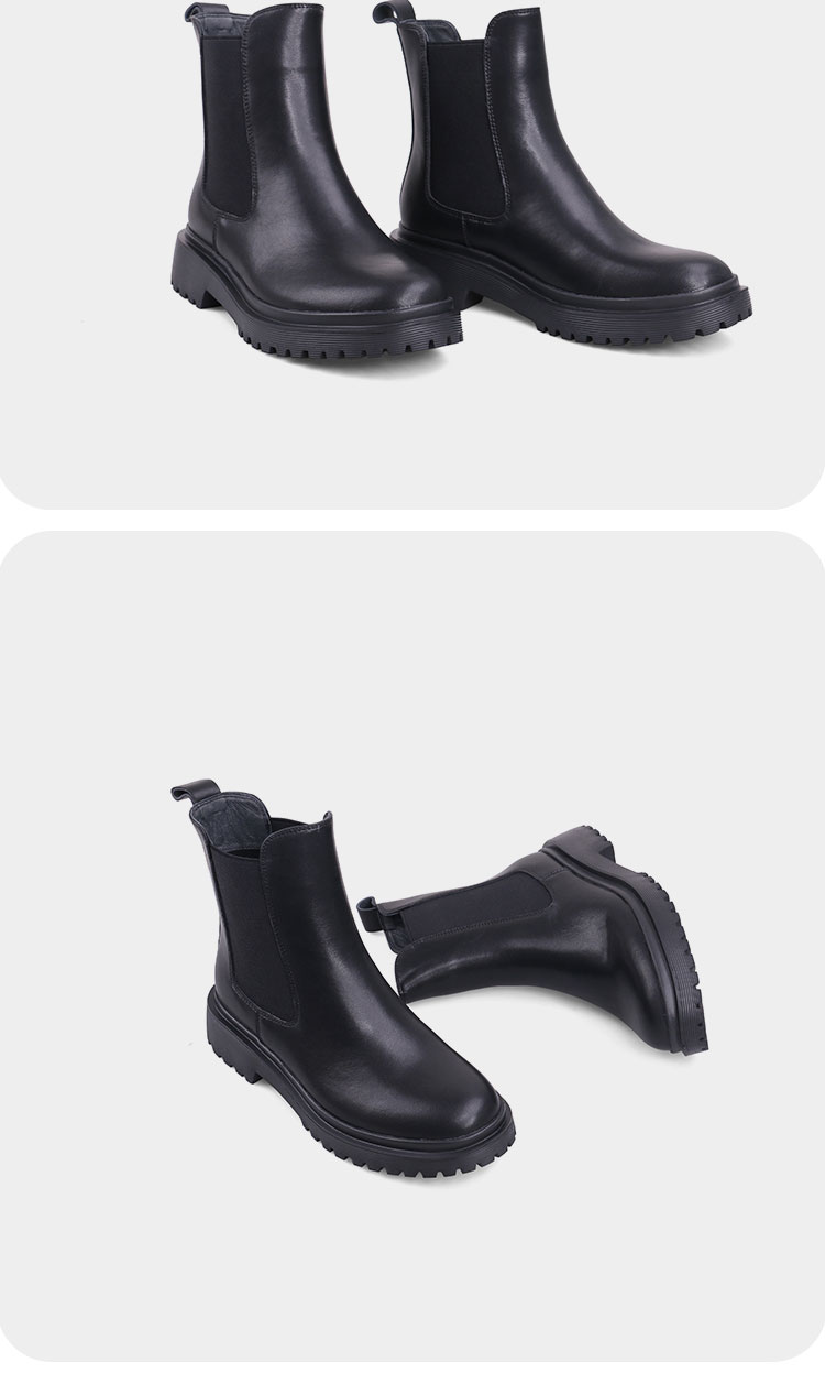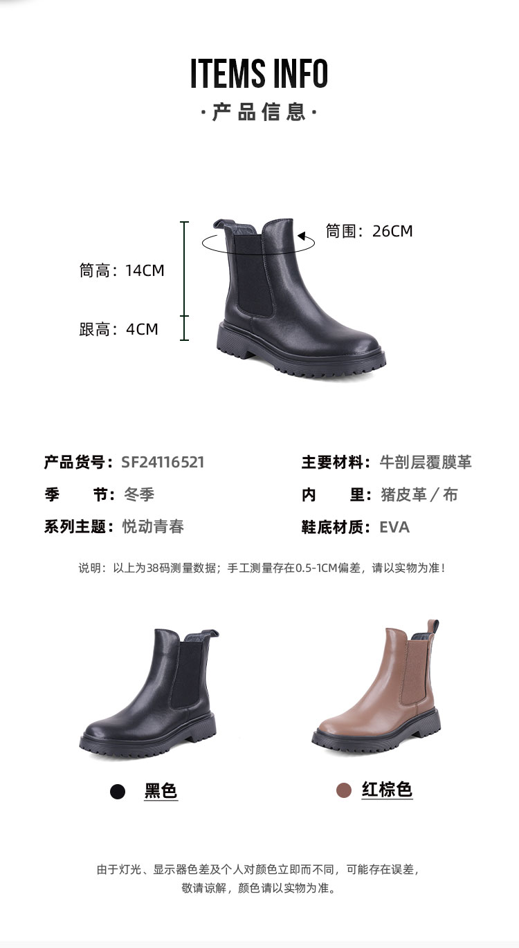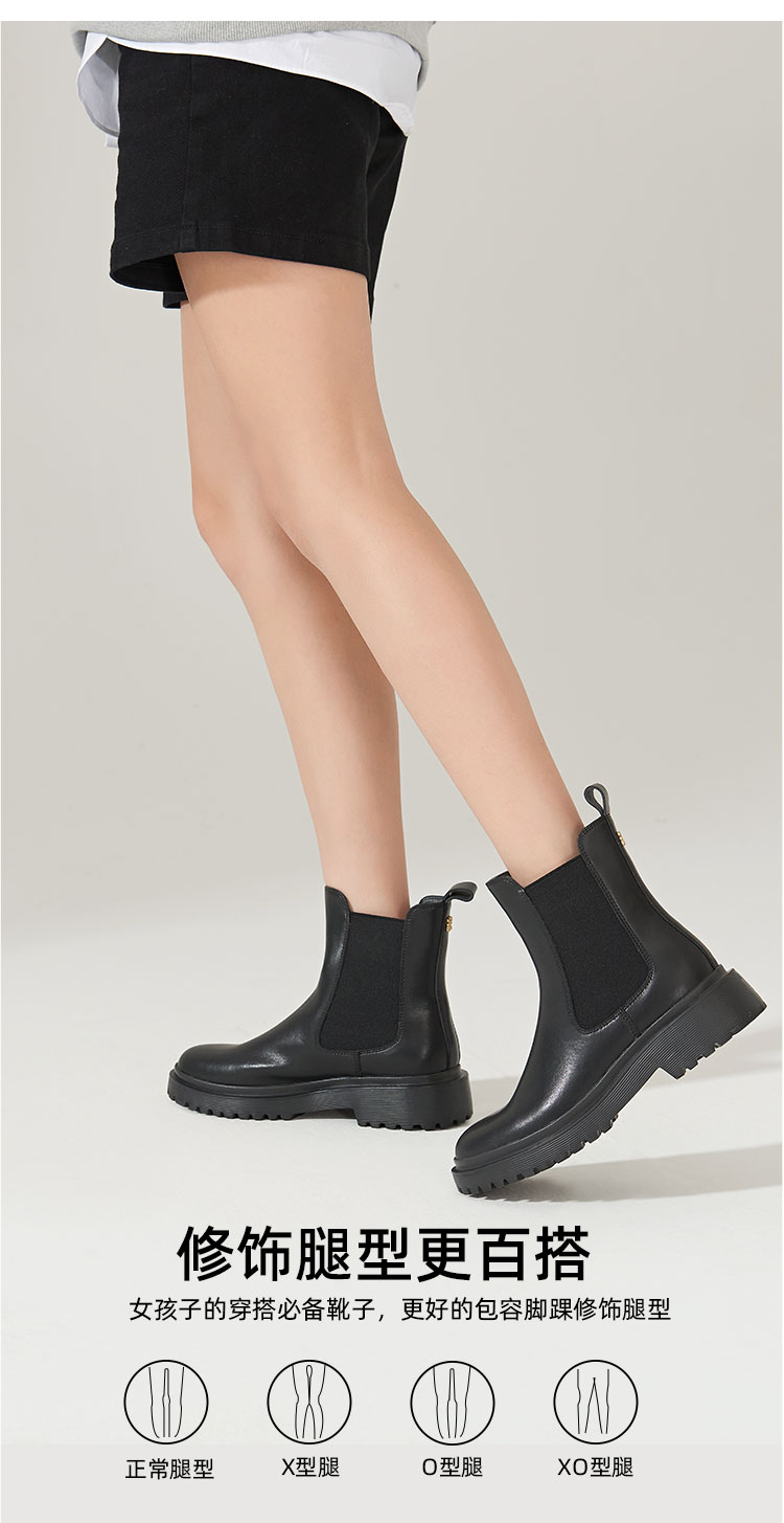 【春节不打烊】Safiya/索菲娅 复古英伦风2022冬季新款切尔西粗跟厚底真皮短靴 SF24116521