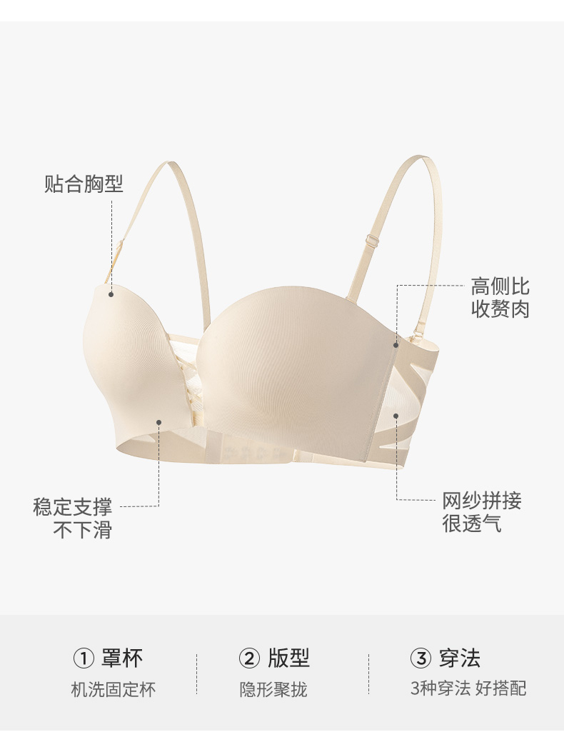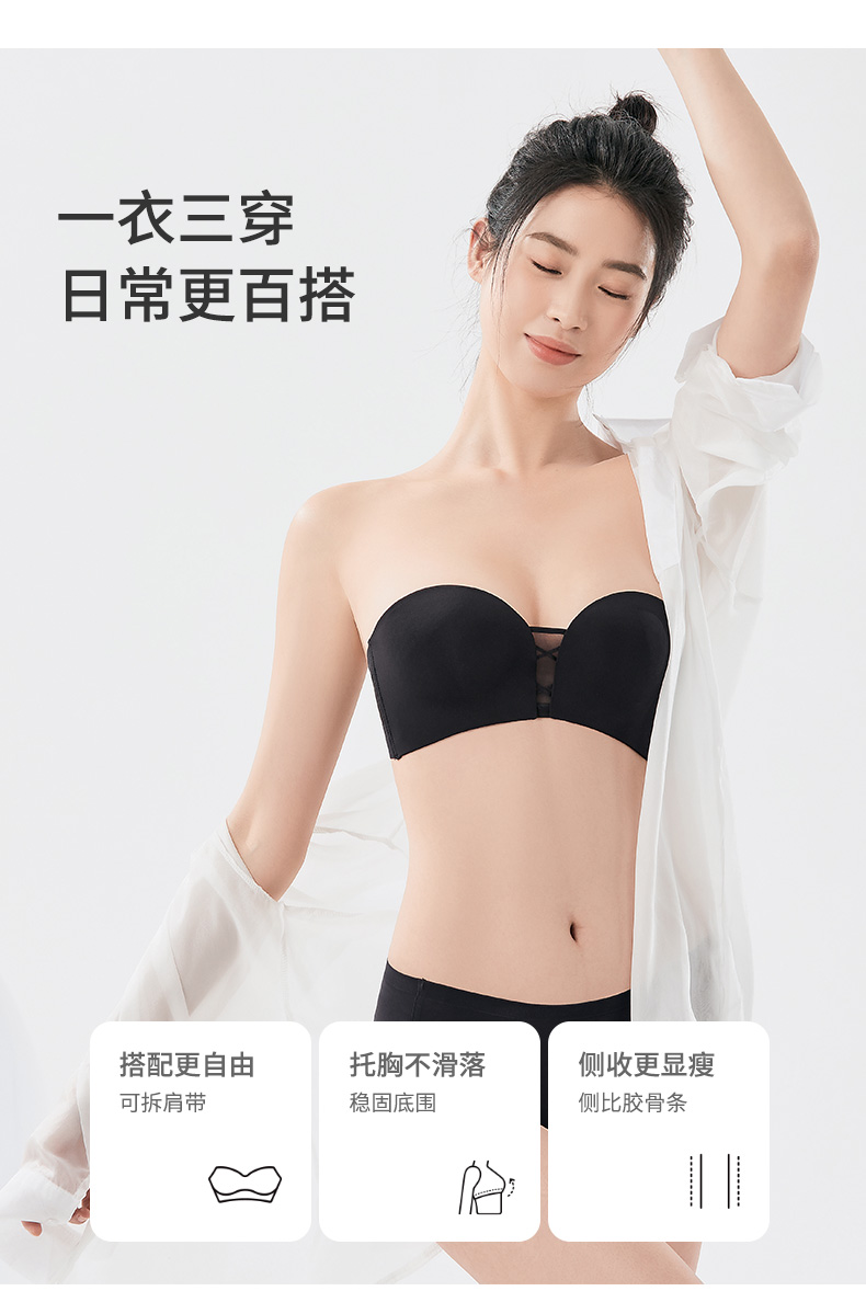 【无肩带内衣】熳洁儿 时尚百搭内衣抹胸款防滑免肩带光面小胸显大文胸23261513