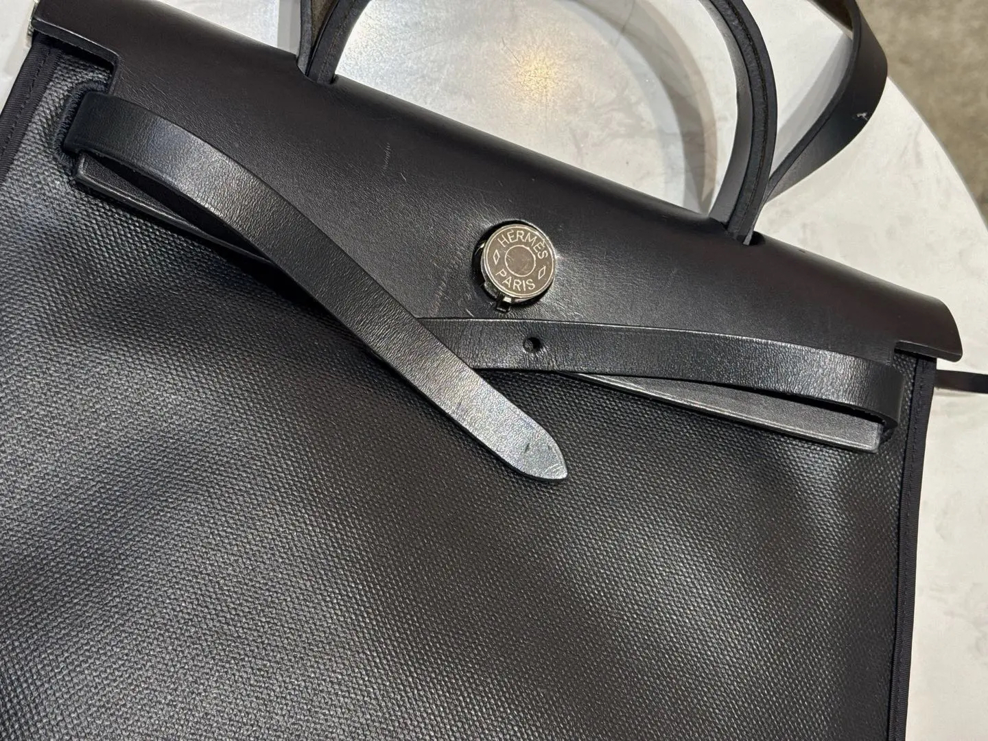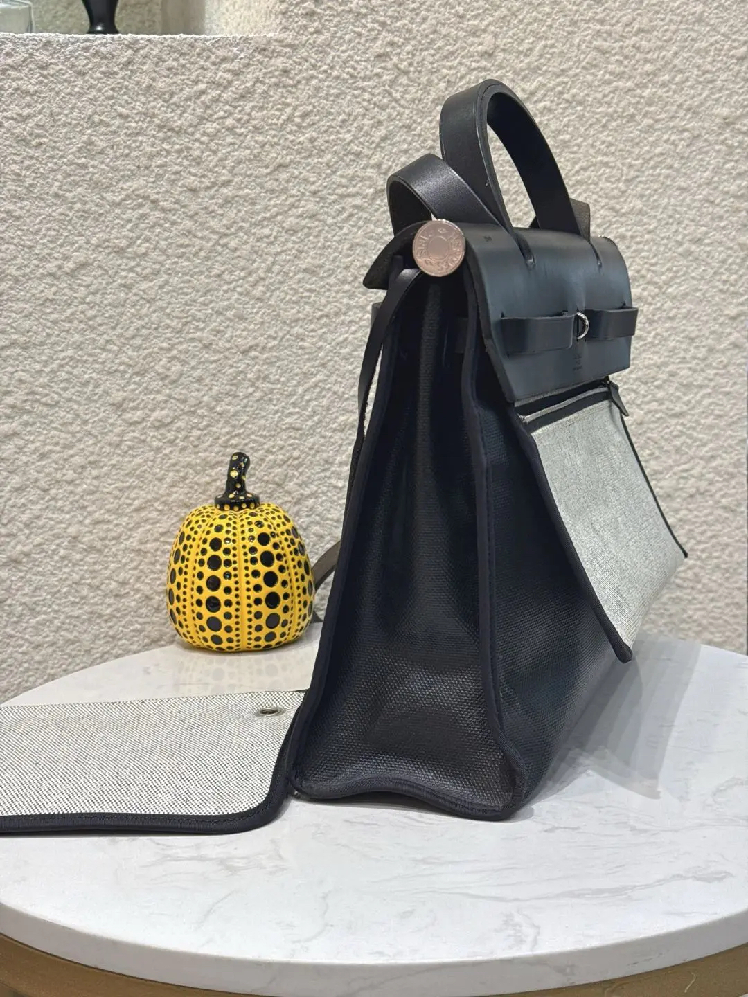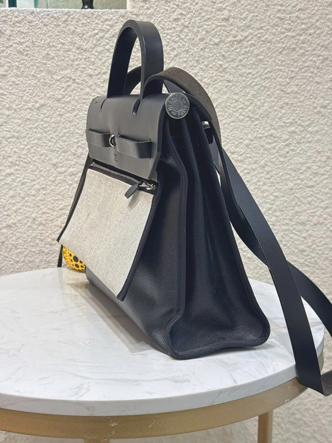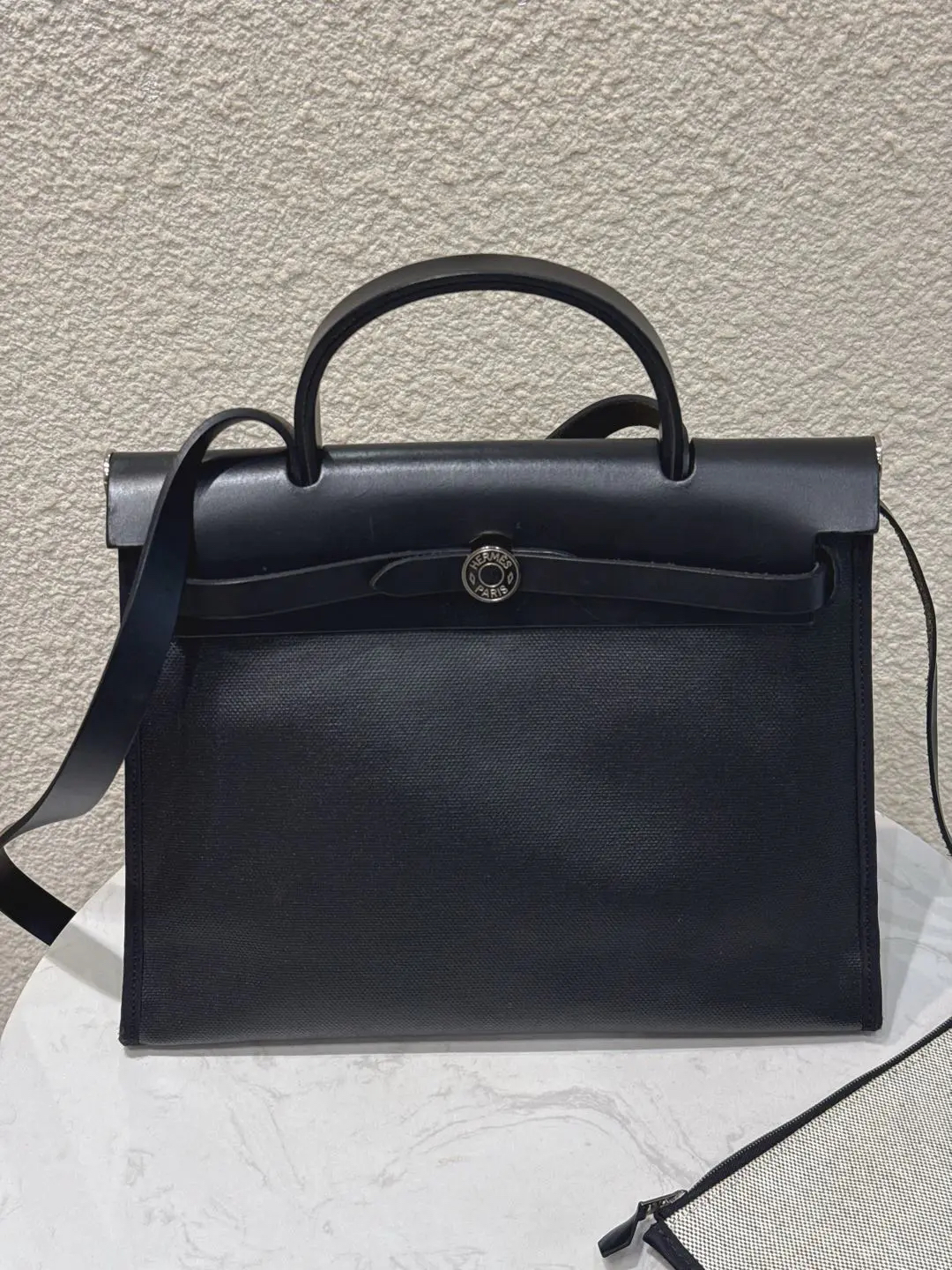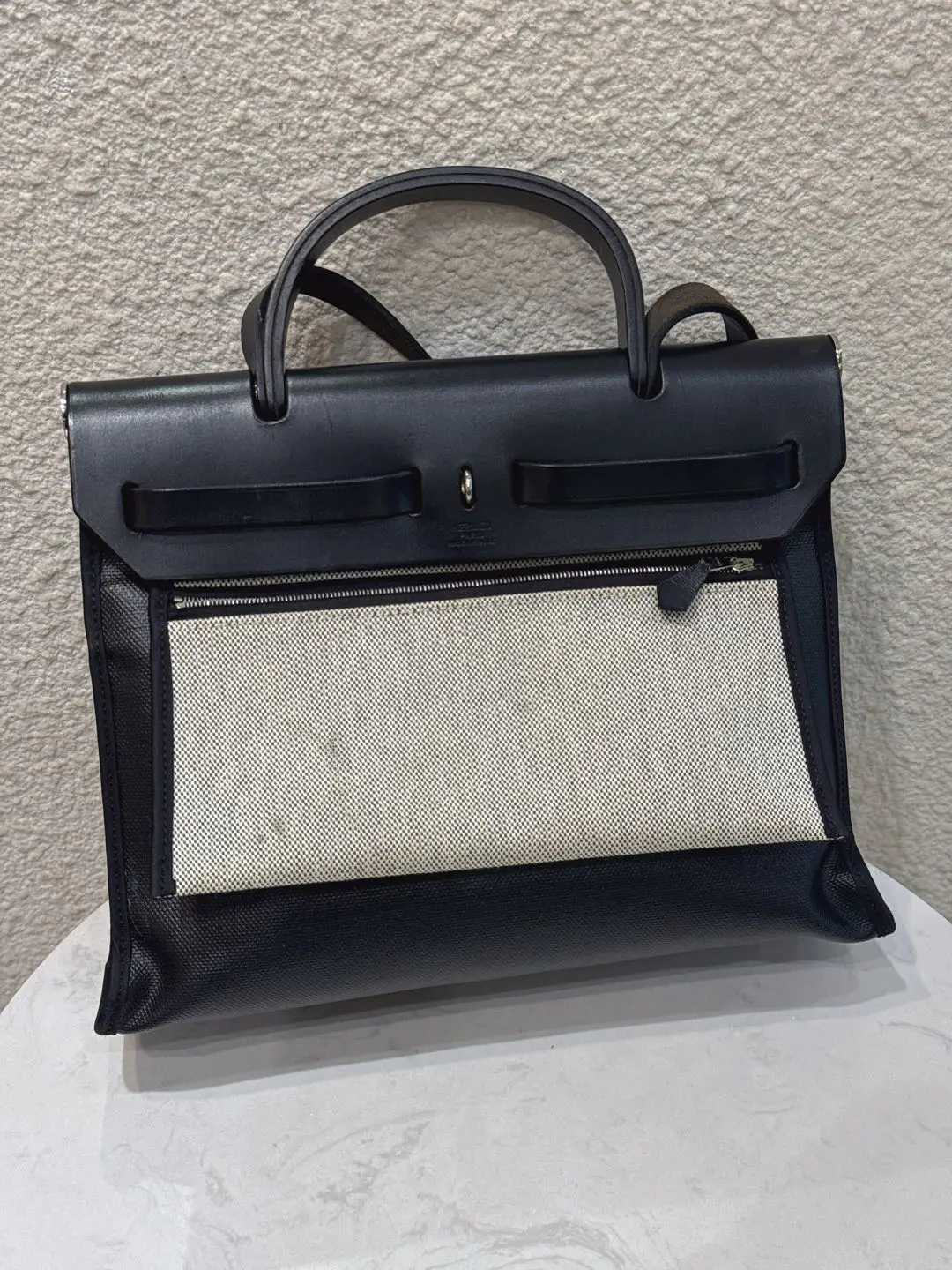 【商品详情】正品二手 爱马仕 herbag 黑白 防水布 斜挎包🍋95新 31×22 D刻 配件 :子袋。翻盖配皮正常使用感。防水包包。
