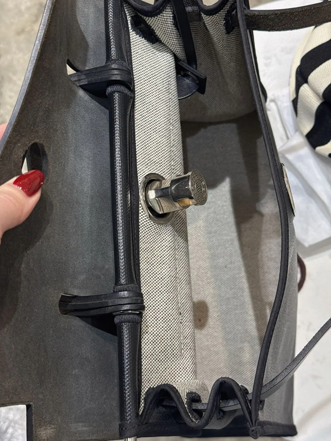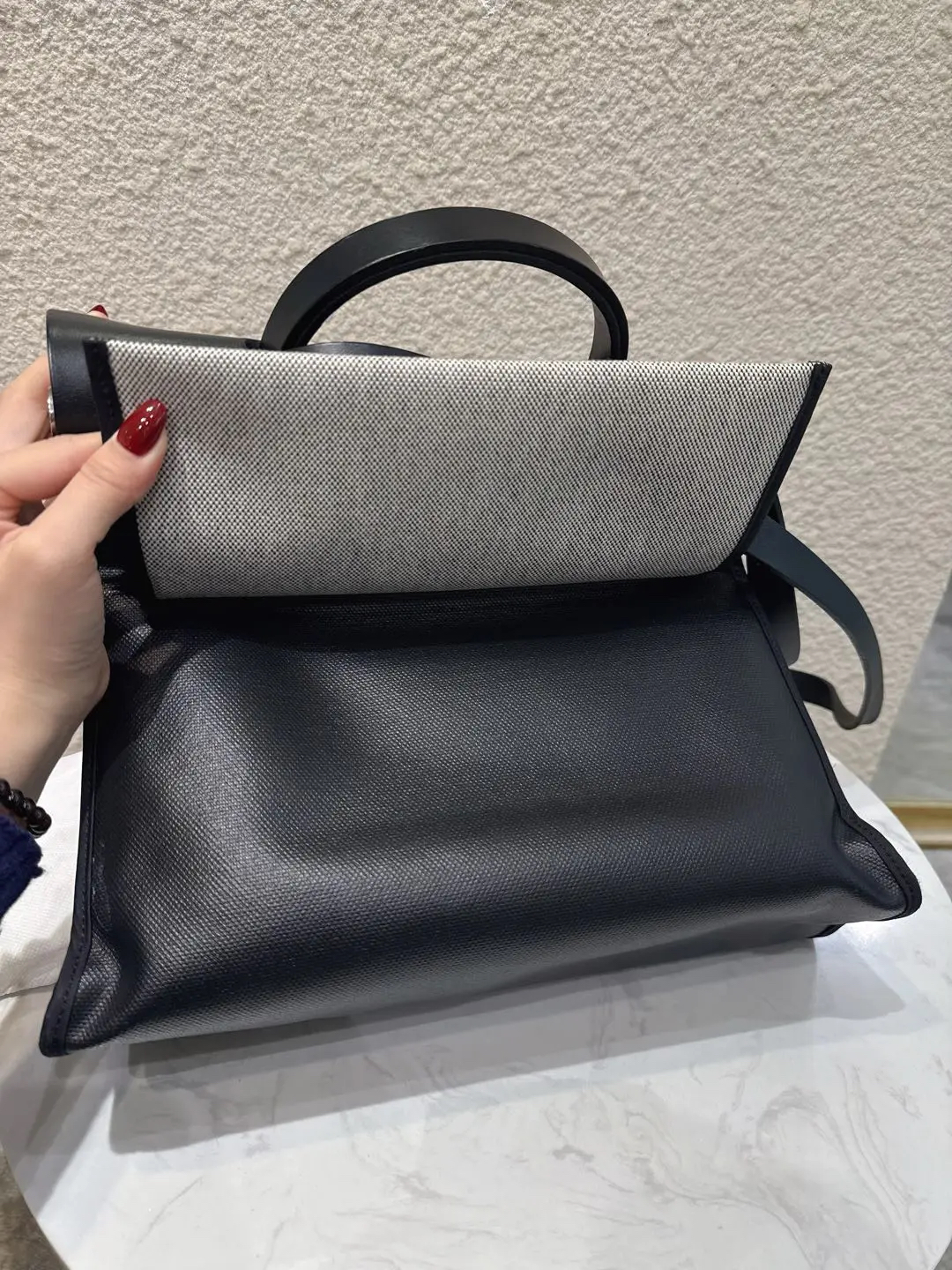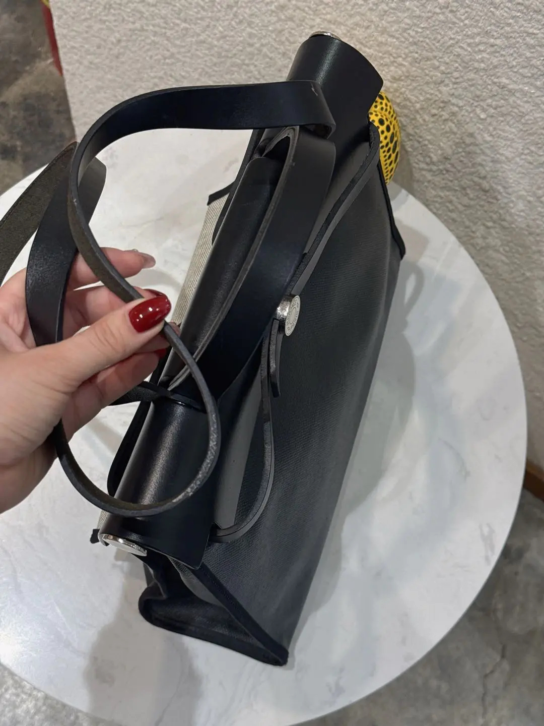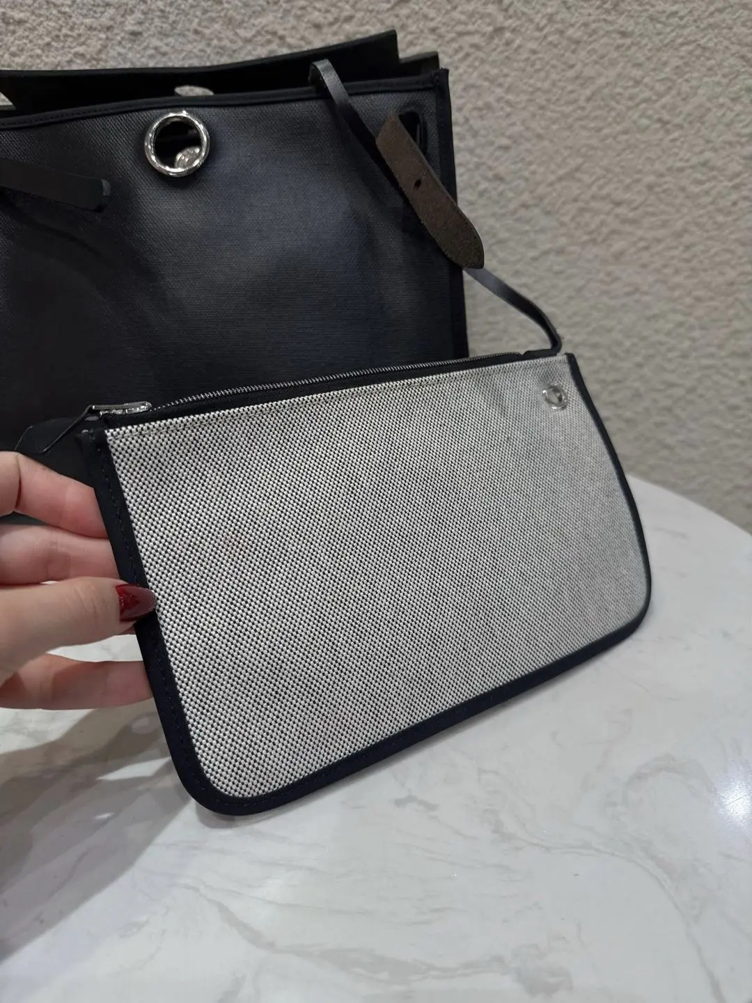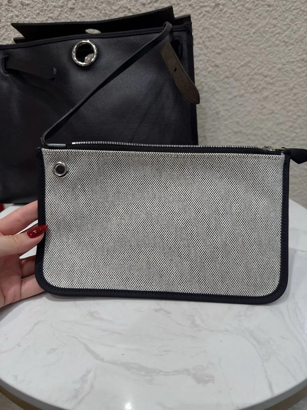 【商品详情】正品二手 爱马仕 herbag 黑白 防水布 斜挎包🍋95新 31×22 D刻 配件 :子袋。翻盖配皮正常使用感。防水包包。