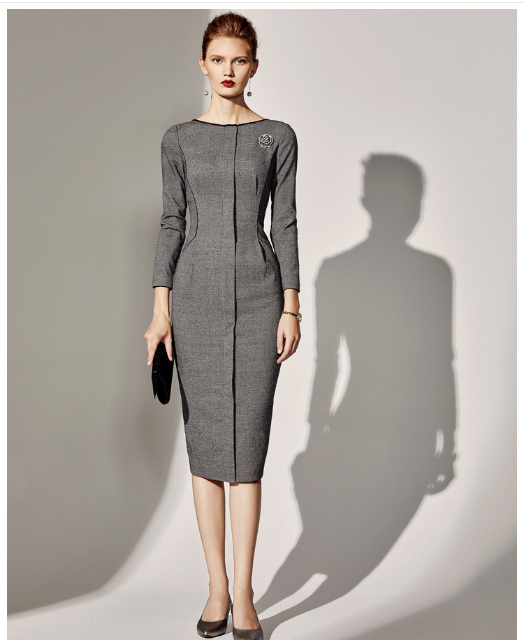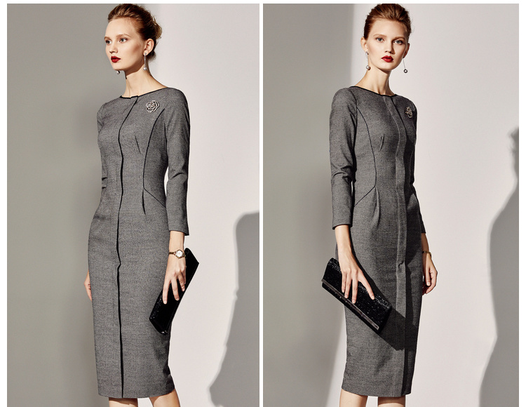 J8382756A颈袖添香季新款中长款修身气质OL职场羊毛包臀连衣裙女J8382756A